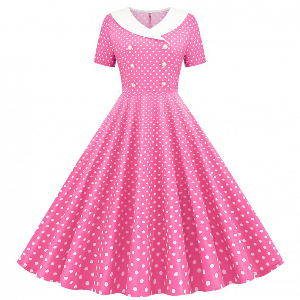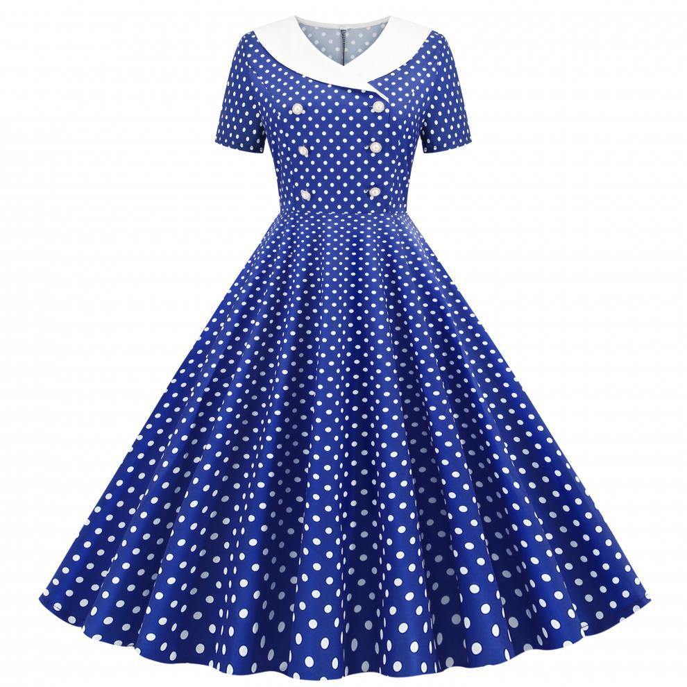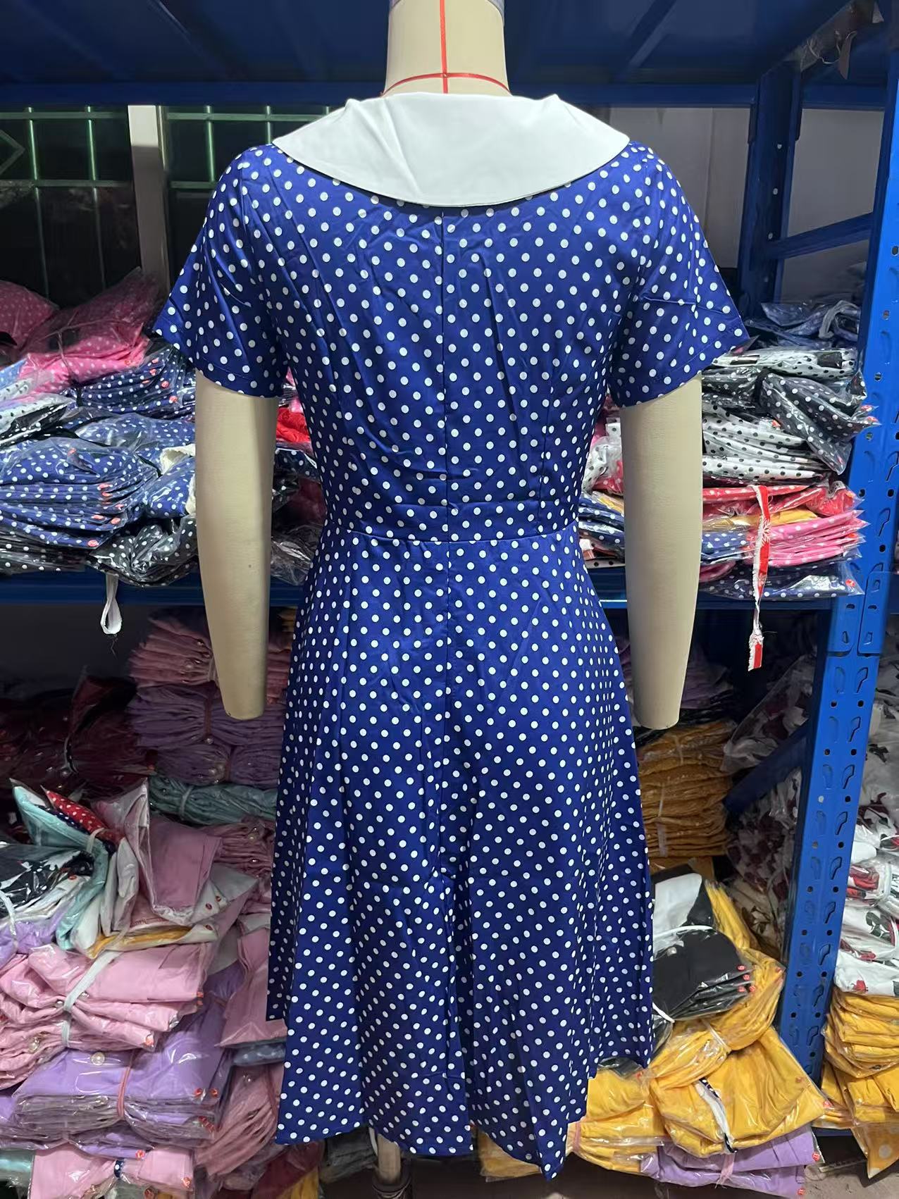 2023 Wish Amazon Estación Independiente Lunares Solapa Retro Hepburn Vestido Vuelo Completo