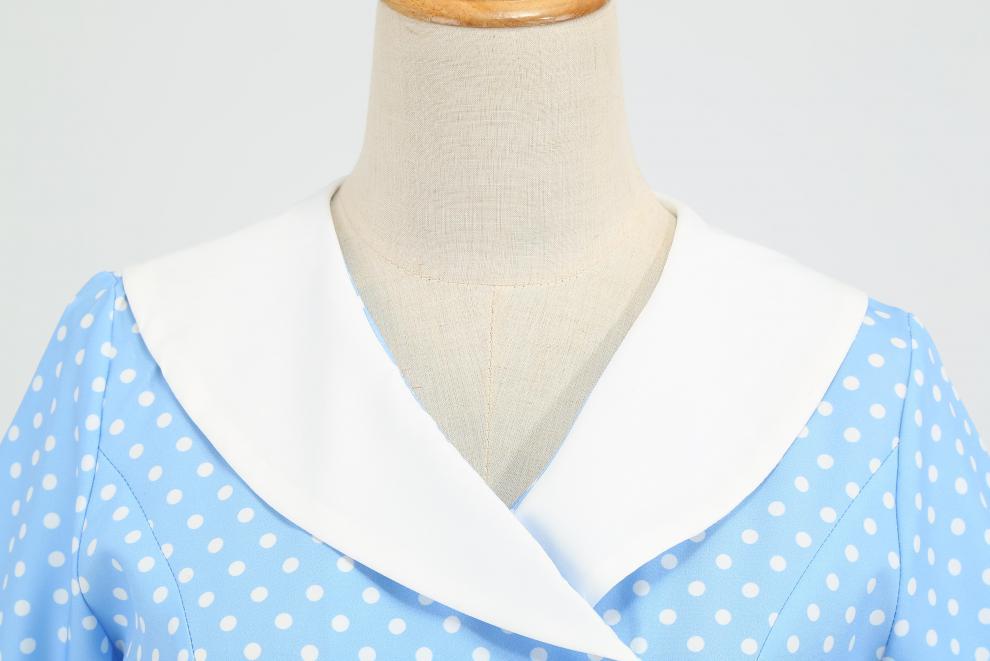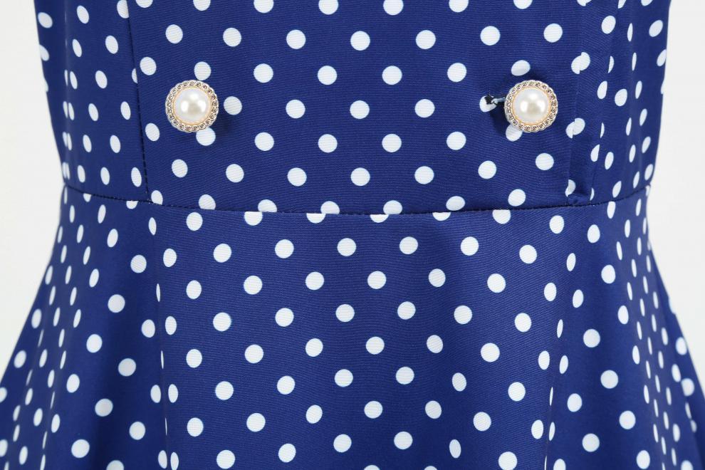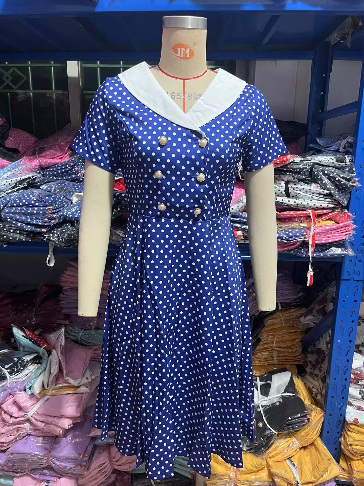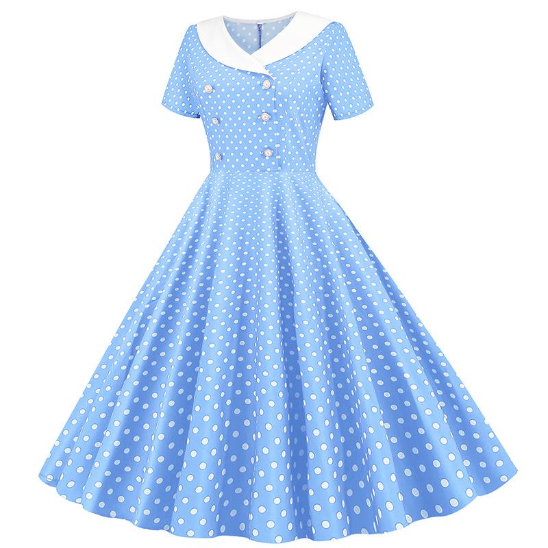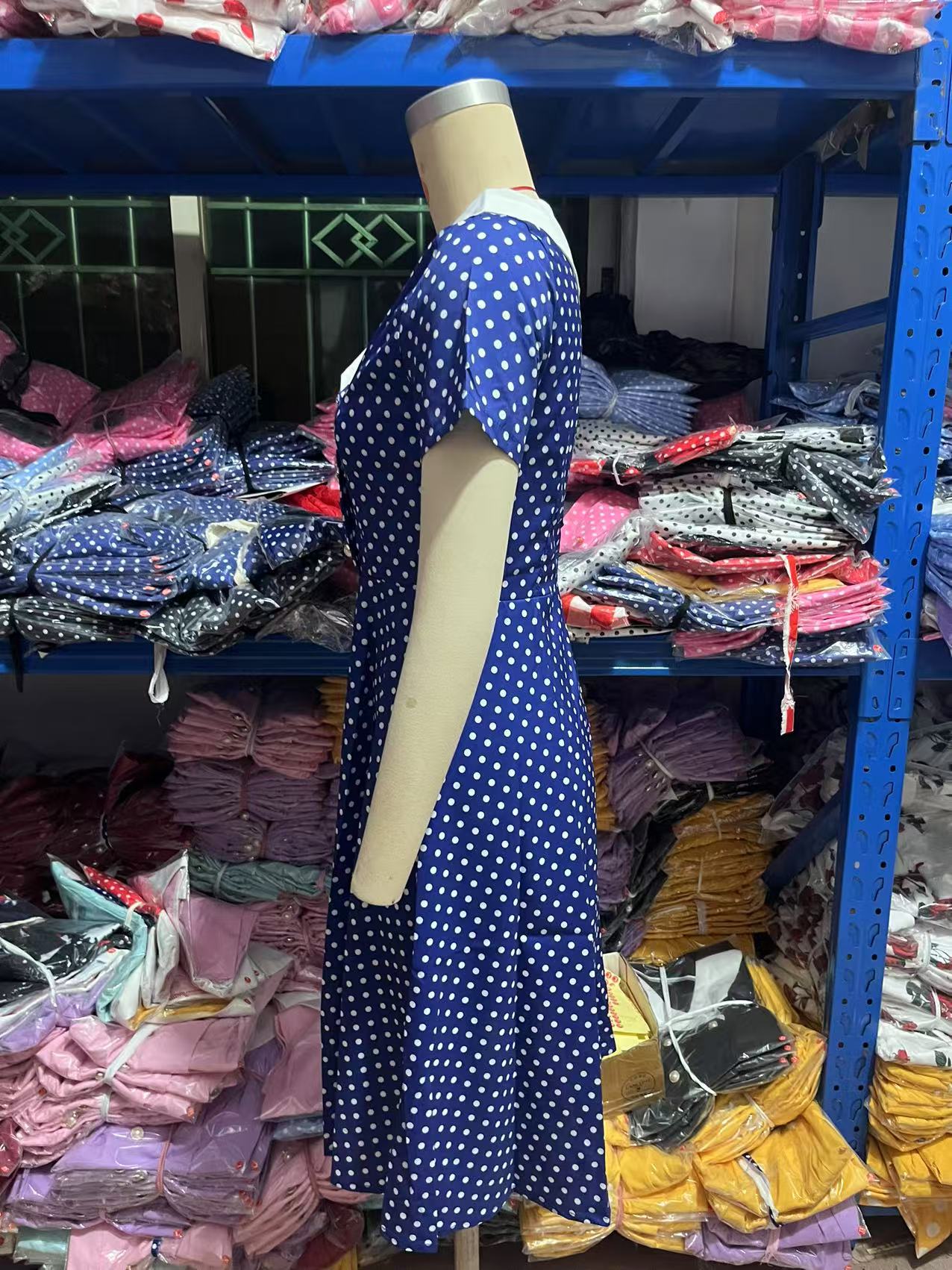 2023 Wish Amazon Estación Independiente Lunares Solapa Retro Hepburn Vestido Vuelo Completo