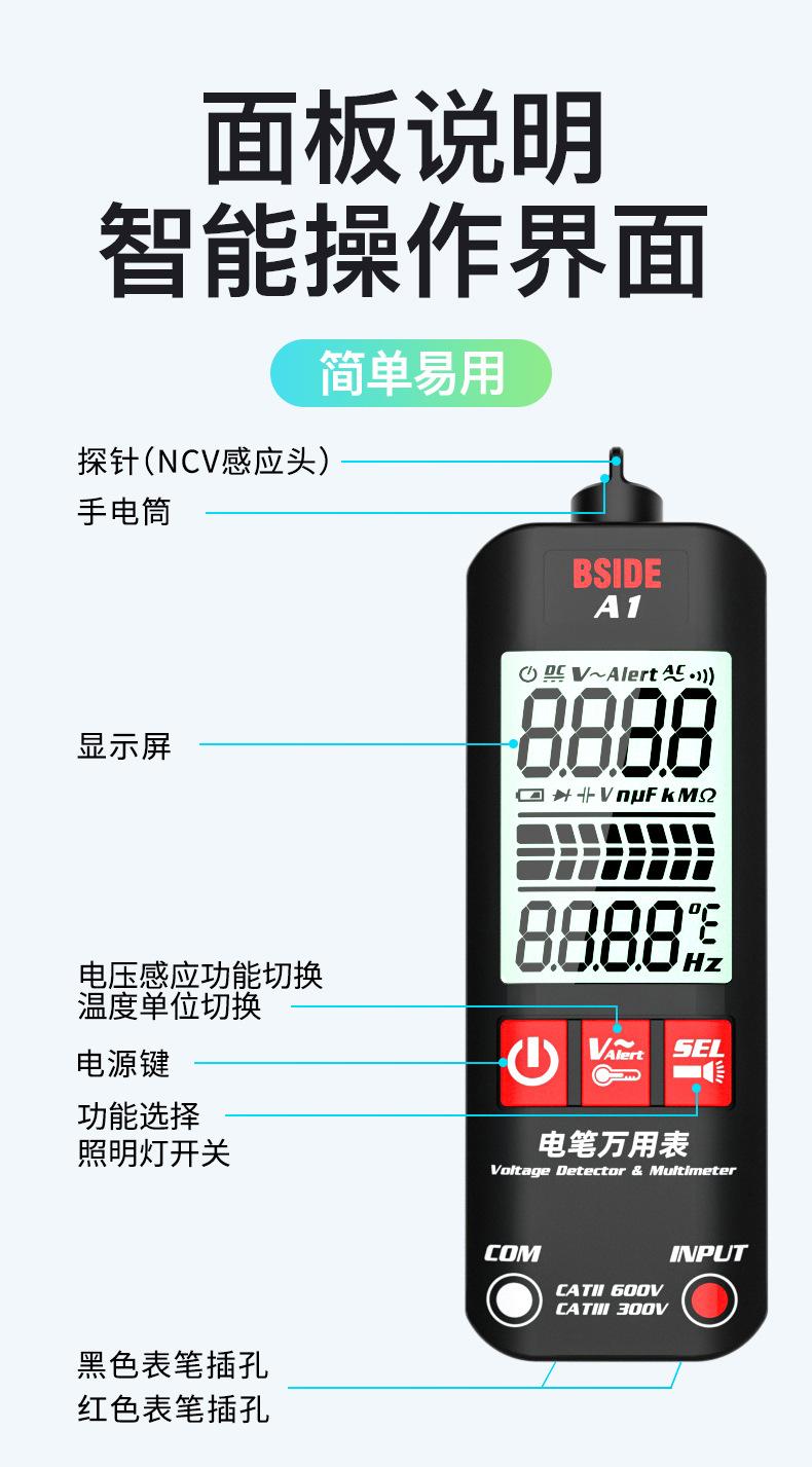 Multímetro automático A1, digital, de alta precisión, multifunción, inteligente, medidor de pluma, para electricistas, dedicado, con punto de interrupción de cable con corriente cero, para uso doméstico.