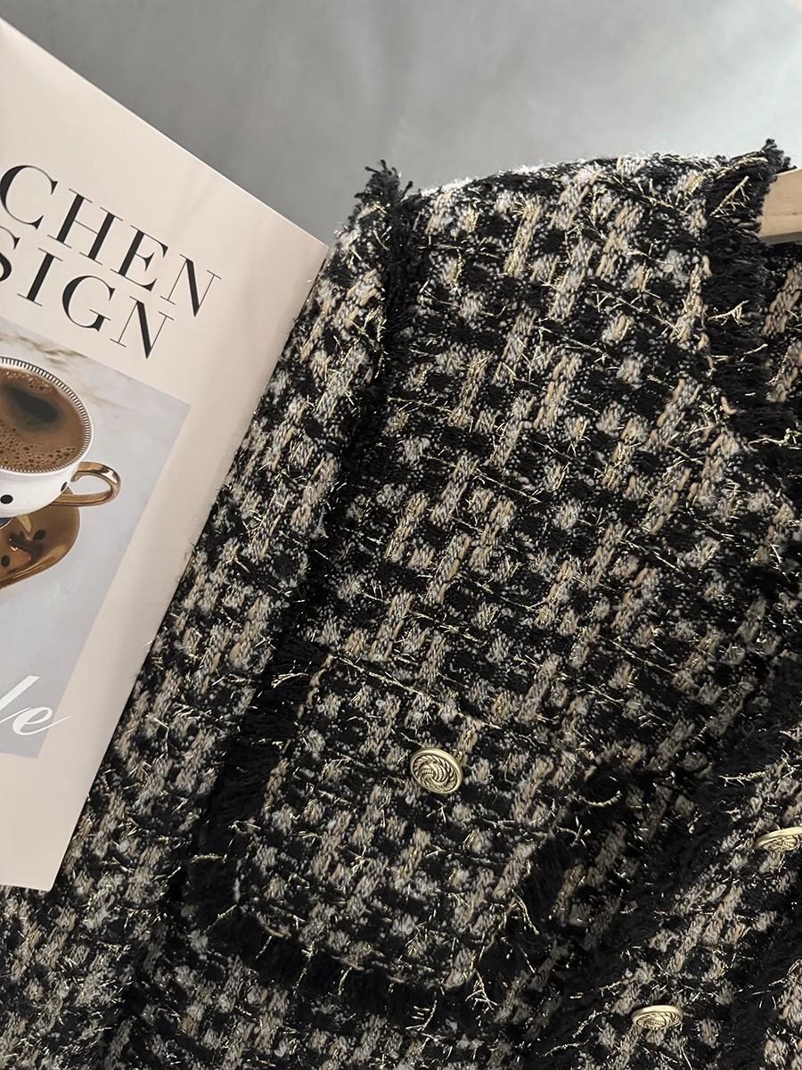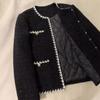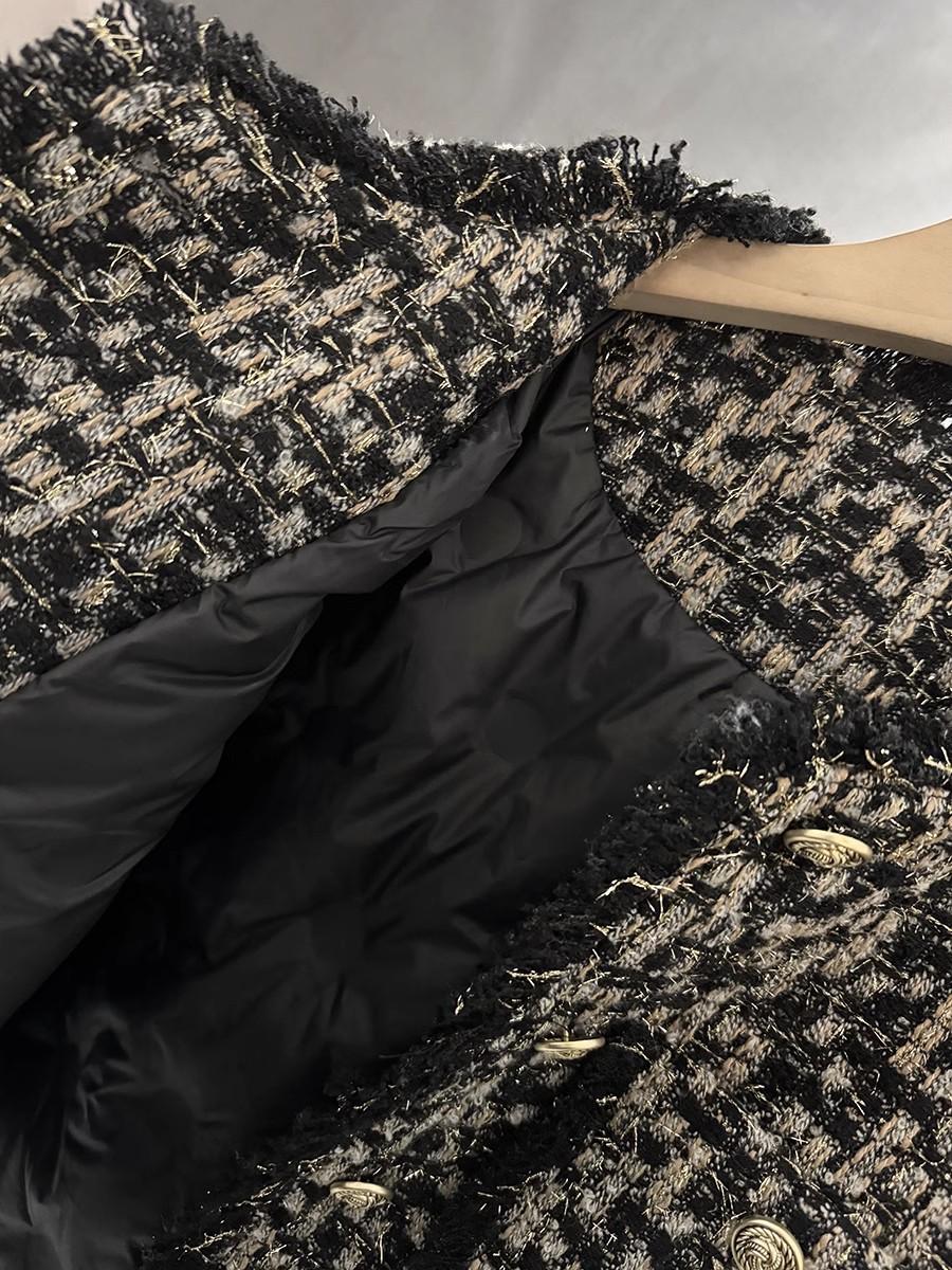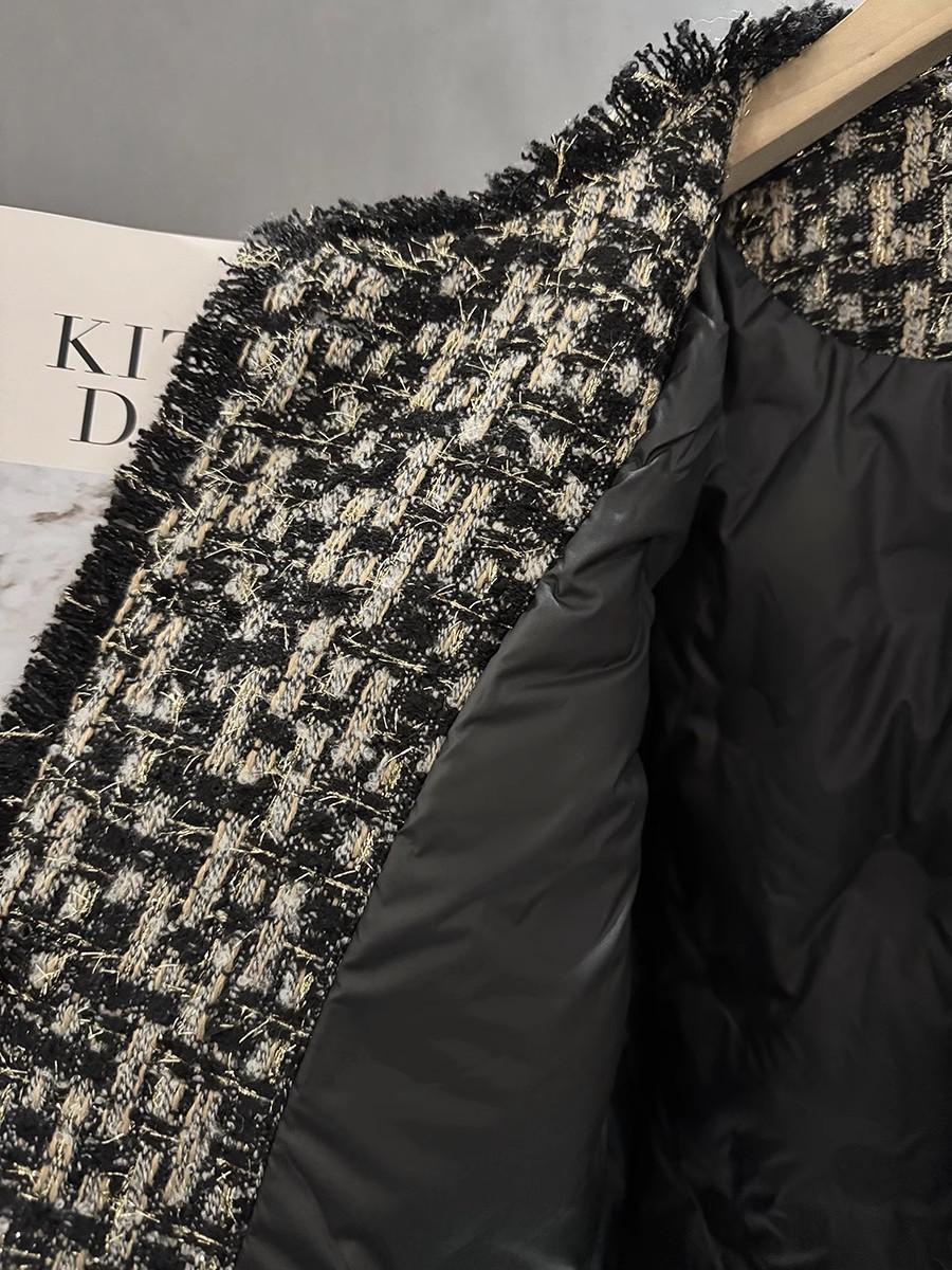 Abrigo Corto de Tweed Negro con Forro de Plumón para Mujer, Nuevo Estilo Invierno 2025, Chaqueta de Tweed Francés de Alta Gama