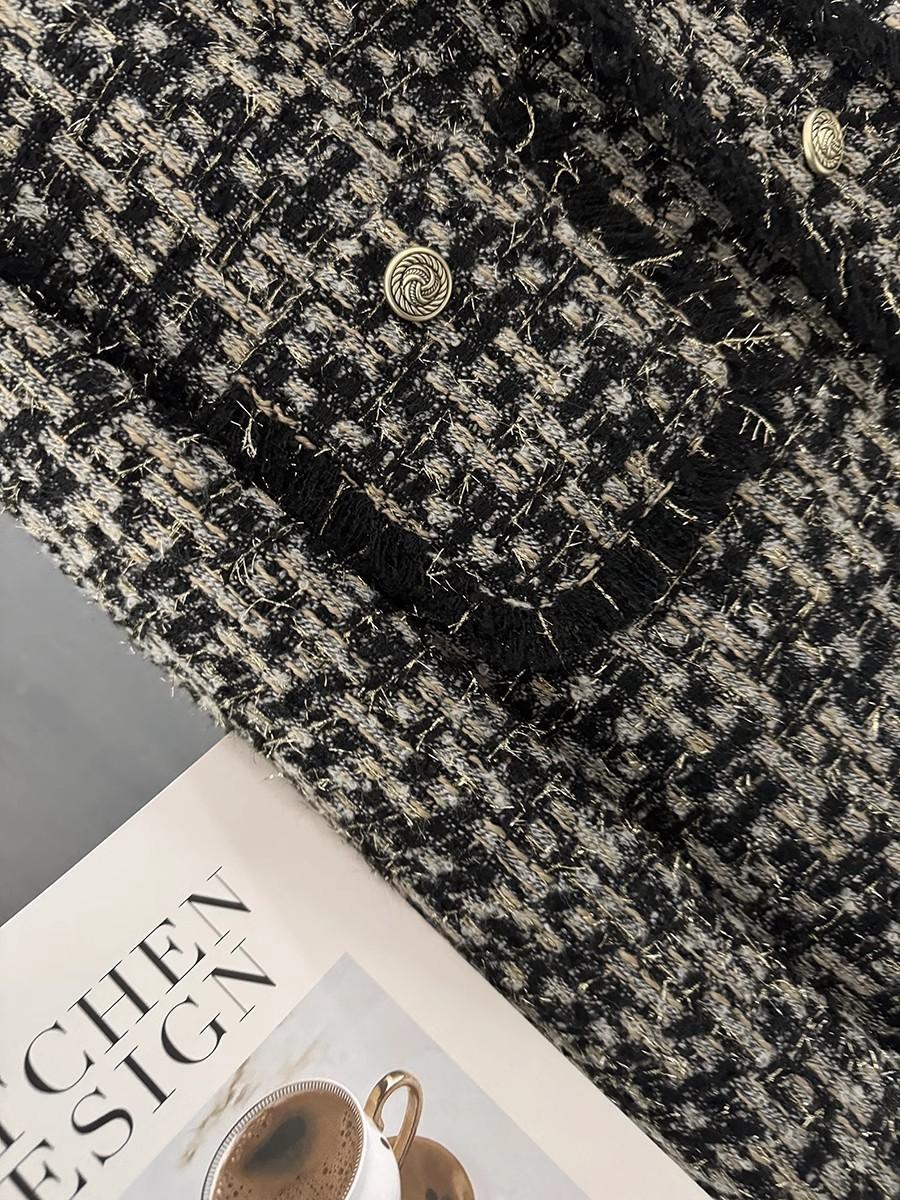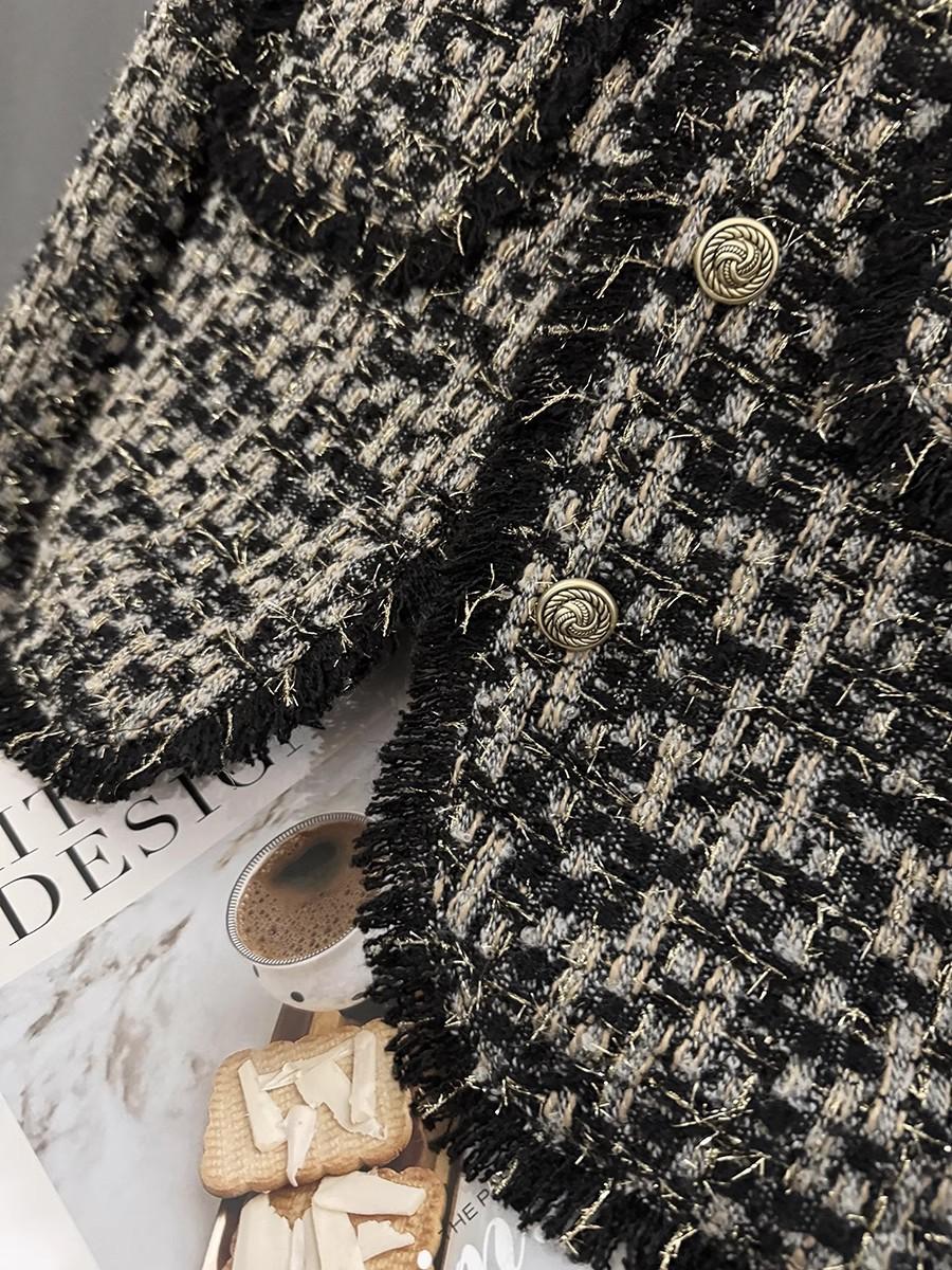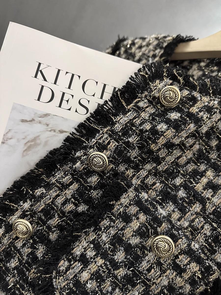 Abrigo Corto de Tweed Negro con Forro de Plumón para Mujer, Nuevo Estilo Invierno 2025, Chaqueta de Tweed Francés de Alta Gama