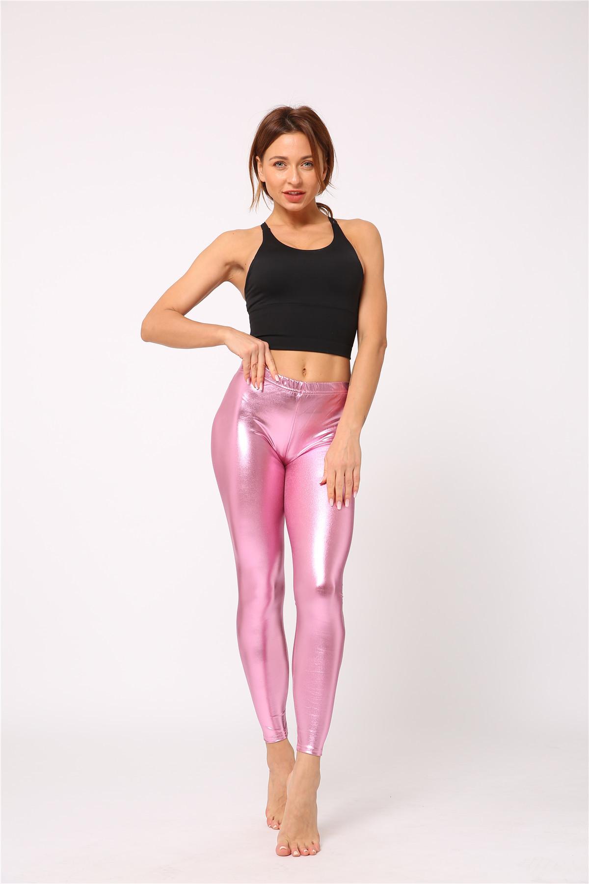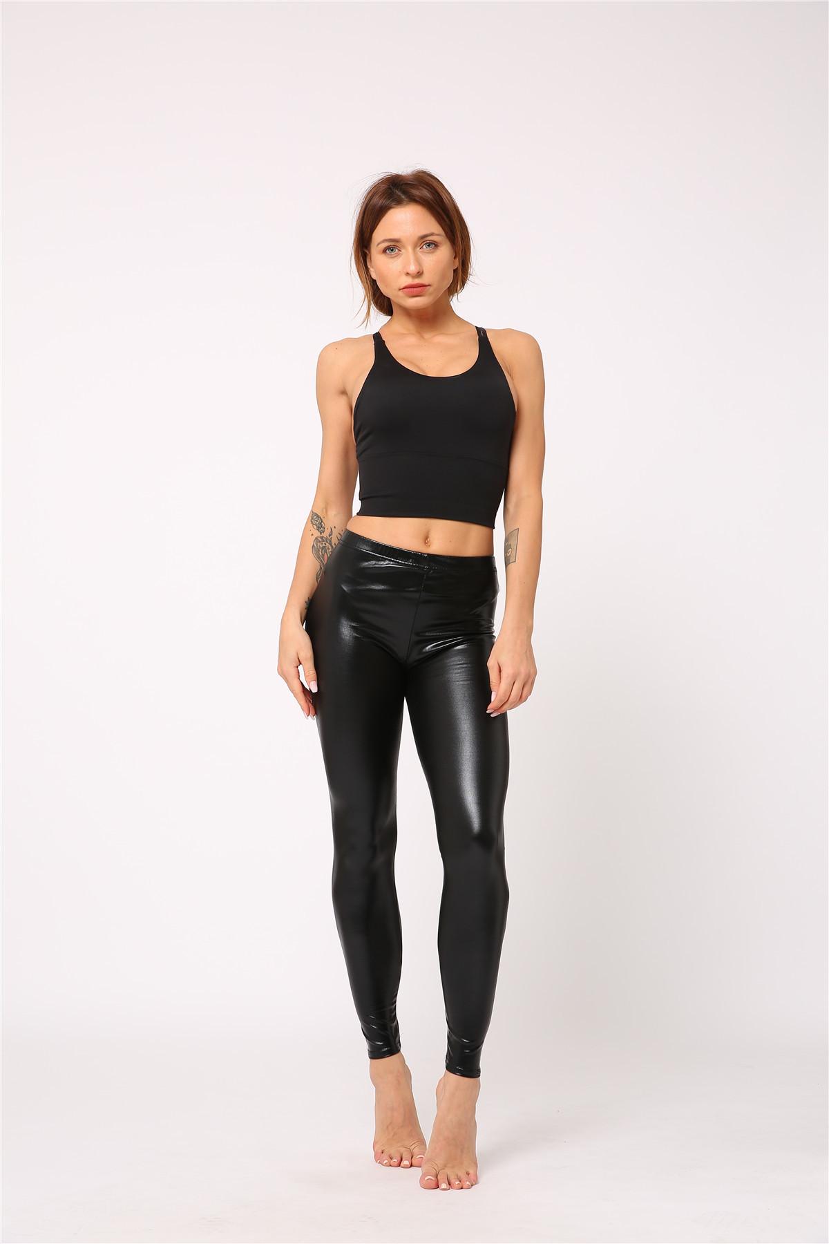 Suministro Exclusivo Transfronterizo 2025 Exportación Europea y Americana Estampado en Caliente Imitación Cuero Leggings Multitalla Color Caramelo Look Adelgazante Pantalones de Cuero No Se Caen Fácilmente