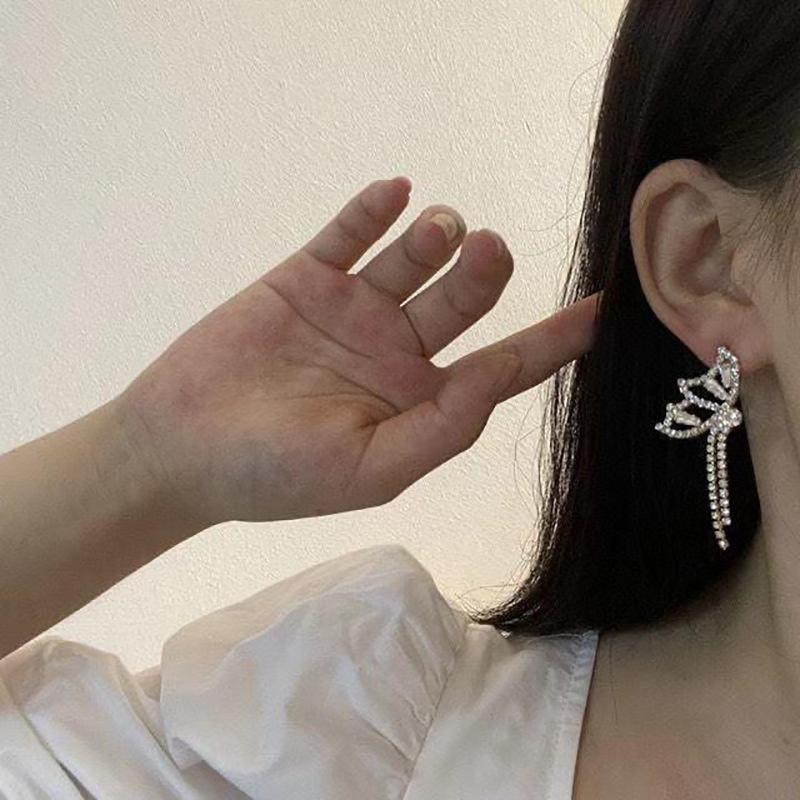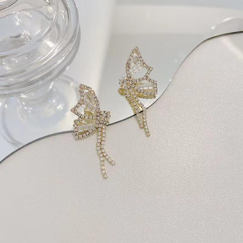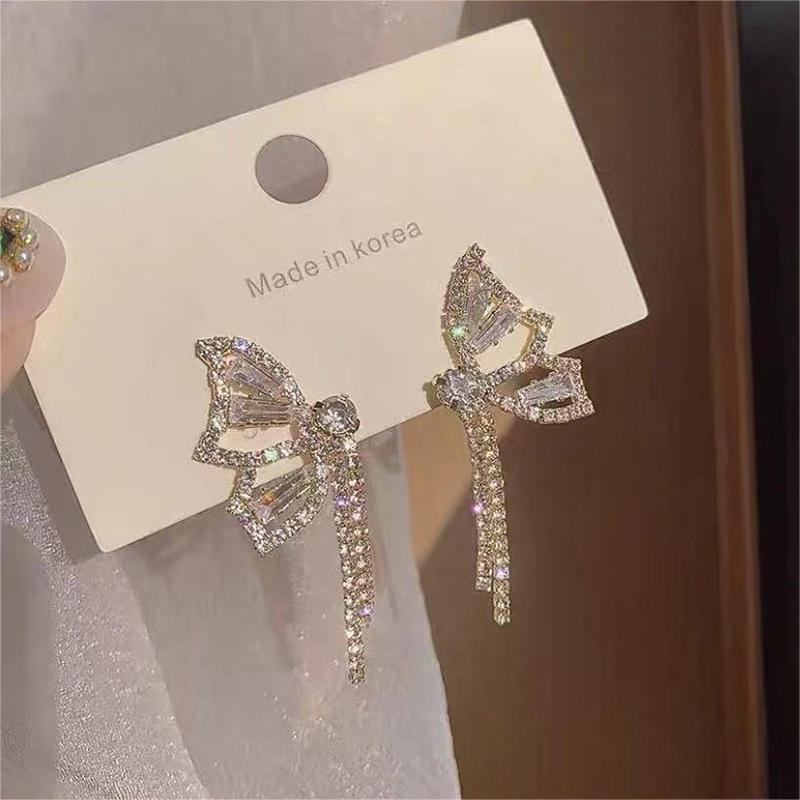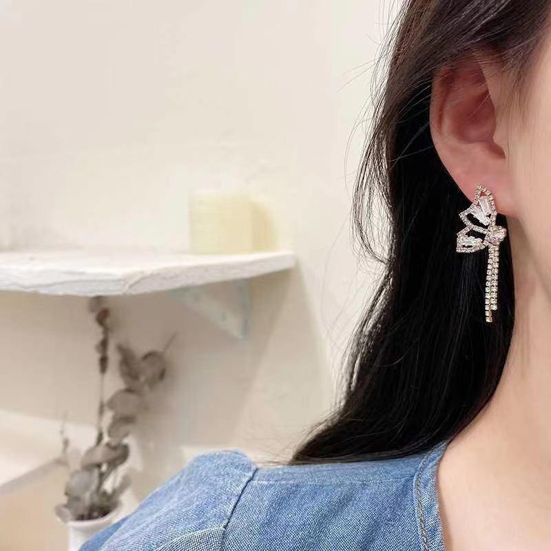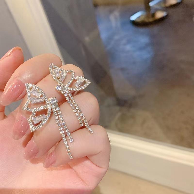 Pendientes de diamantes con borlas y alas de estilo coreano 2023, elegantes, ligeros y de lujo, combinables con todo para mujeres.