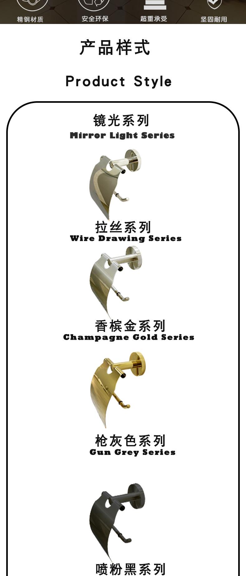 Mirror series, Brushed series, Mirror gold series, Brushed gun gray series, Powder spray black series