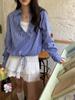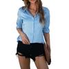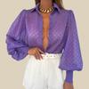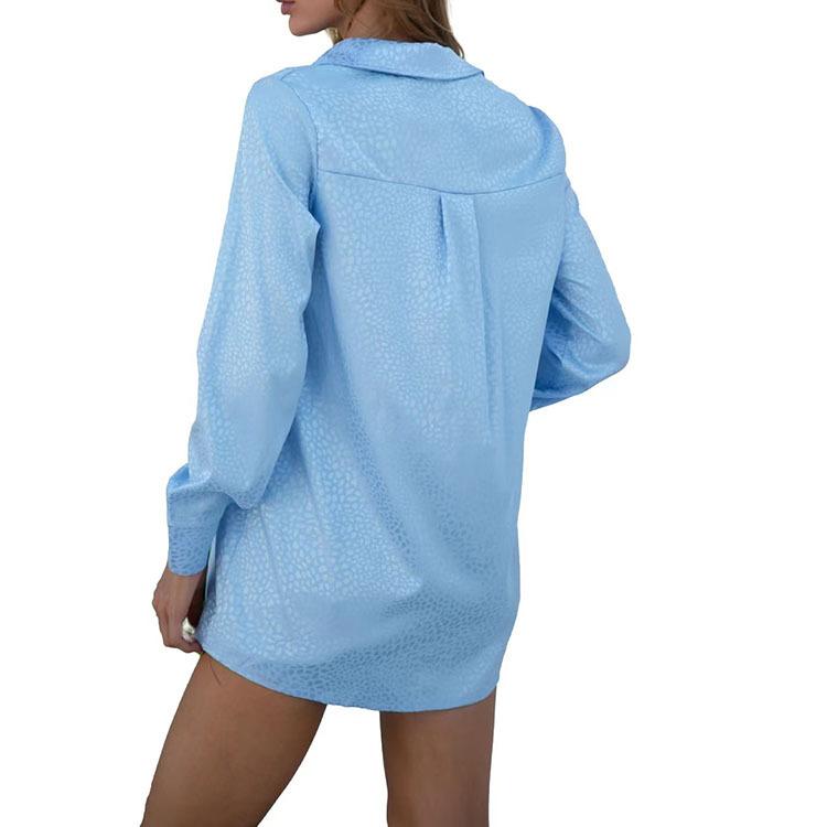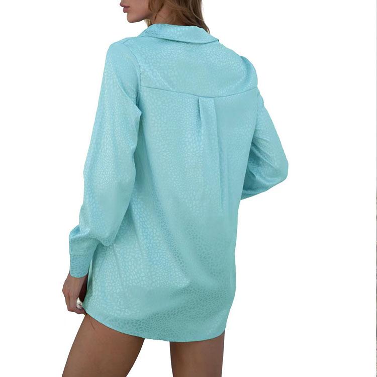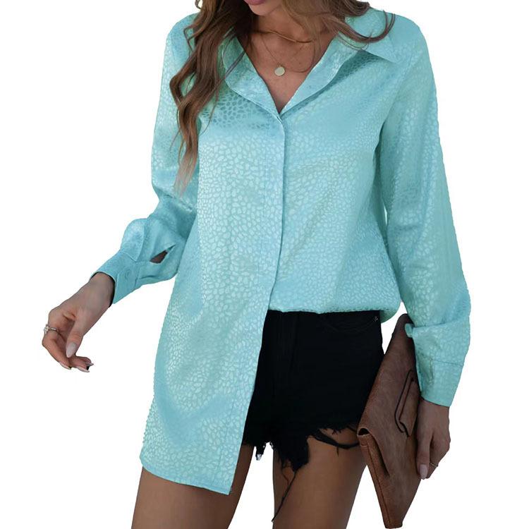 Primavera 2025 Amazon Comercio Exterior Nuevo Estampado de Cuadros Satén Patrón Grava Manga Larga Tops Holgados para Mujer Camisa para Mujer