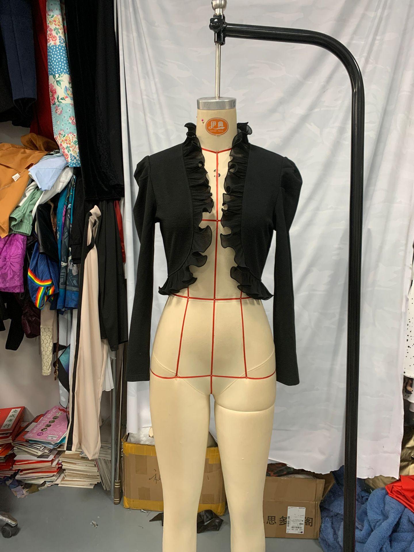 Europa y Estados Unidos transfronterizo nuevo cárdigan con volantes otoño mujer manga larga top abrigo corto mujer