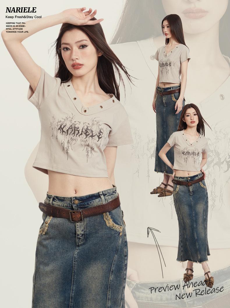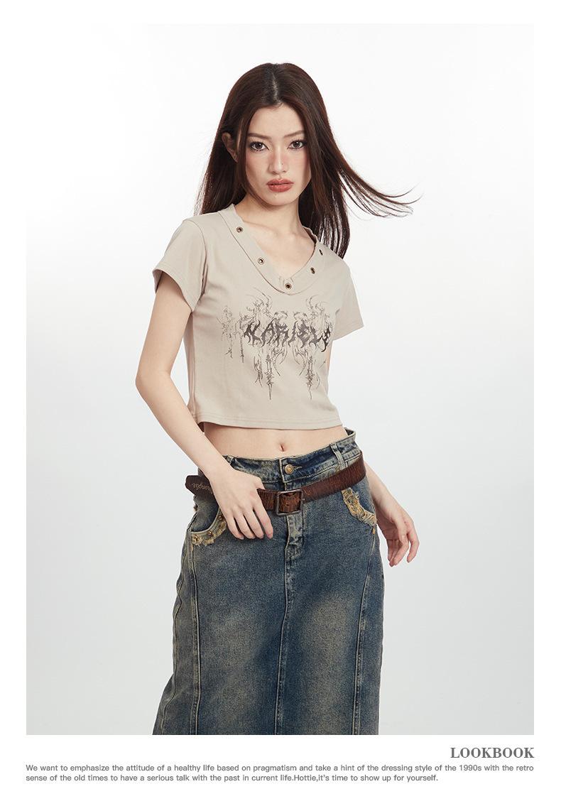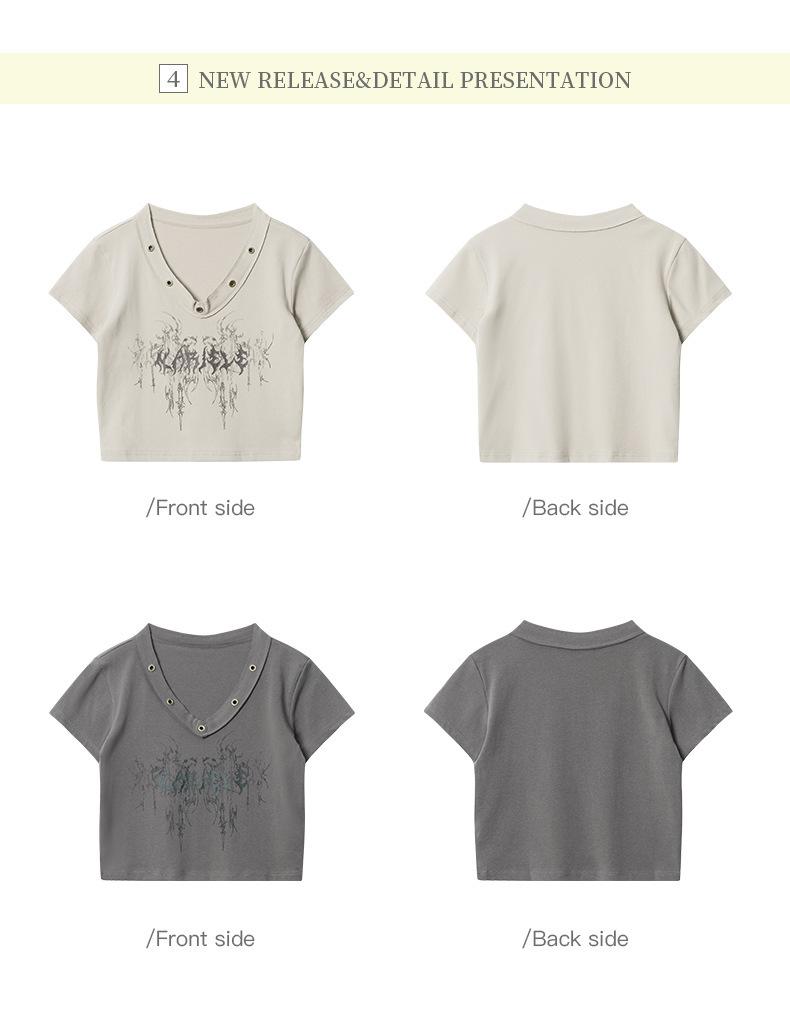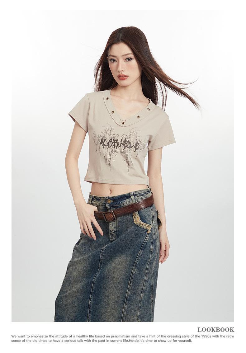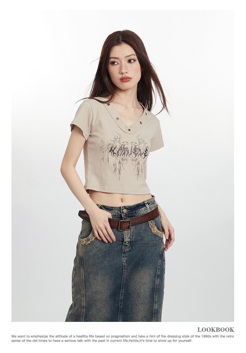 Heyhenry 2025 Nuevo Patrón de Verano Camiseta Corta Estampada Sexy con Ombligo Descubierto Top Versátil con Aspecto Adelgazante