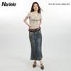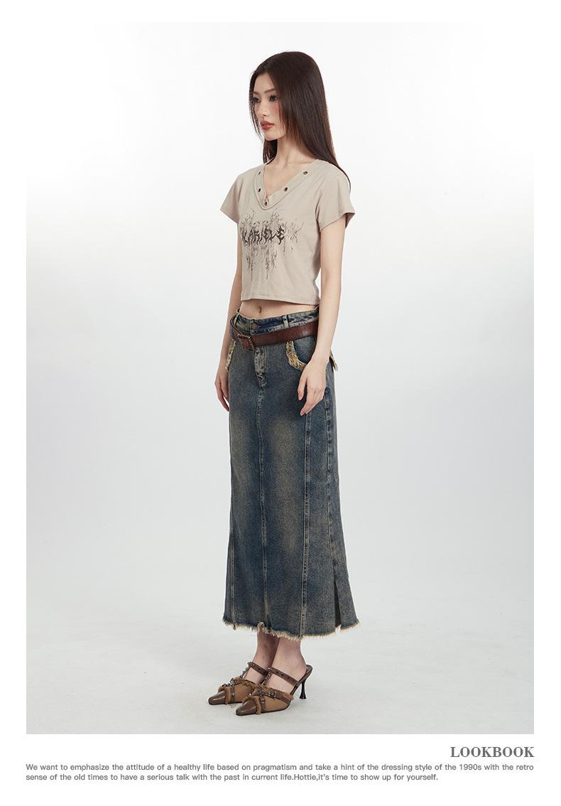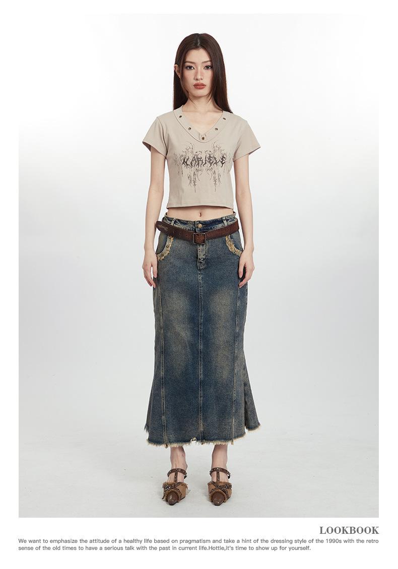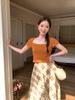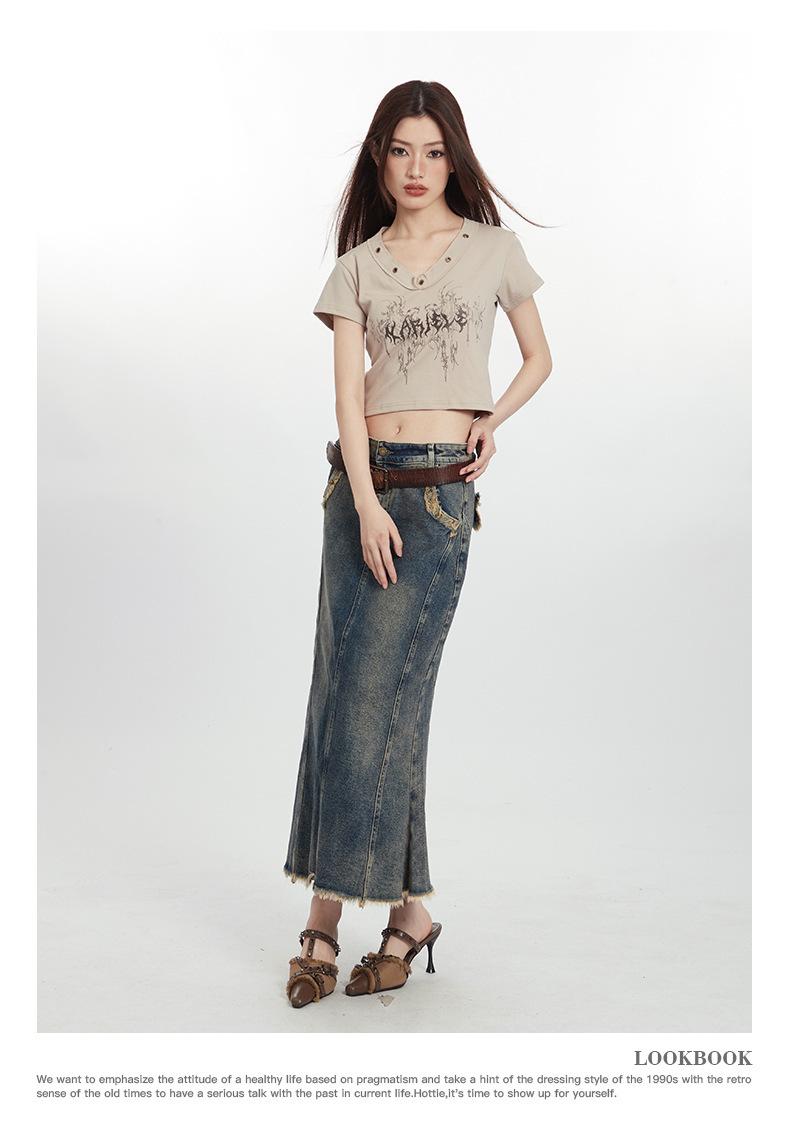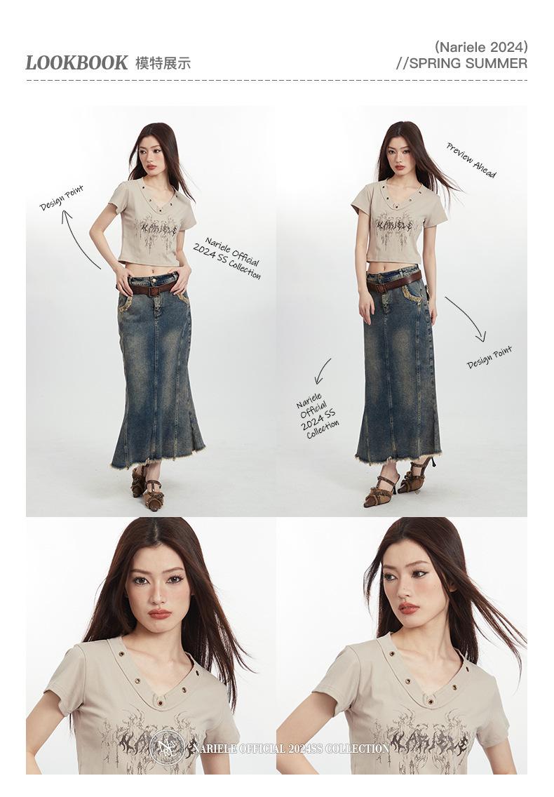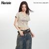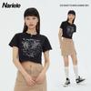 Heyhenry 2025 Nuevo Patrón de Verano Camiseta Corta Estampada Sexy con Ombligo Descubierto Top Versátil con Aspecto Adelgazante