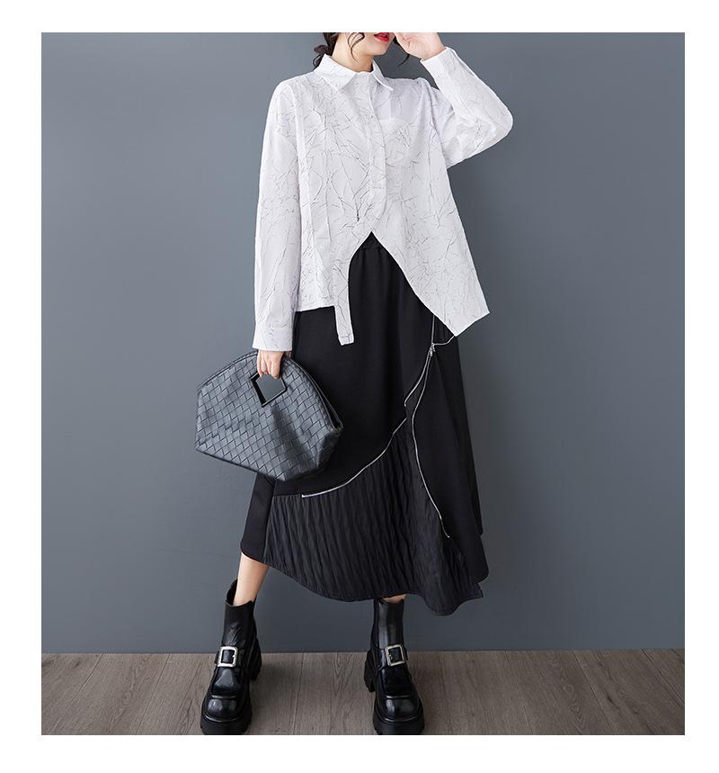 Camisa de moda para primavera y otoño 2025, holgada, adelgazante, con diseño artesanal, plisada, irregular y combinable.