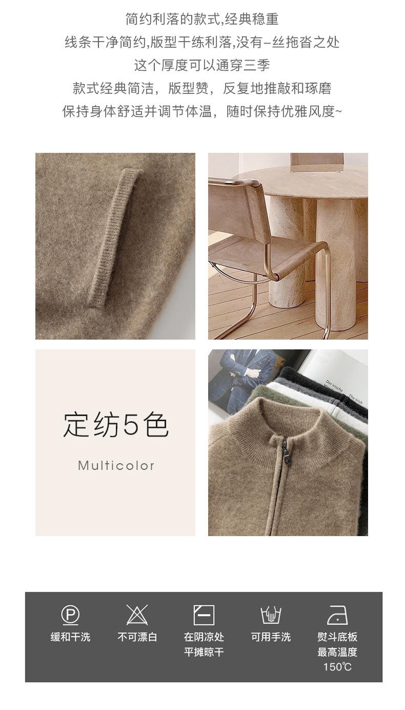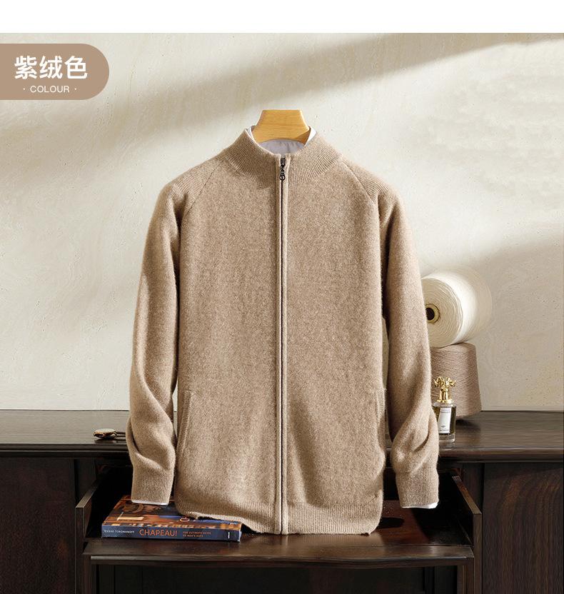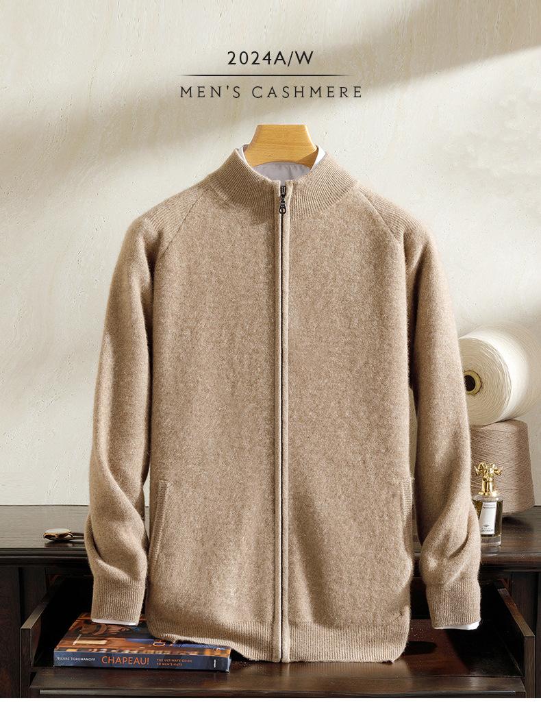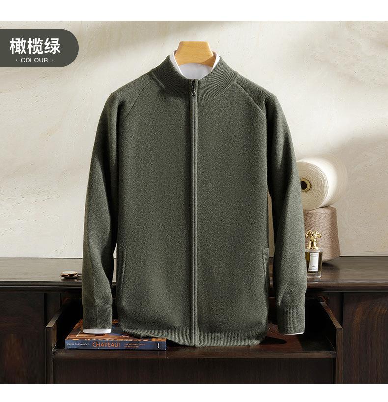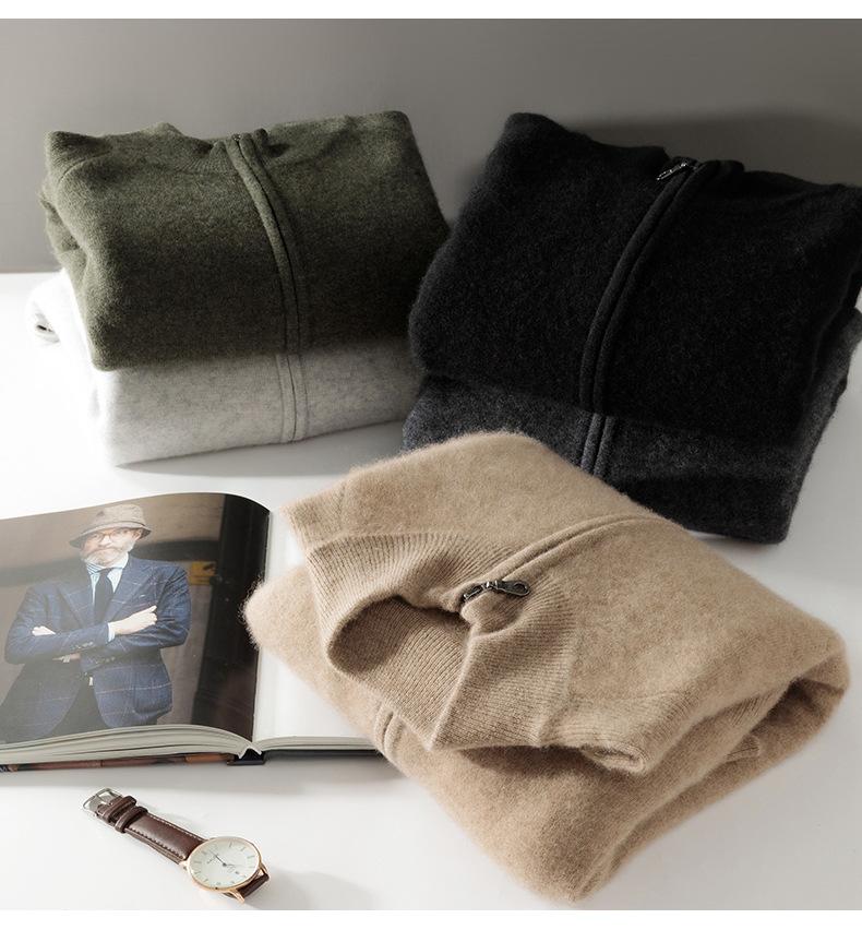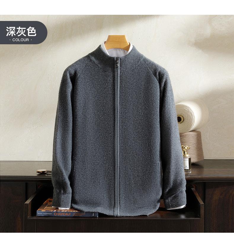 Cárdigan de Cachemira 100% Ligera para Hombre Otoño e Invierno Nuevo Suelto Grueso Chaqueta con Cremallera Moda Casual Top de Punto