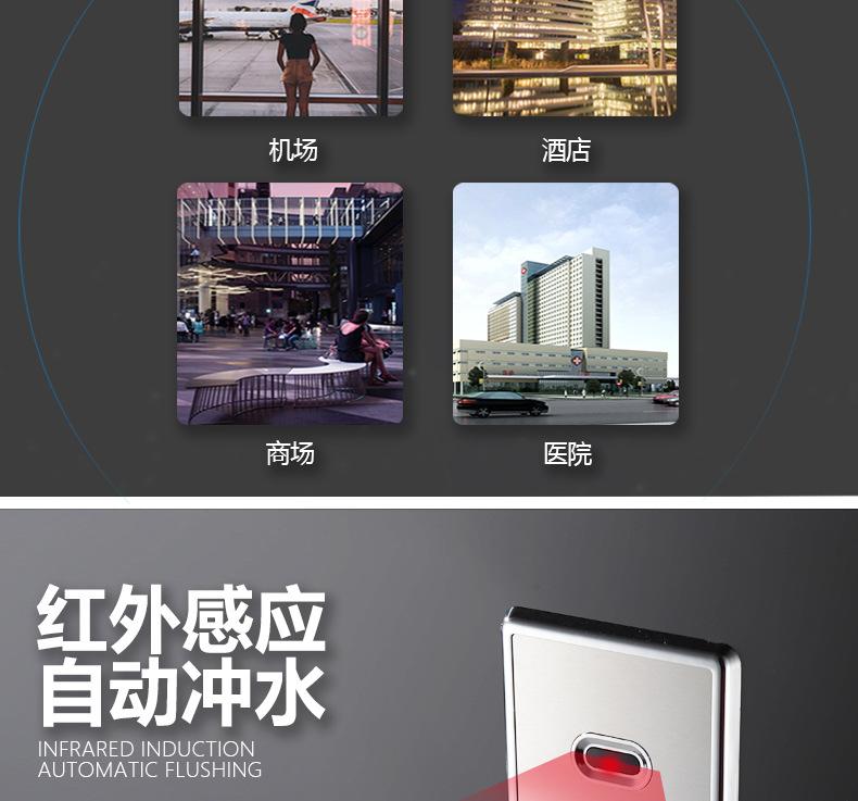 Urinario público para baño doméstico, urinario con descarga automática por inducción y válvula de descarga infrarroja oculta.