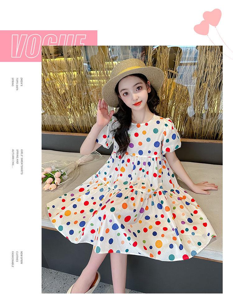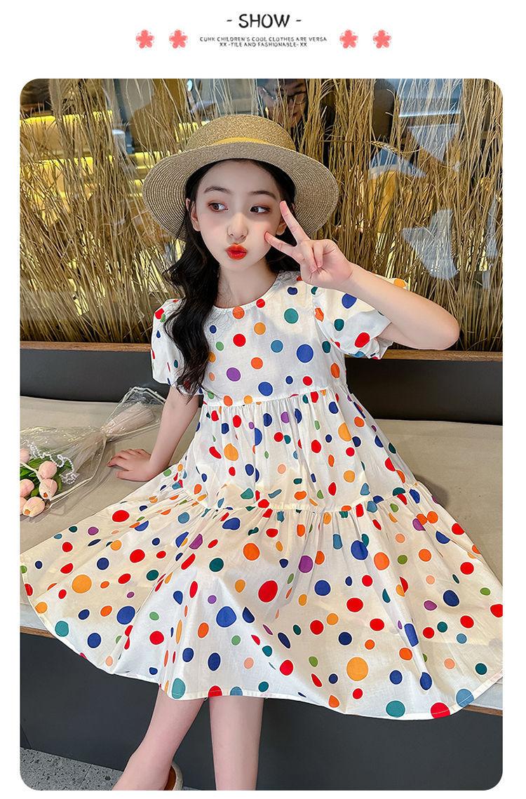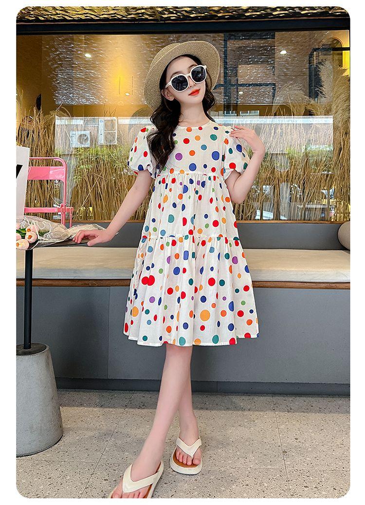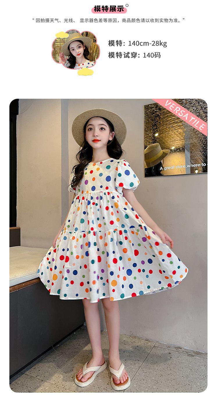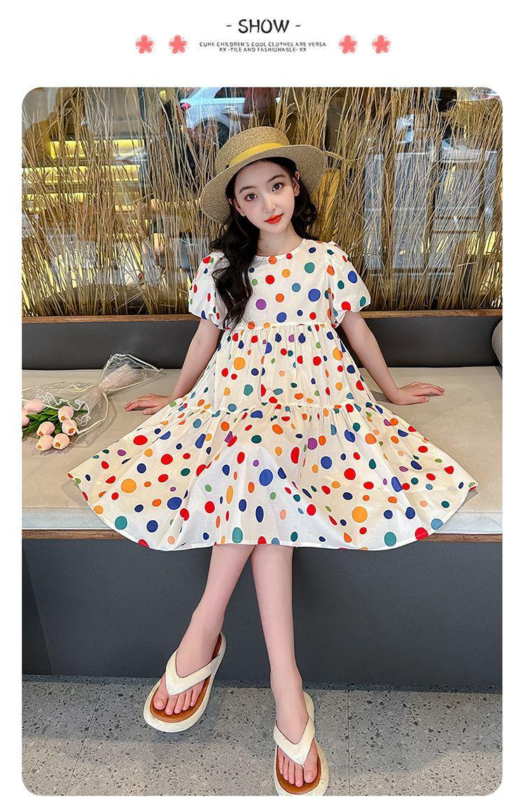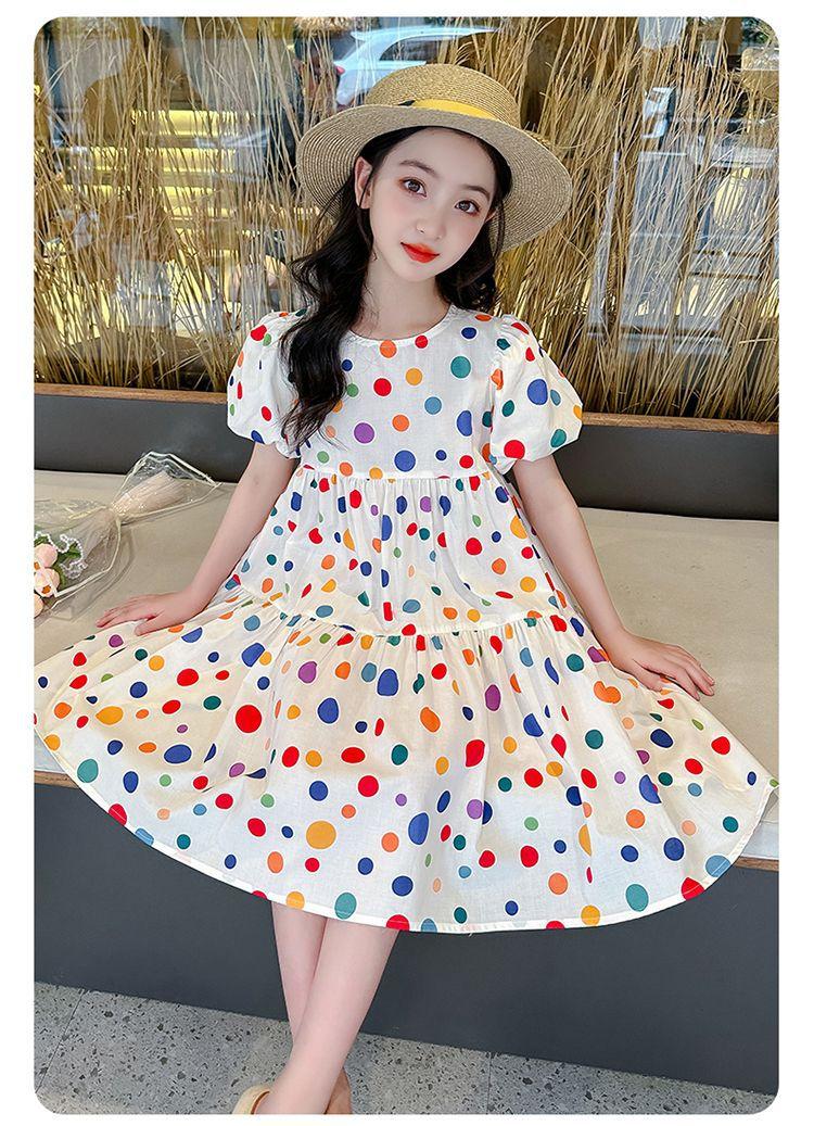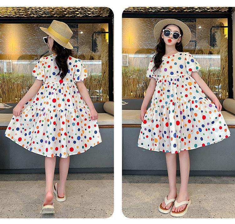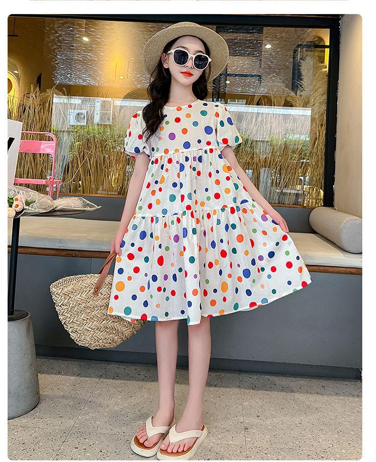 Vestido de Verano para Niñas 2025 Estilo Coreano Estilo Dulce Vestido Coreano para Niñas Lunares Cuello Redondo Manga Abullonada Vestido de Princesa