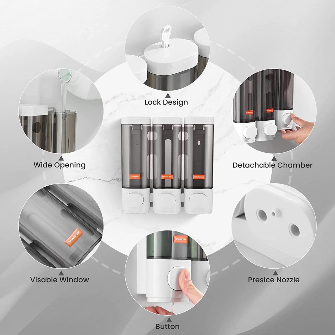 Suministro Directo Transfronterizo Dispensador de Jabón de Tres Cabezales Montado en la Pared Hogar Hotel Dispensador de Jabón Caja Perforación Libre Presión Manual Caja de Gel de Ducha