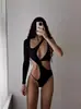 Mono de verano de manga larga con hombros descubiertos y cremallera, estilo europeo y americano, a la moda para mujer