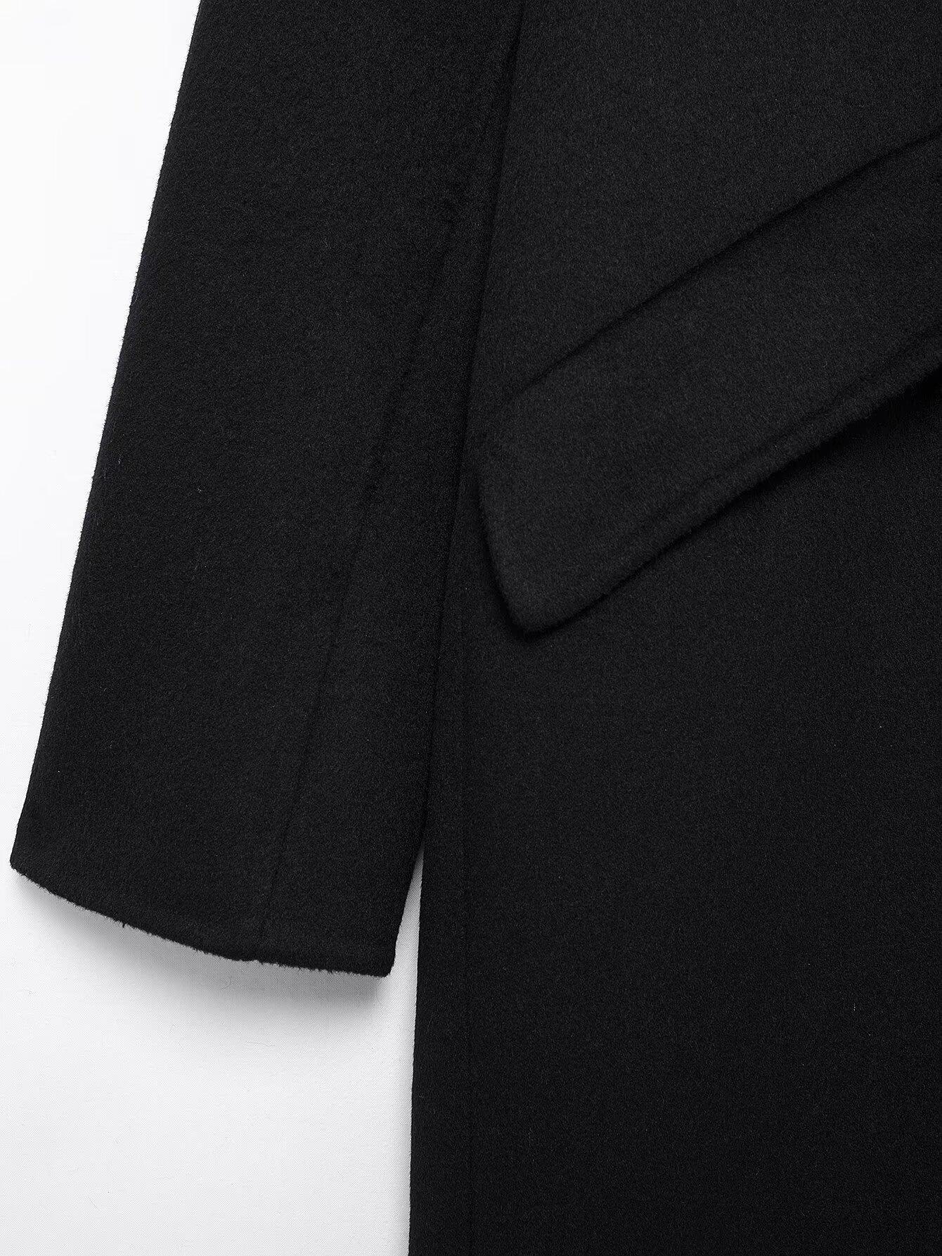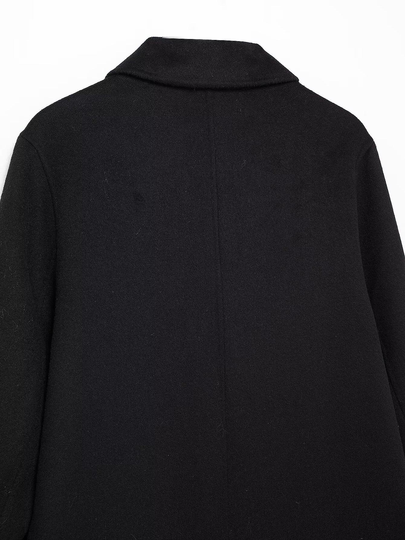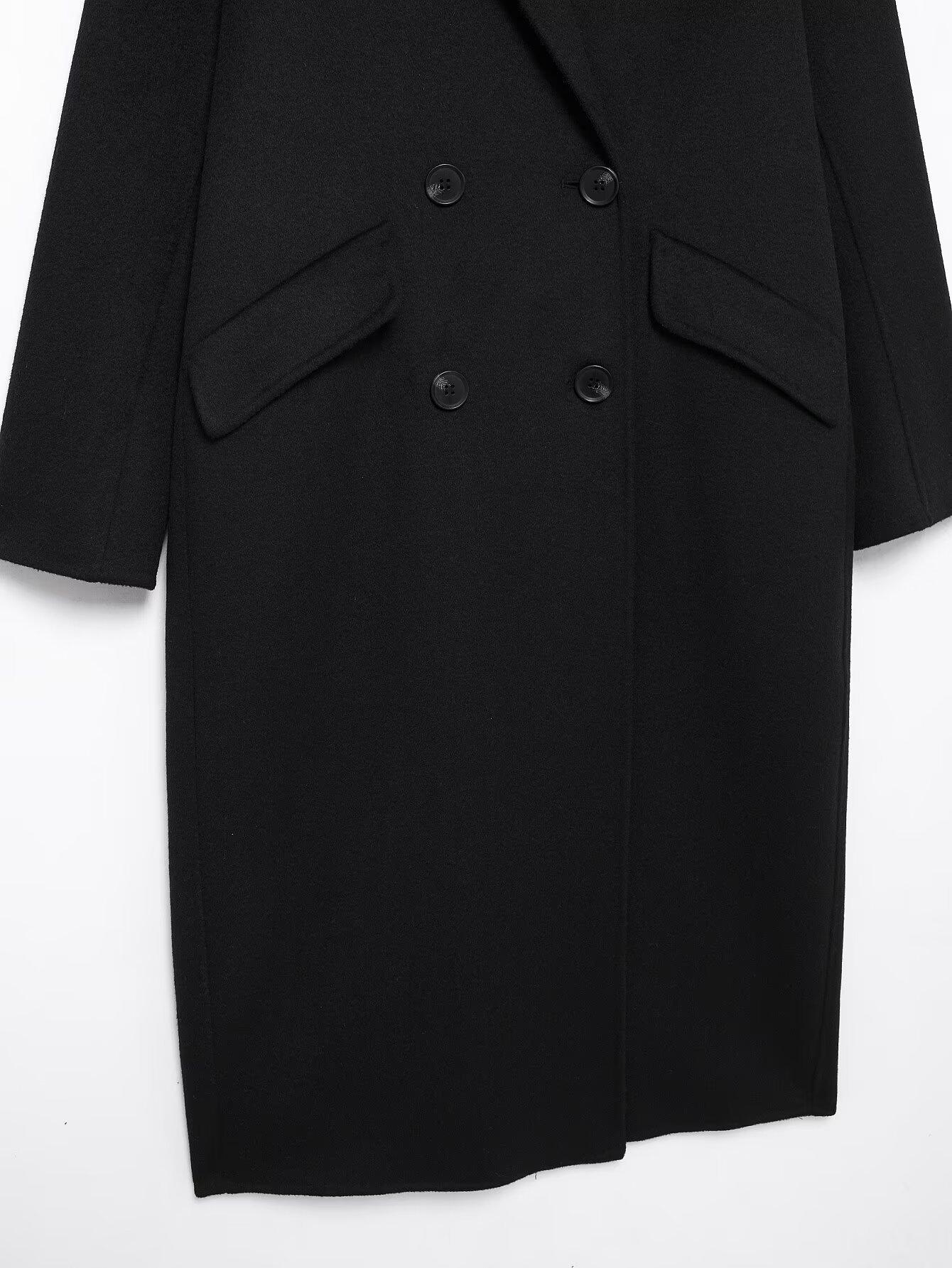 Chaqueta larga de lana holgada, elegante, de estilo neutro, con solapa y doble botonadura para mujer, estilo europeo y americano transfronterizo de otoño