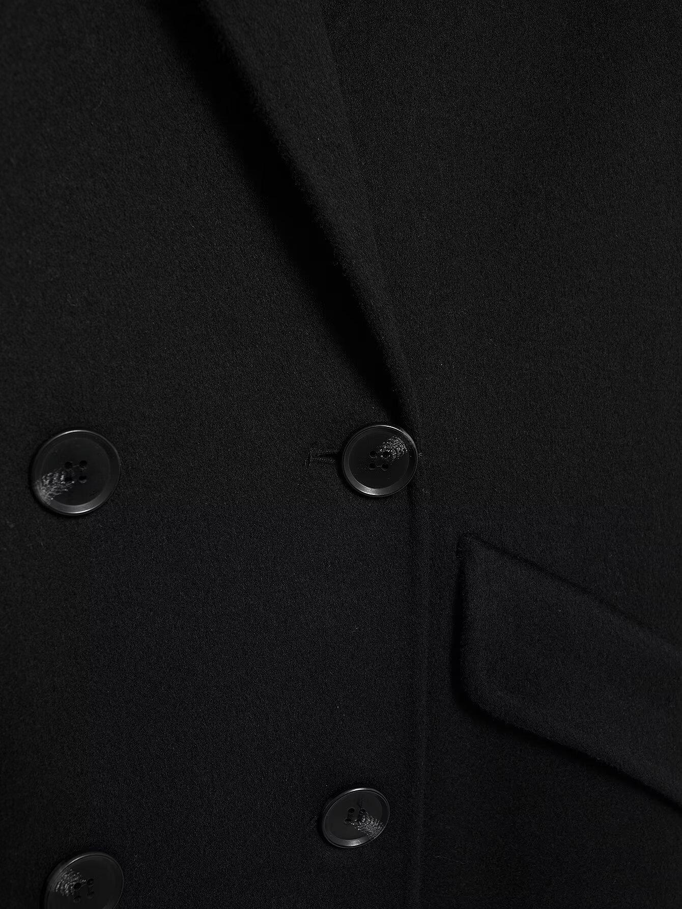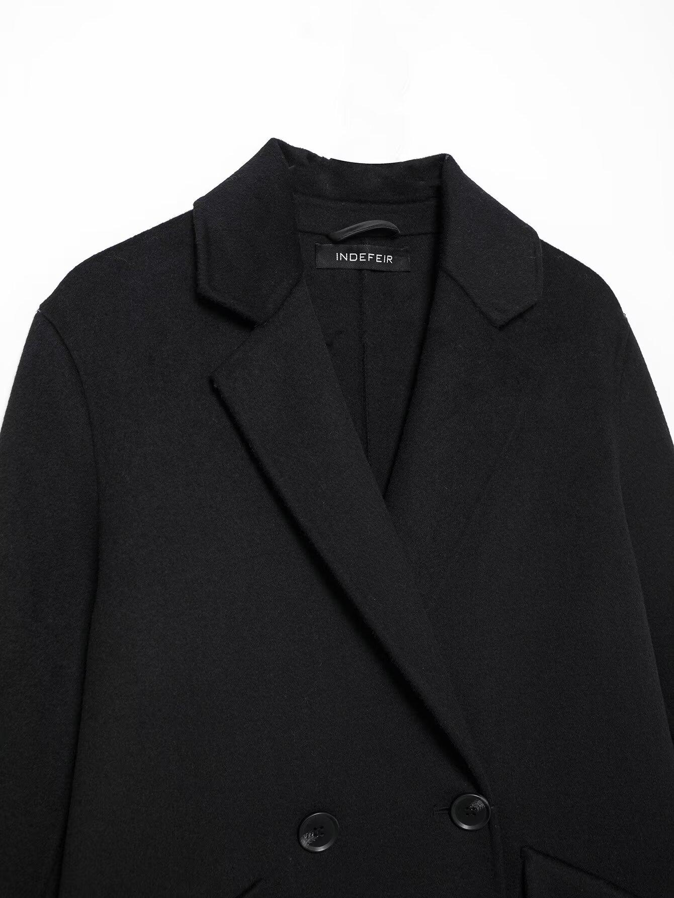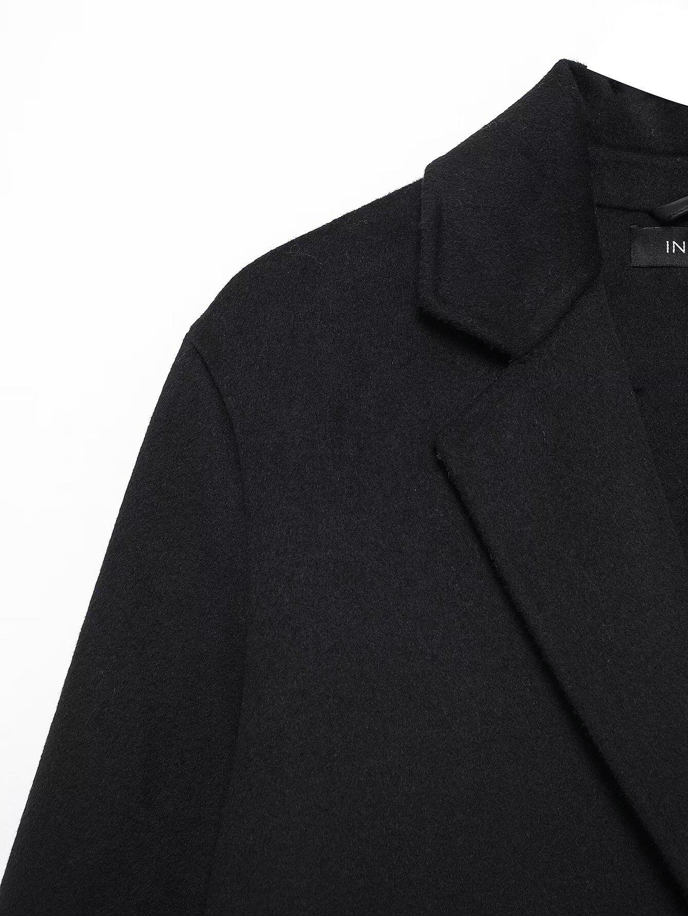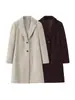 Chaqueta larga de lana holgada, elegante, de estilo neutro, con solapa y doble botonadura para mujer, estilo europeo y americano transfronterizo de otoño