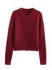 Chaqueta de punto con textura de manga larga y cuello redondo de color liso para mujer europea y americana de primavera 2025 3991125