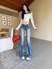 Talla grande color tanino micro-blah jeans mujer otoño 2024 nuevo chica gordita cintura alta adelgazantes pantalones acampanados retro americanos