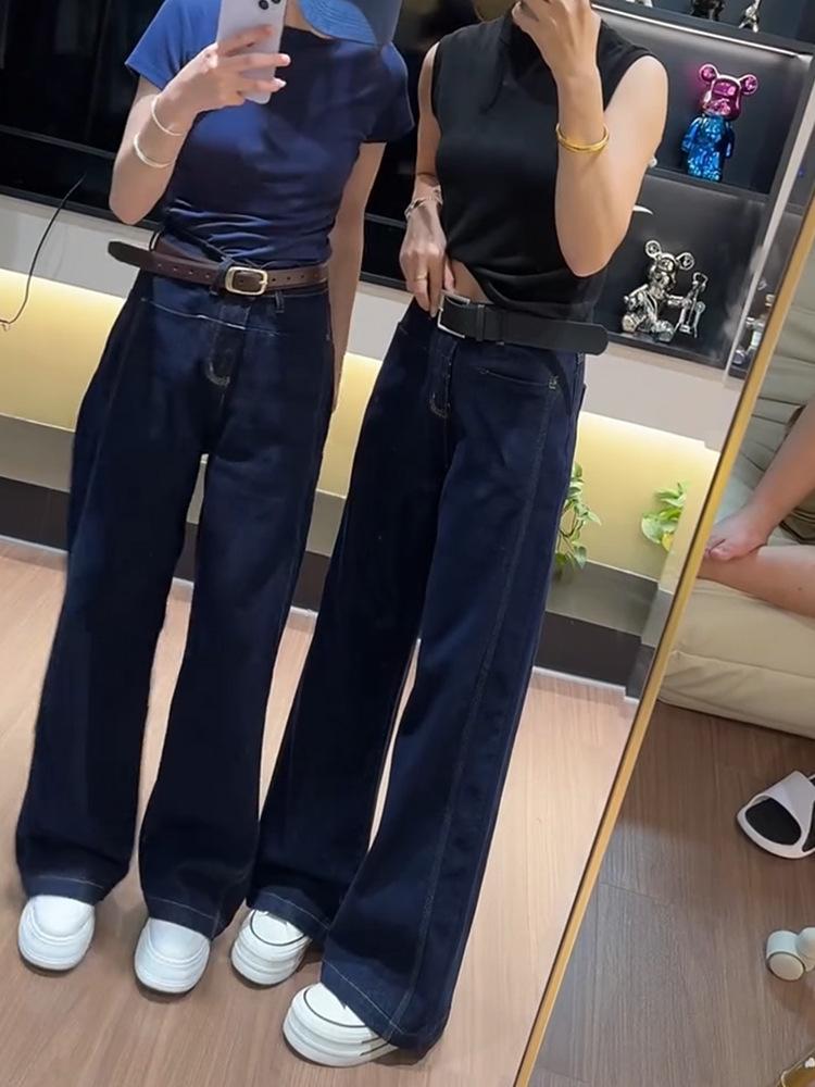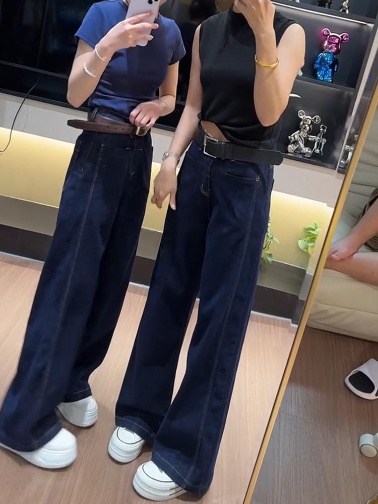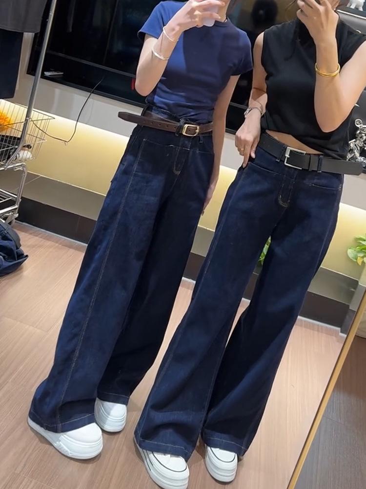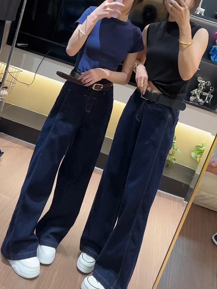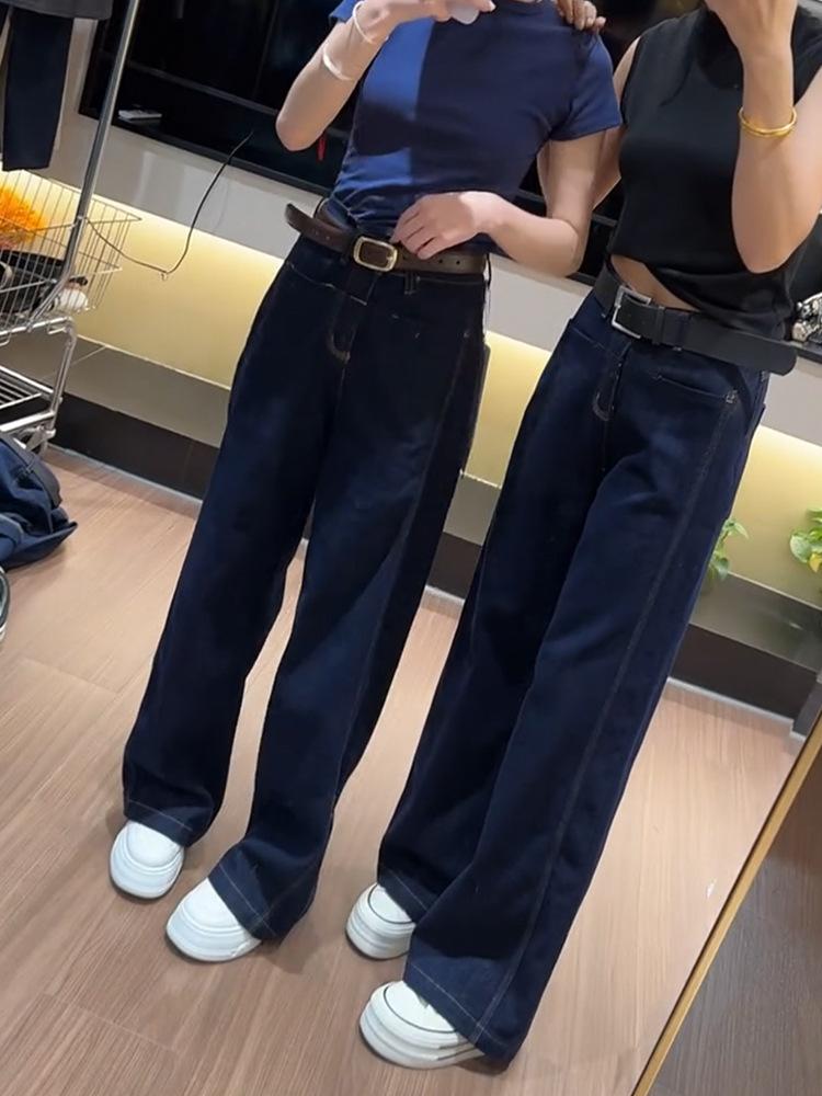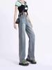 Talla grande Jeans Rectos de Cintura Alta para Mujer Otoño 2024 Nuevo Niña Gordita Sueltos Cubre Carne Adelgazantes Pantalones de Pierna Ancha