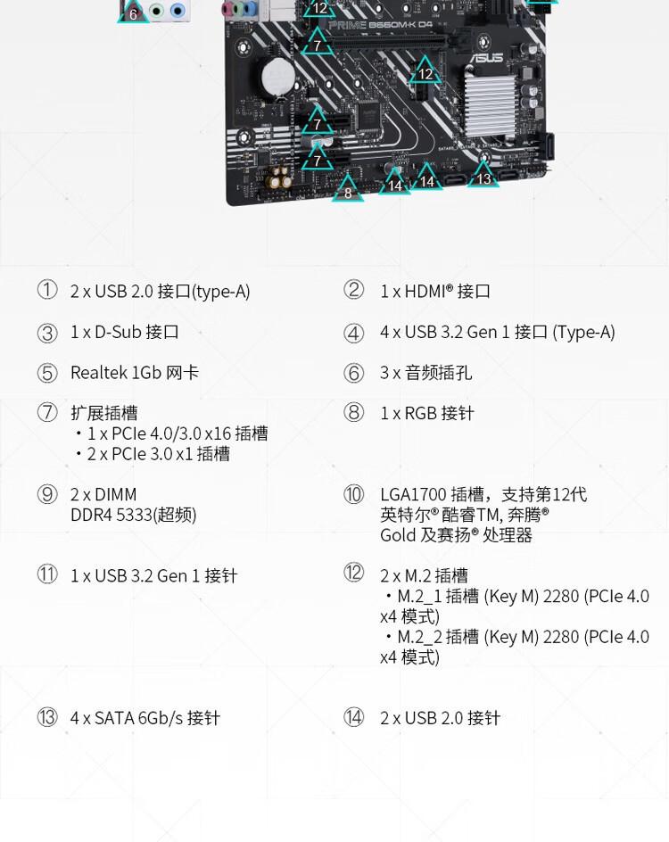 Para placa base ASUS PRIME B660M-K D4 compatible con CPU de 12-13 generación, juegos de computadora y otros