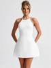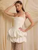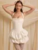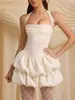 Falda tutú de doble capa con tirantes para el cuello, color liso, dulce, otoño e invierno 2024, nuevo vestido sin mangas con temperamento y cintura sin espalda