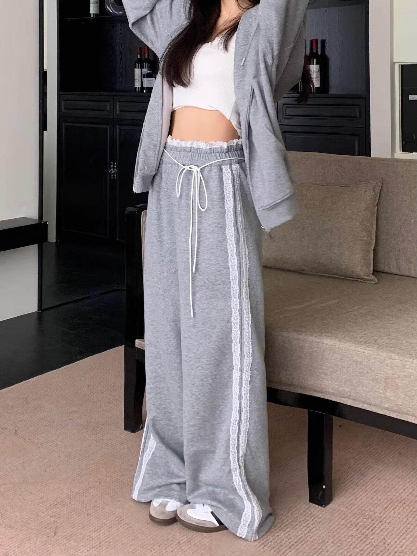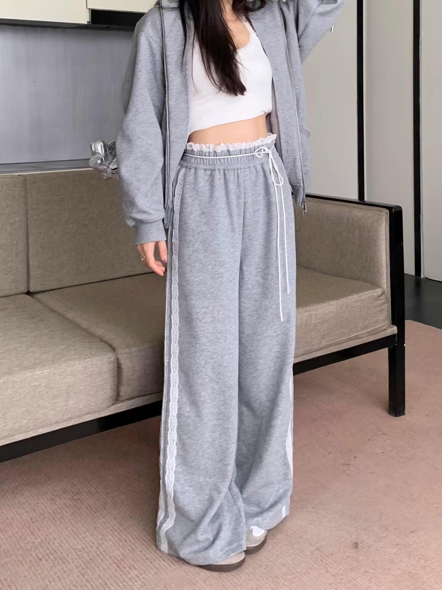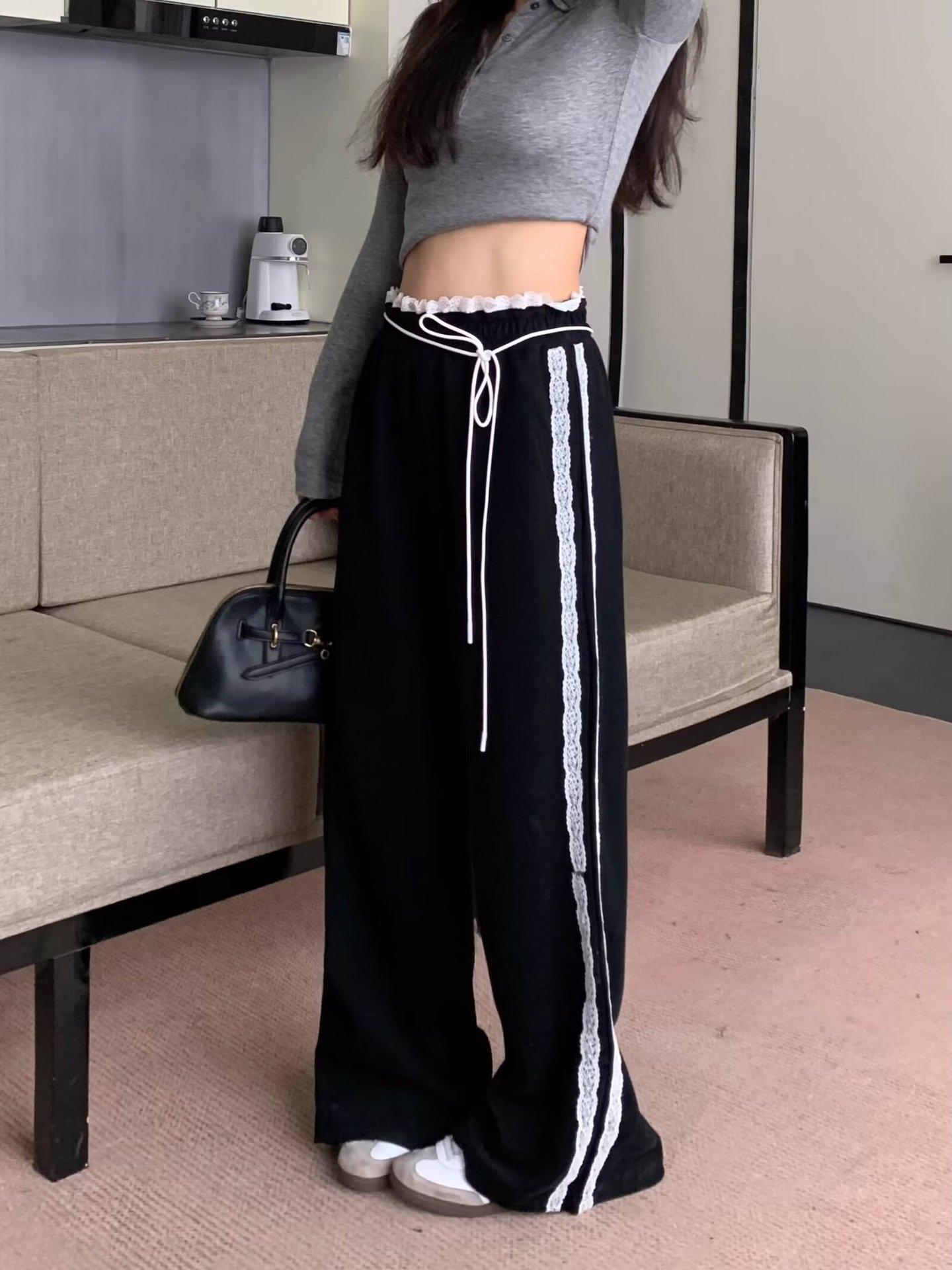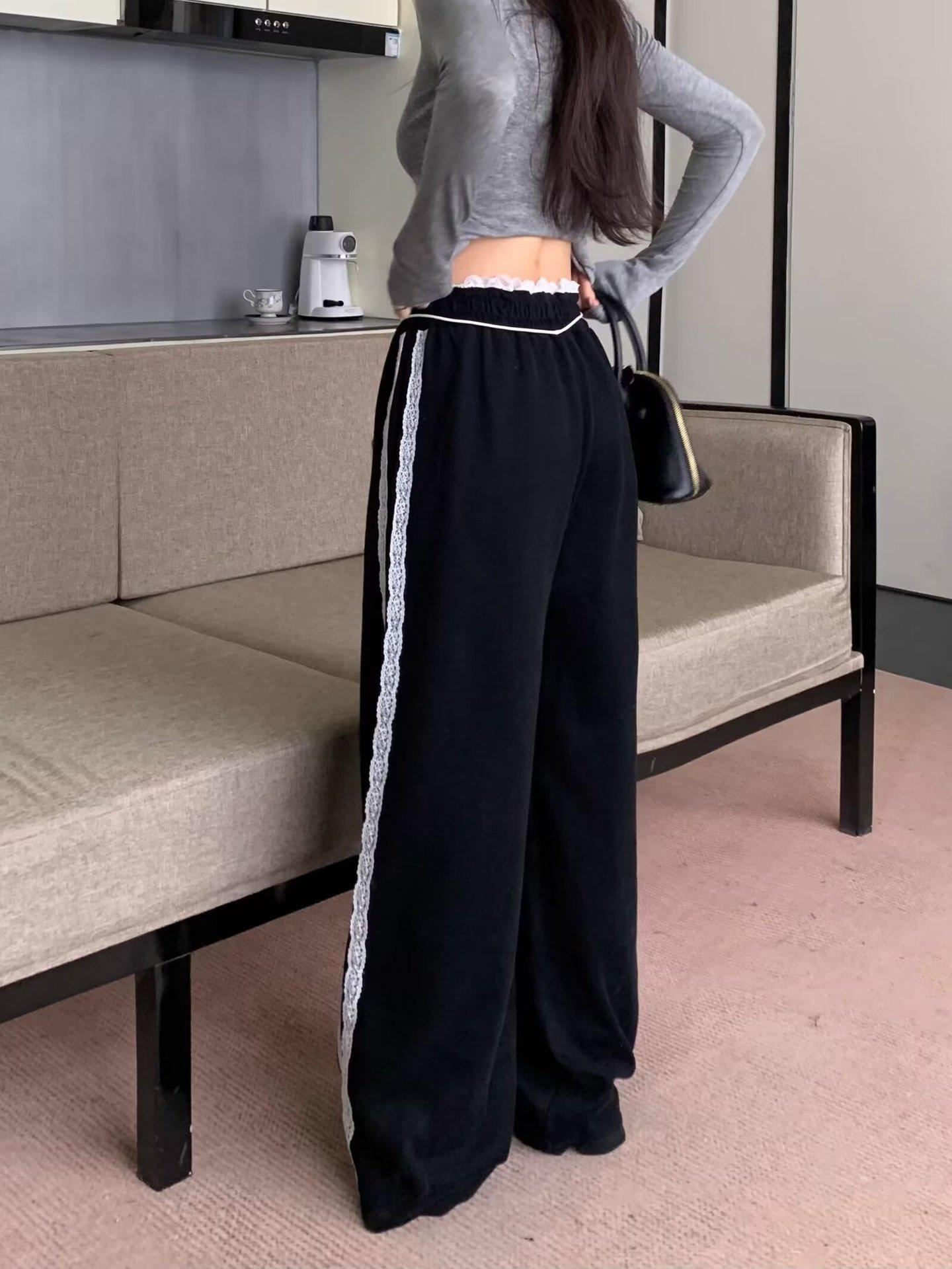 Otoño e invierno 2024 invierno nuevo diseño nicho cintura elástica encaje costuras pantalones deportivos casuales mujer