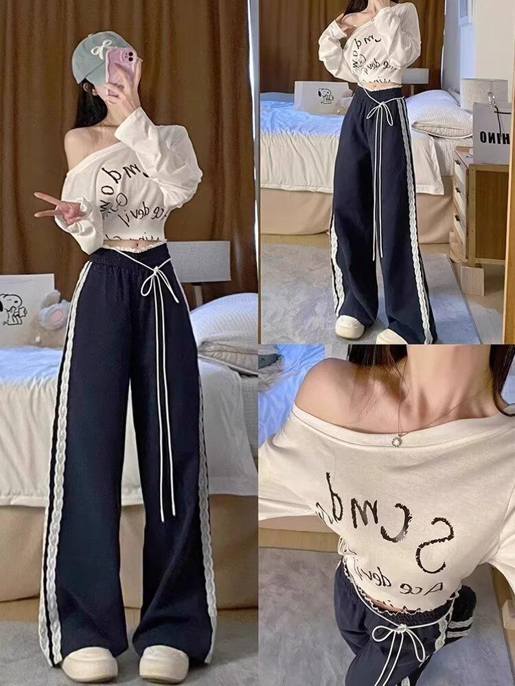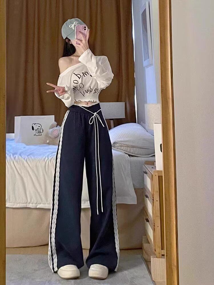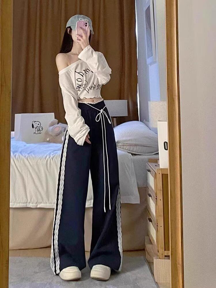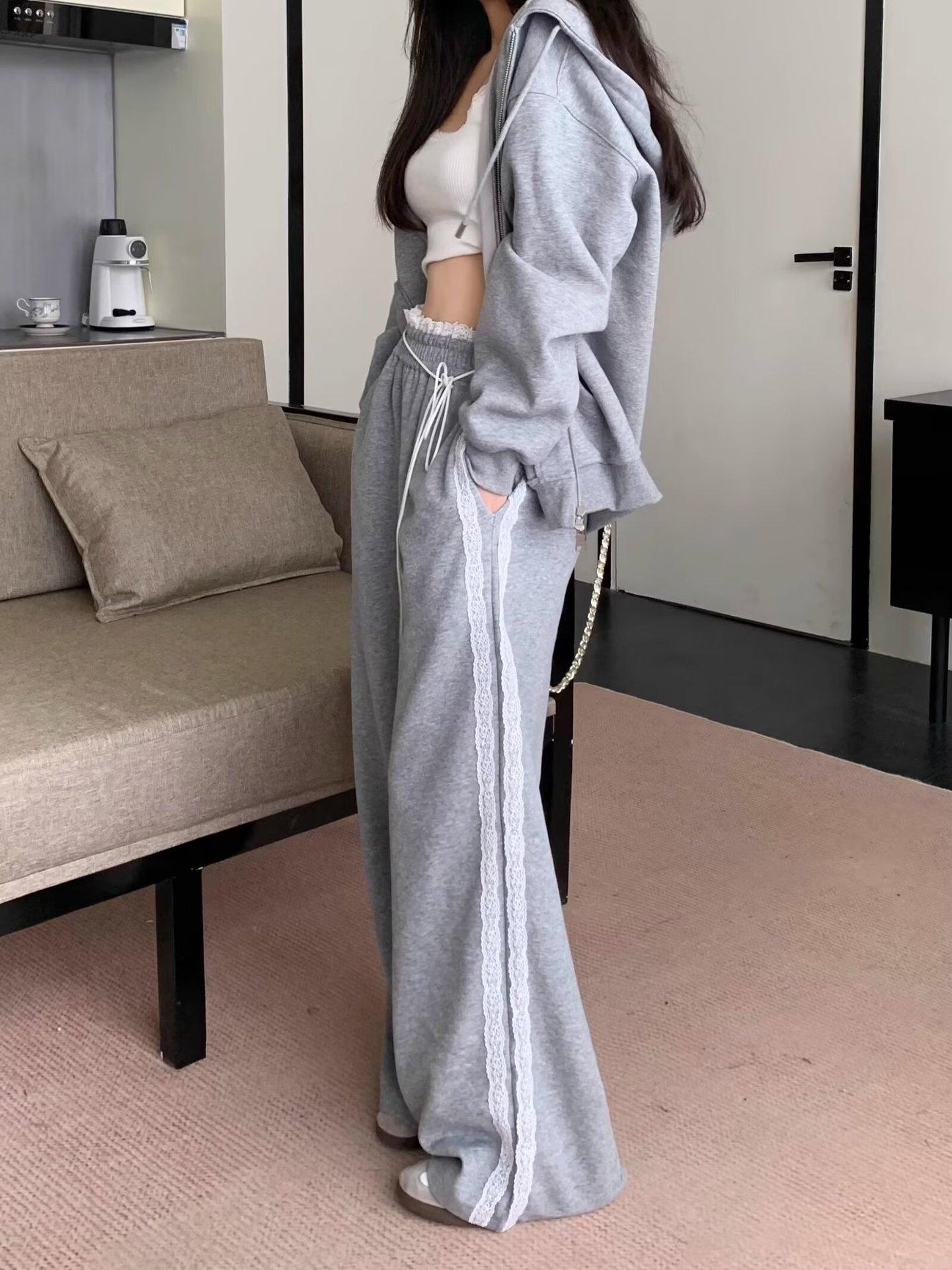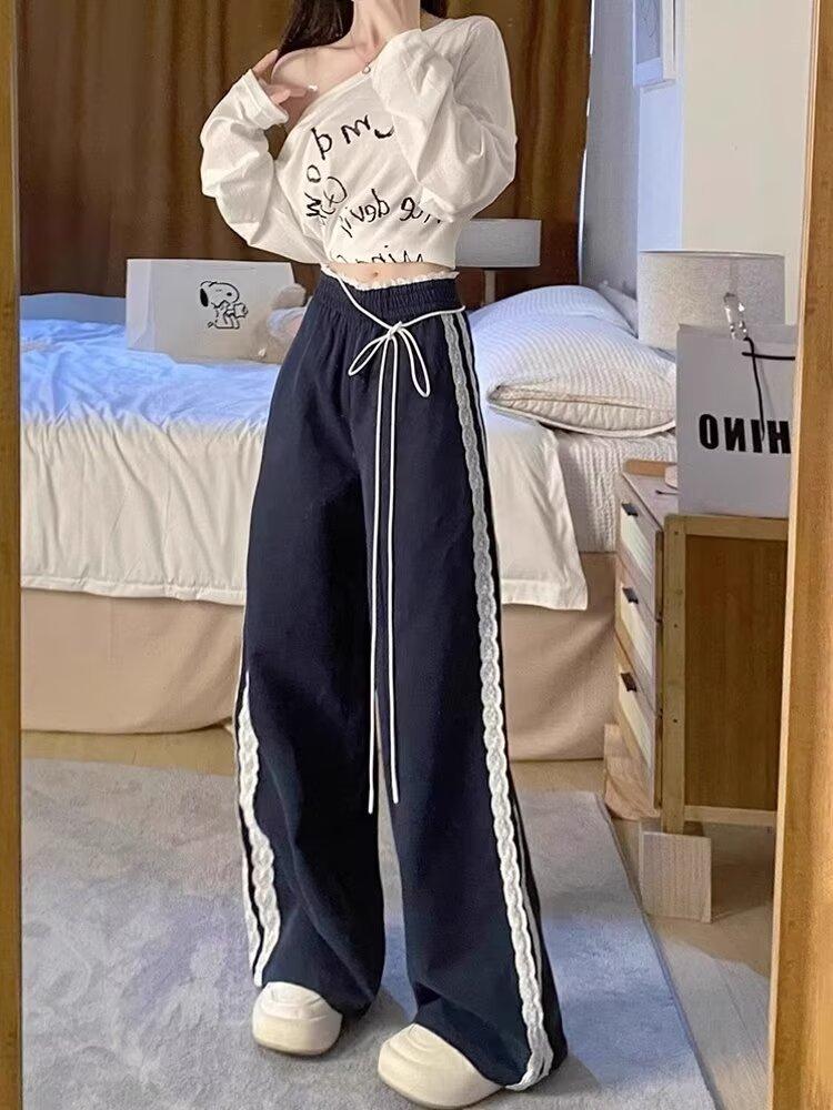 Otoño e invierno 2024 invierno nuevo diseño nicho cintura elástica encaje costuras pantalones deportivos casuales mujer