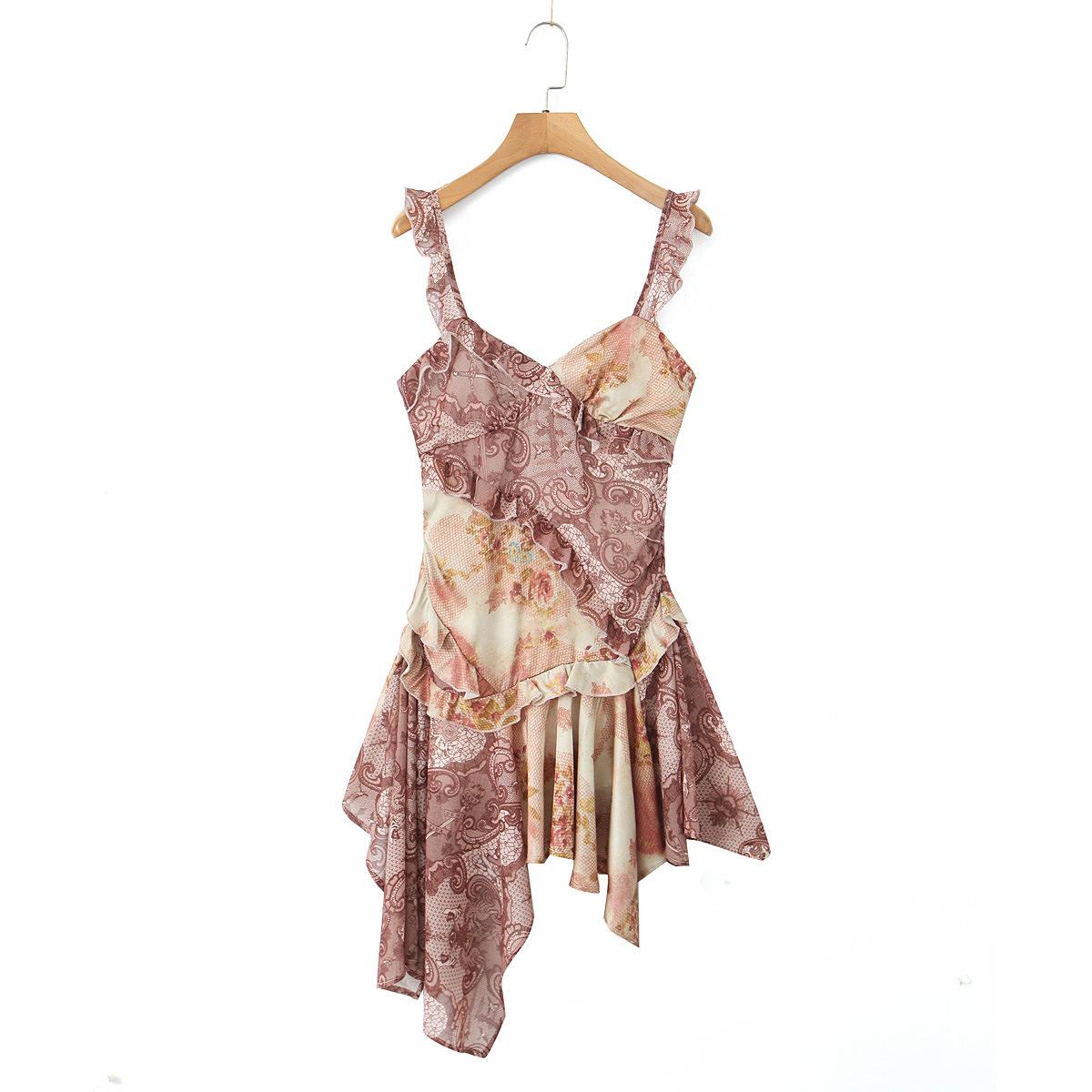 6521-Estilo europeo y americano 2024 nuevo diseño femenino chica hot sexy dobladillo irregular vestido con tirantes falda