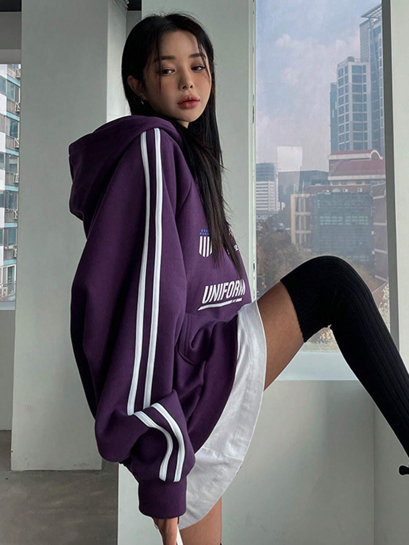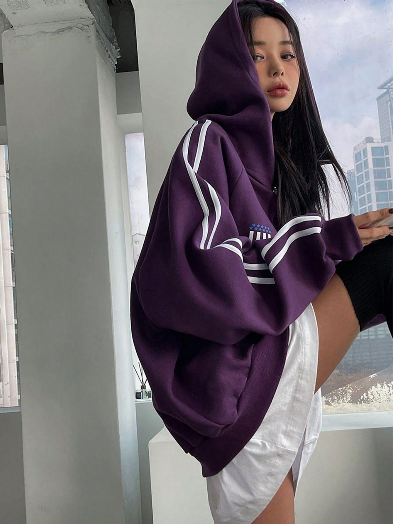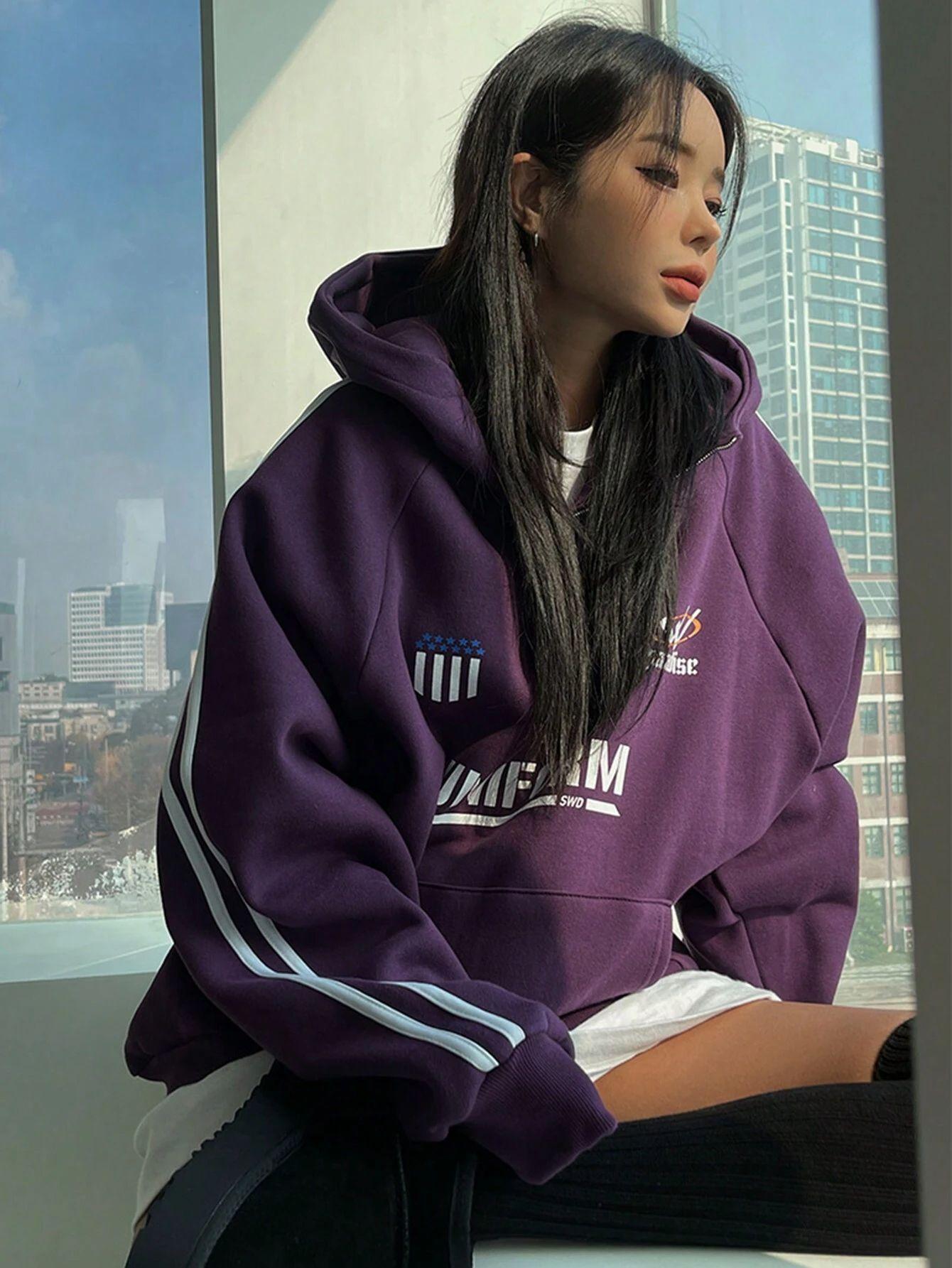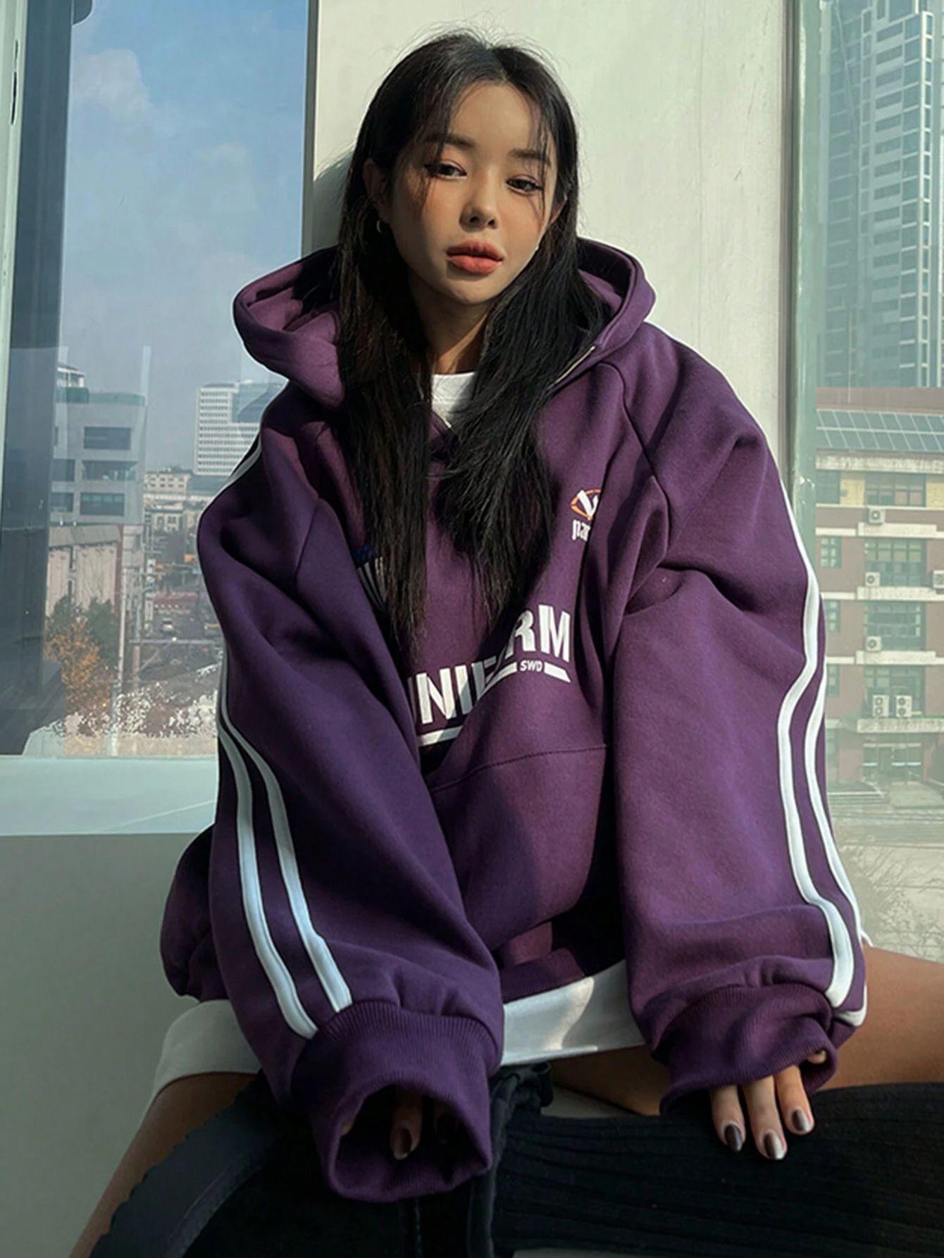 Suéter de Primavera y Otoño para Mujer Estilo Holgado Perezoso Hombro Derecho Ajustado Sudadera con Capucha Estampada Casual Urbana Manga Larga Amazon