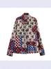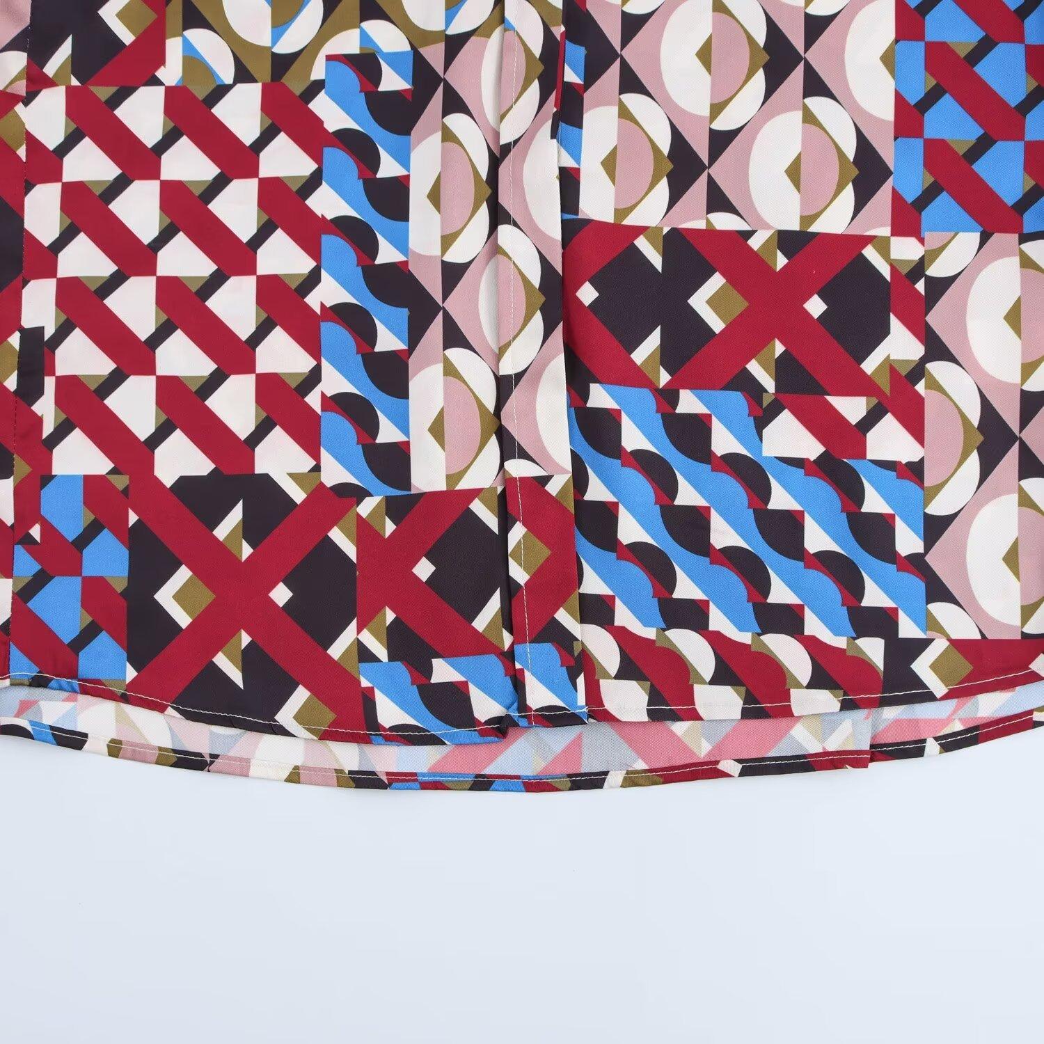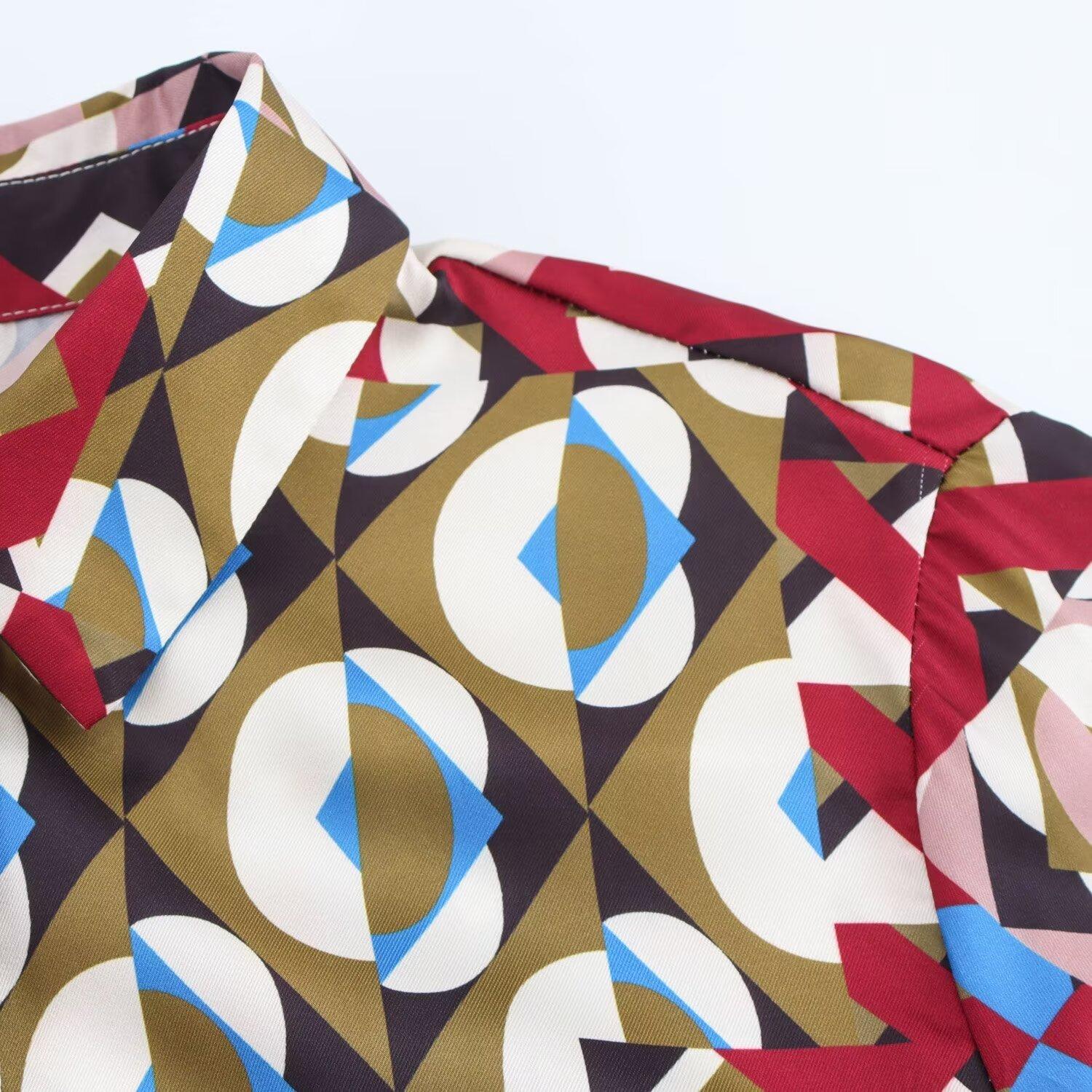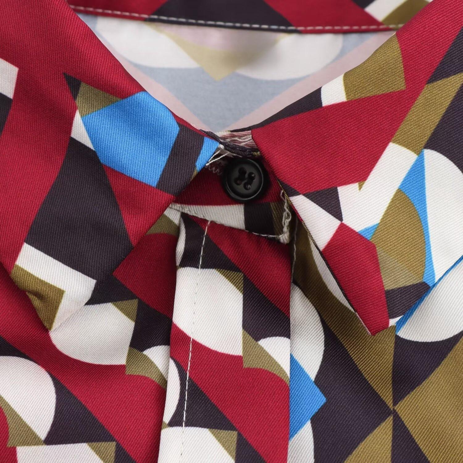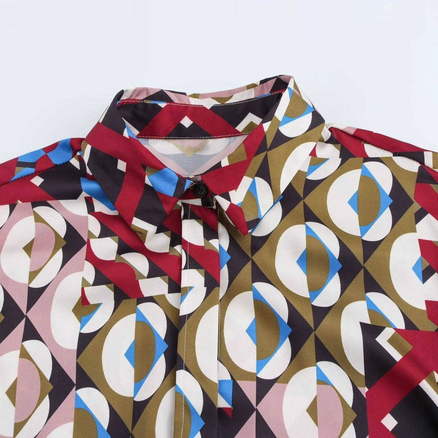 Camisa Estampada de Solapa de Manga Larga con Textura de Satén de Seda de Patrón Geométrico de Invierno para Mujer Europeo y Americano Transfronterizo 2024 9887284