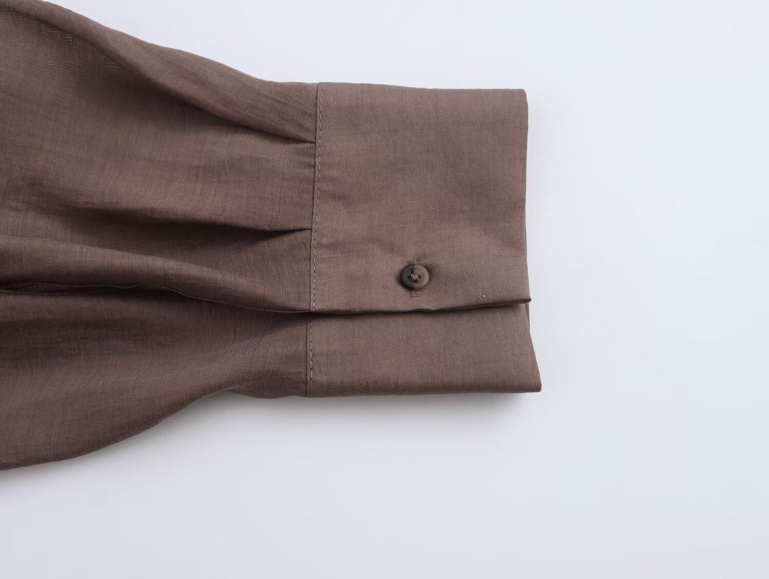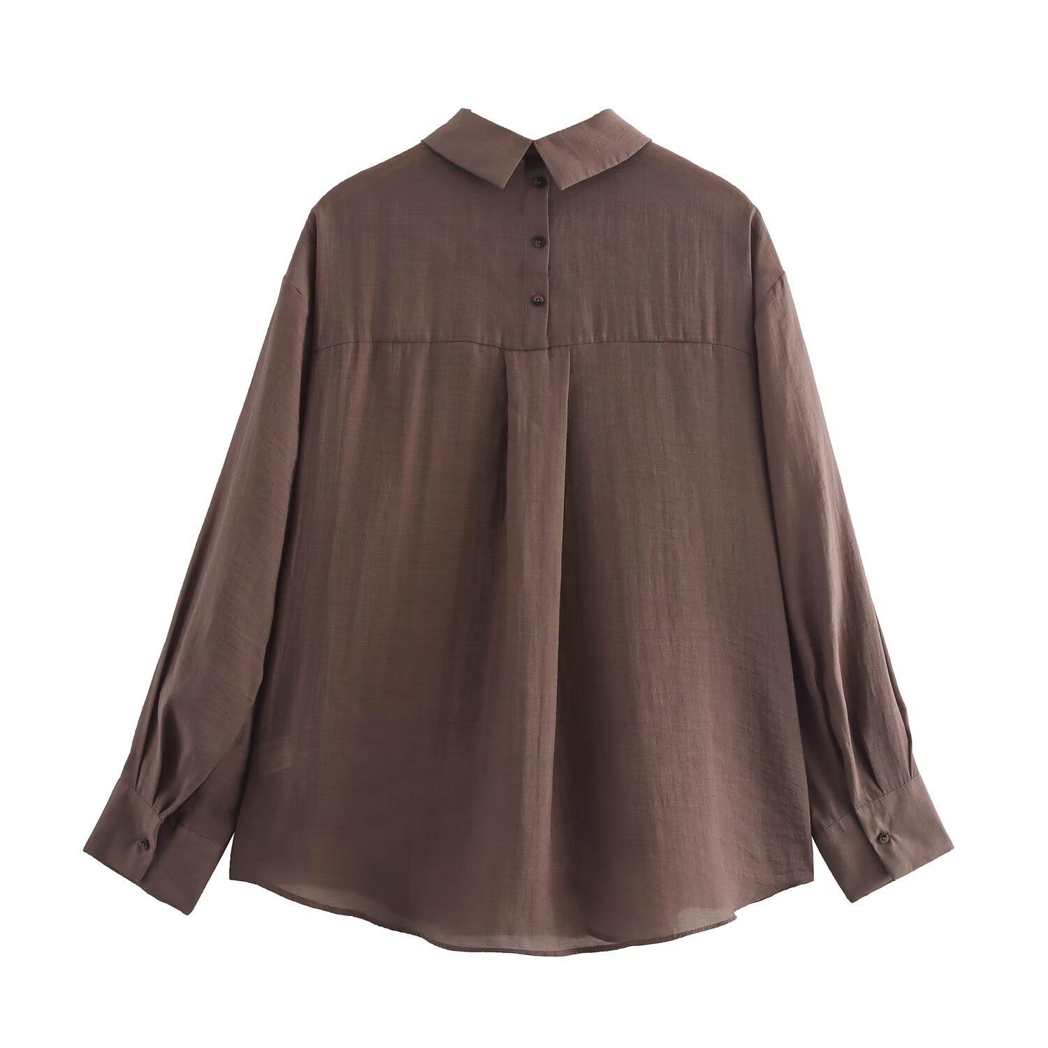 2024 Nuevo Otoño Estilo Europeo y Americano Casual Diseño Holgado y Versátil Camisa de Solapa Decorada con Botones en la Espalda para Mujer