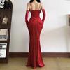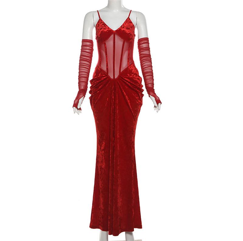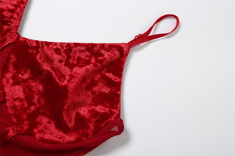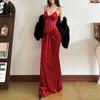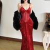 Estilo Europeo y Americano Transfronterizo 2024 Otoño e Invierno Nuevo Vestido de Moda para Mujer de Color Sólido Ajustado de Cintura Alta con Tirantes y Espalda Descubierta con Cuello en V