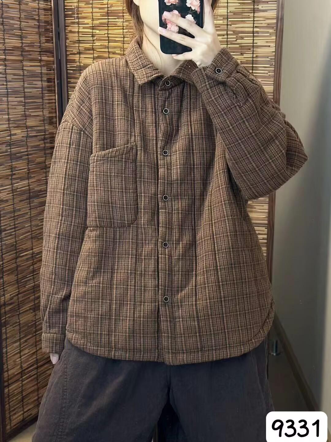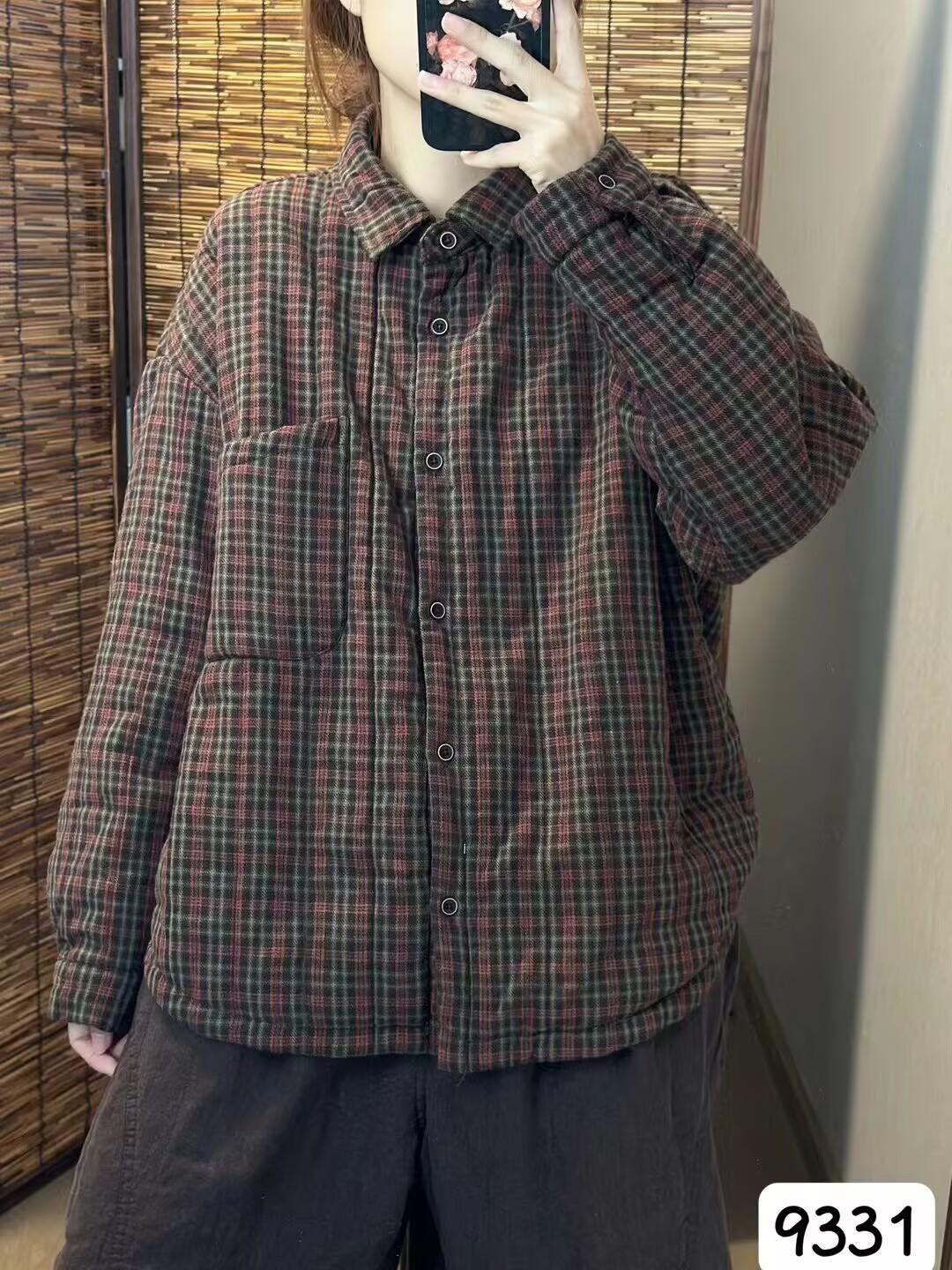 Abrigo acolchado de algodón a cuadros para mujer, chaqueta cálida de invierno, estilo retro, artístico, holgada, informal, ajustada, de algodón acolchado 9331