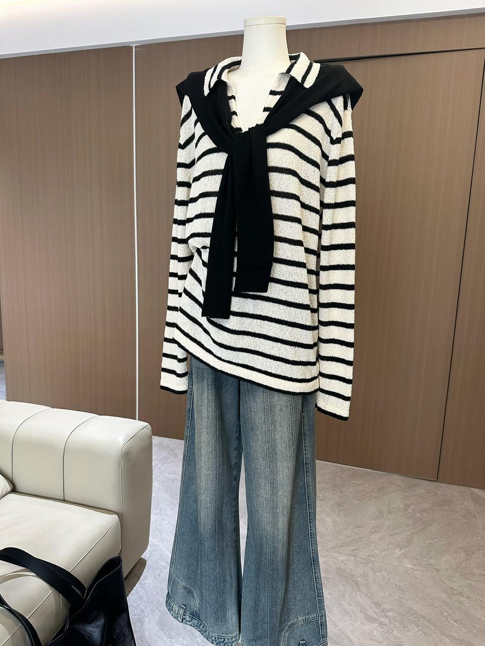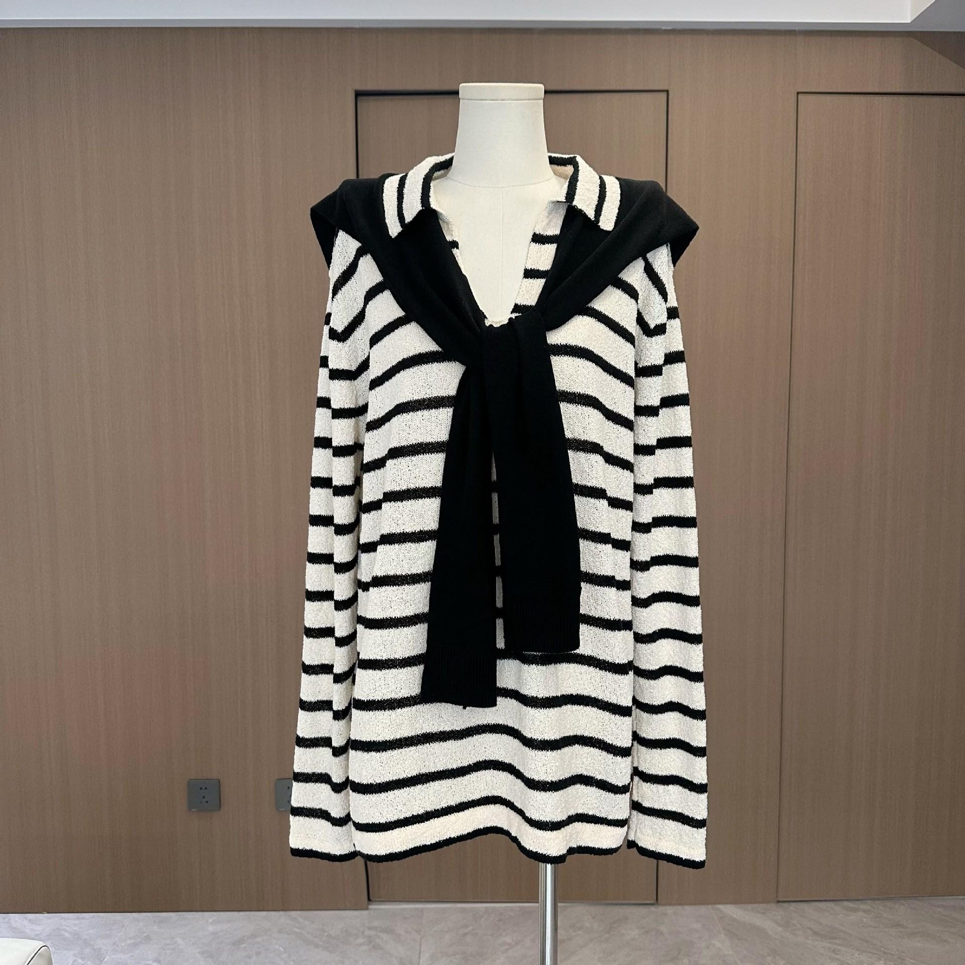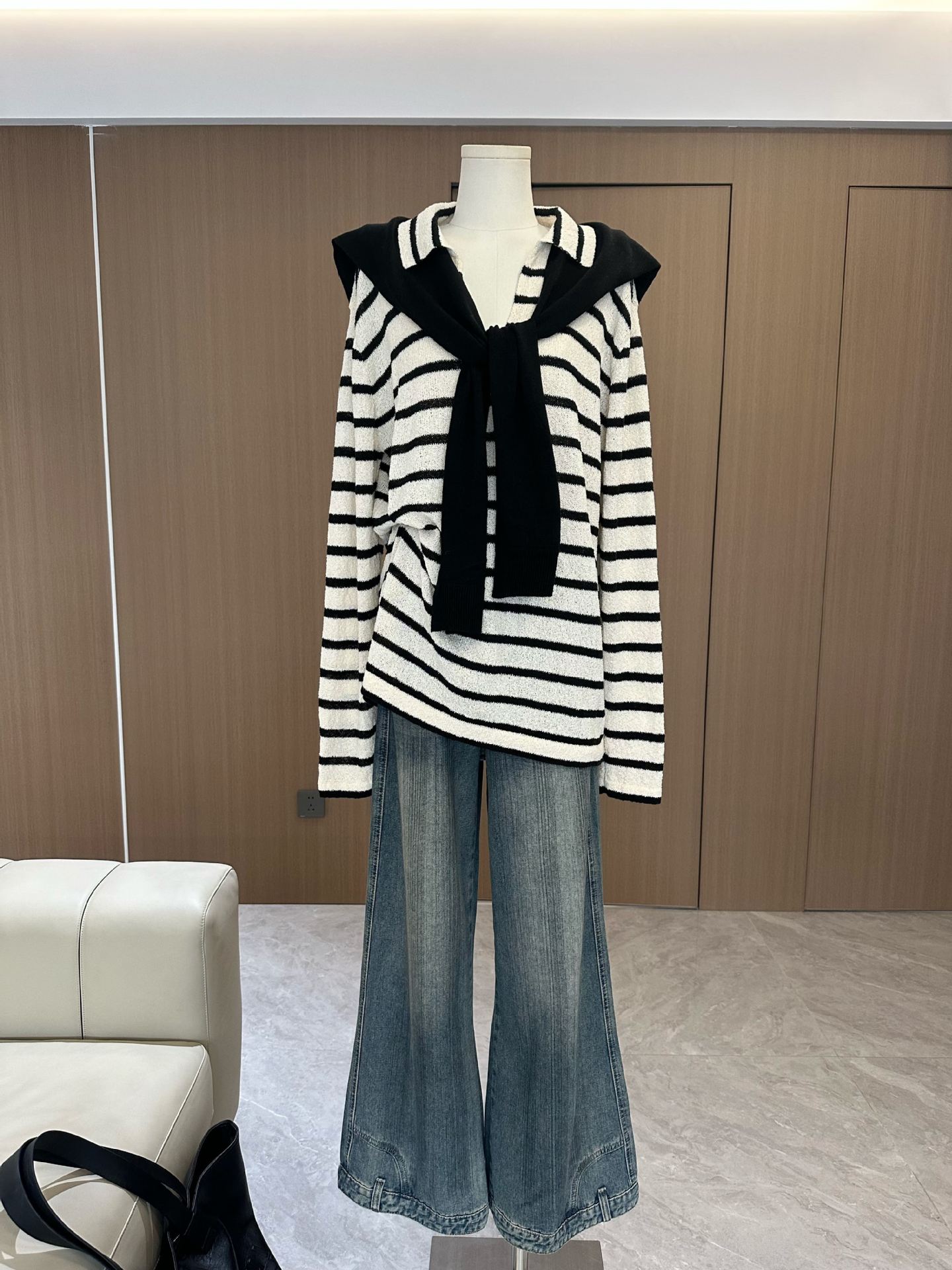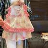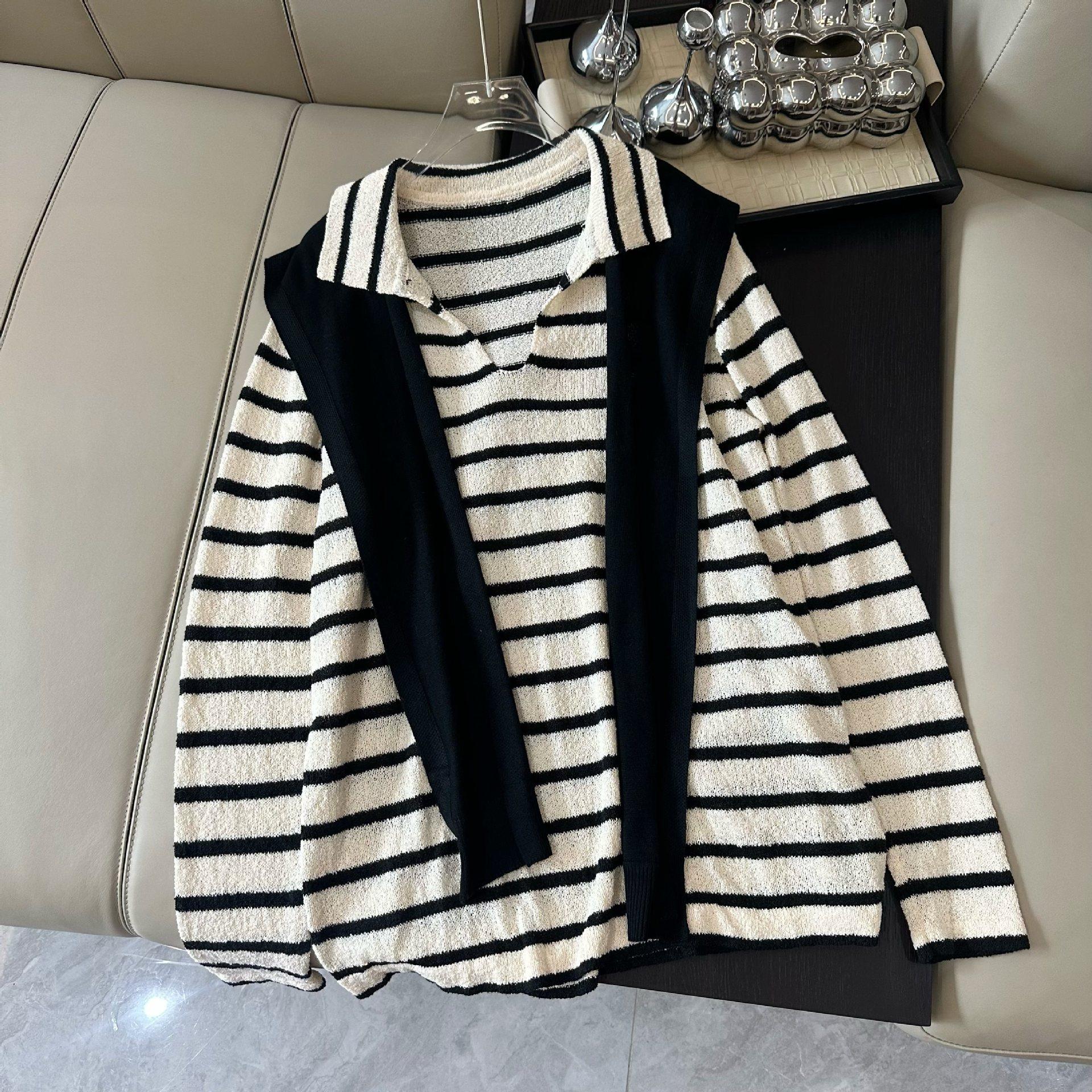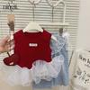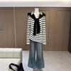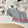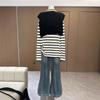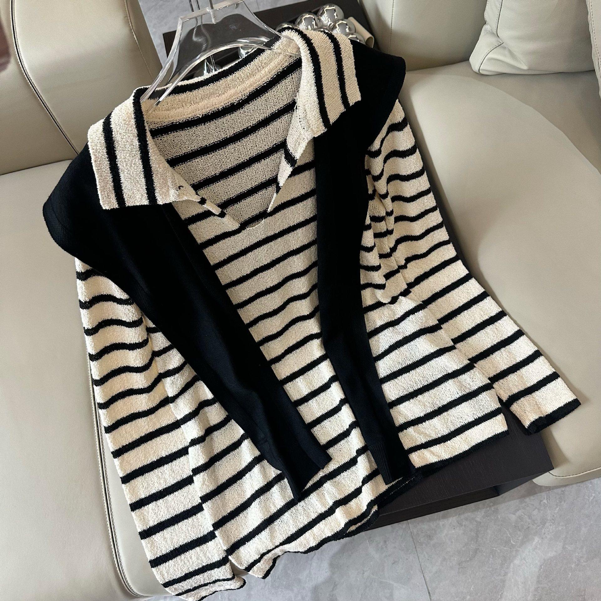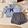 Traje de dos piezas de malla para niña con top a rayas, camiseta y chal
