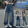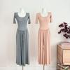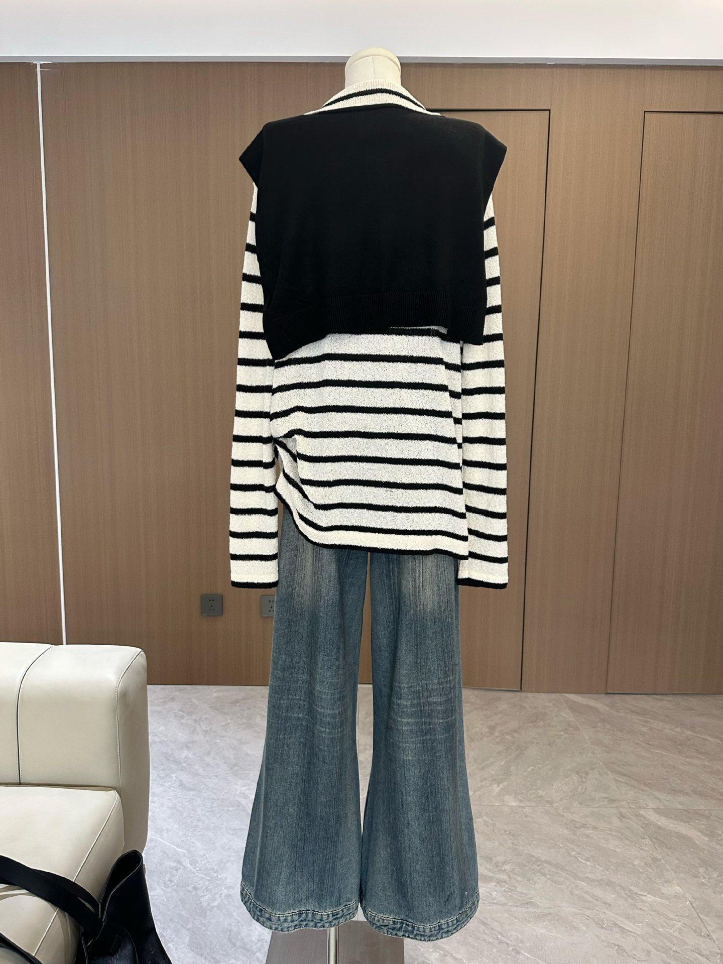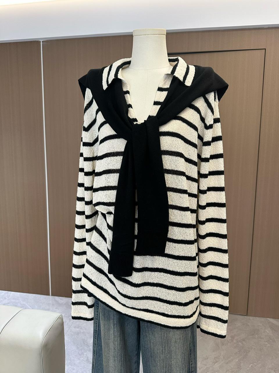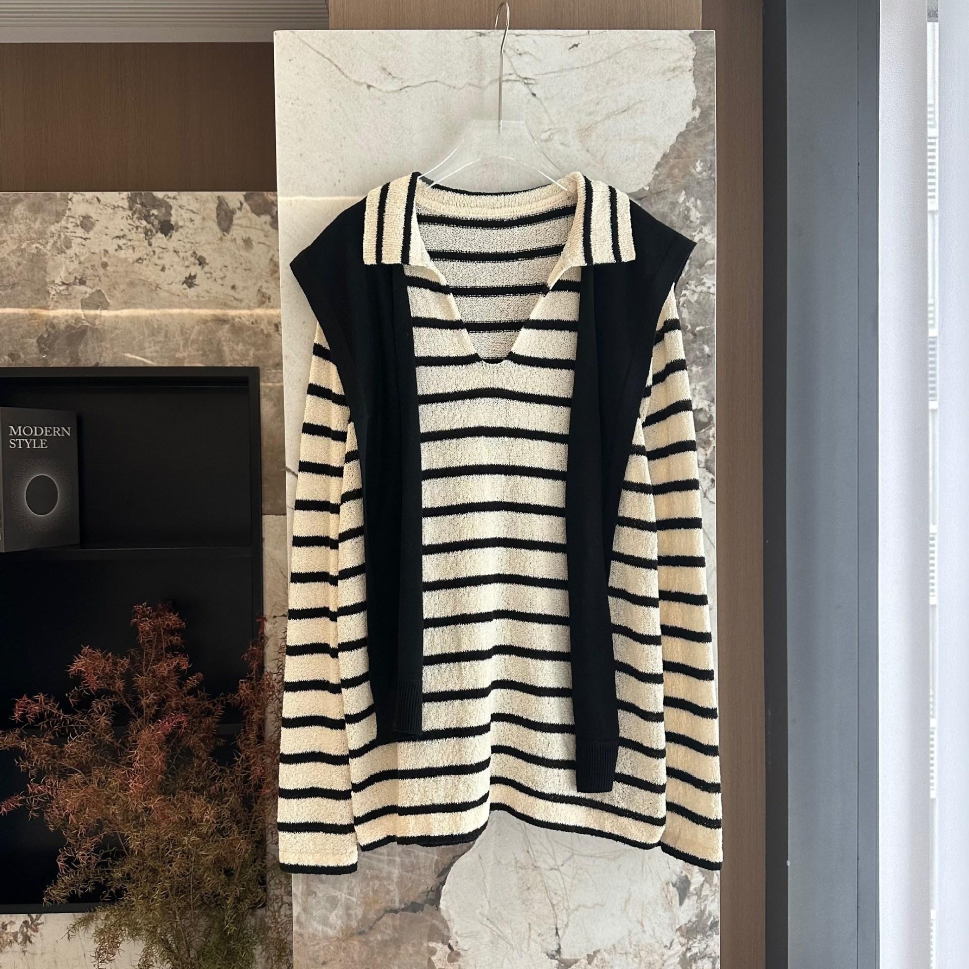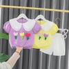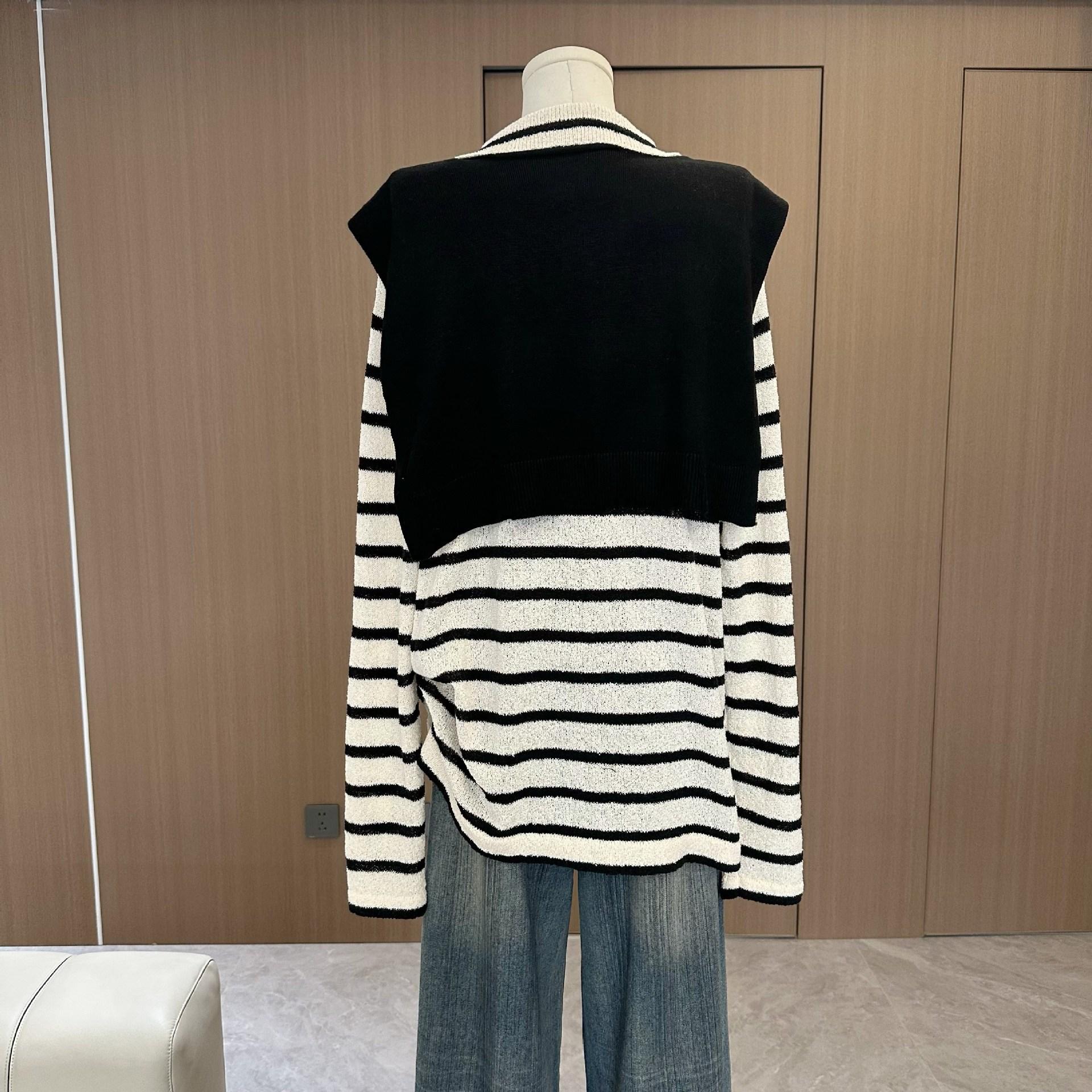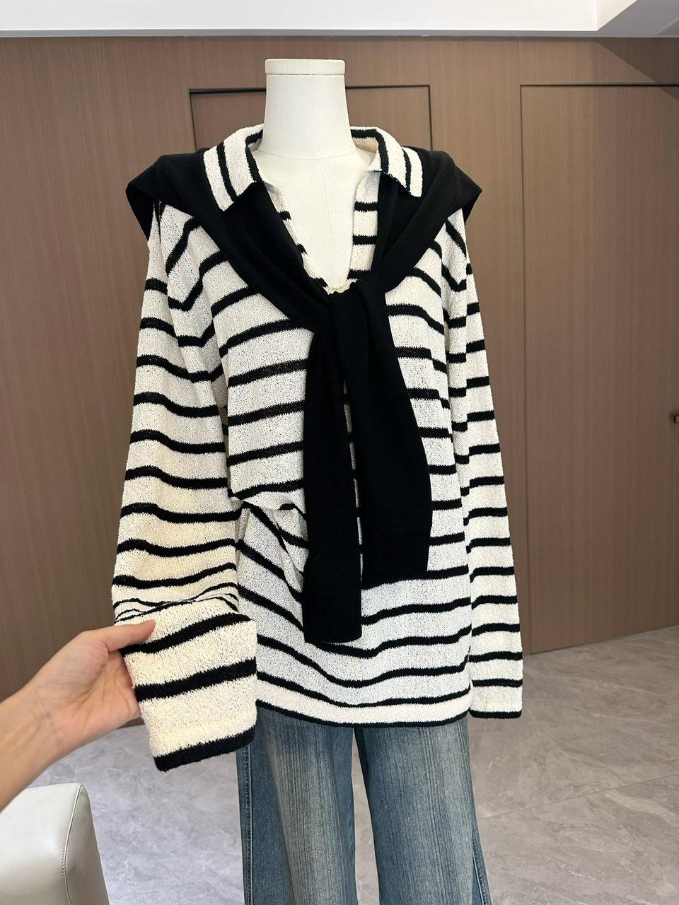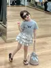 Traje de dos piezas de malla para niña con top a rayas, camiseta y chal