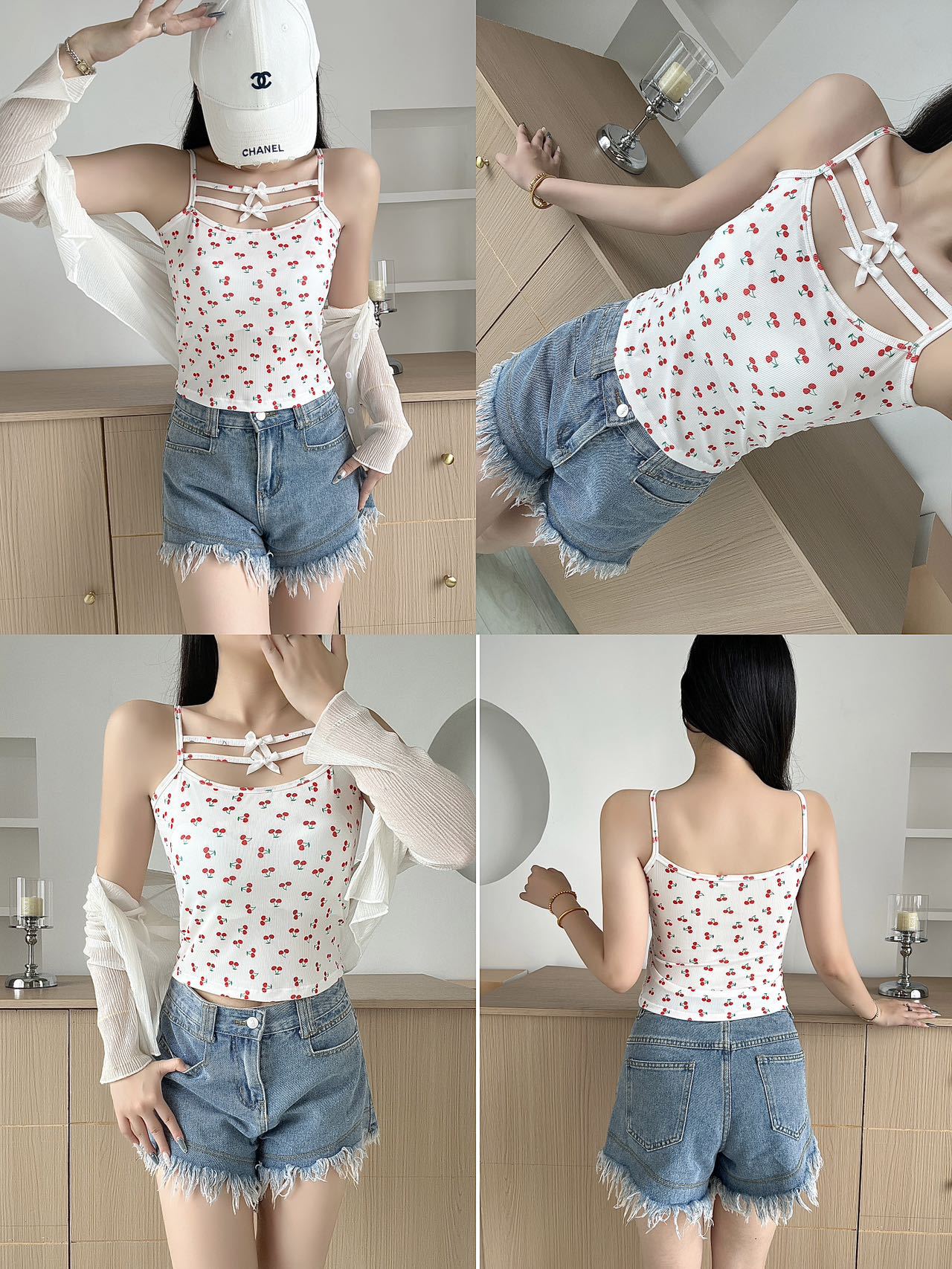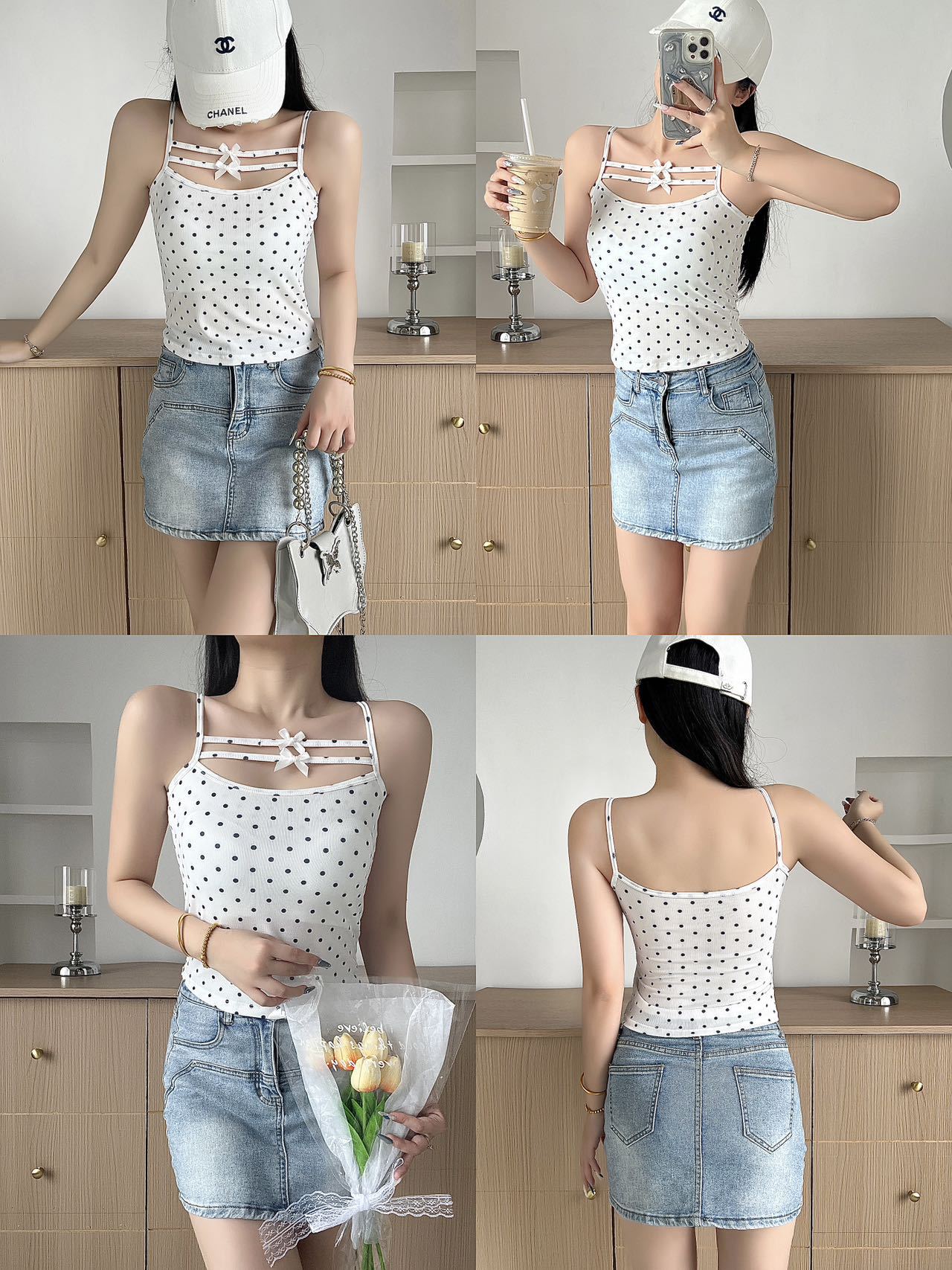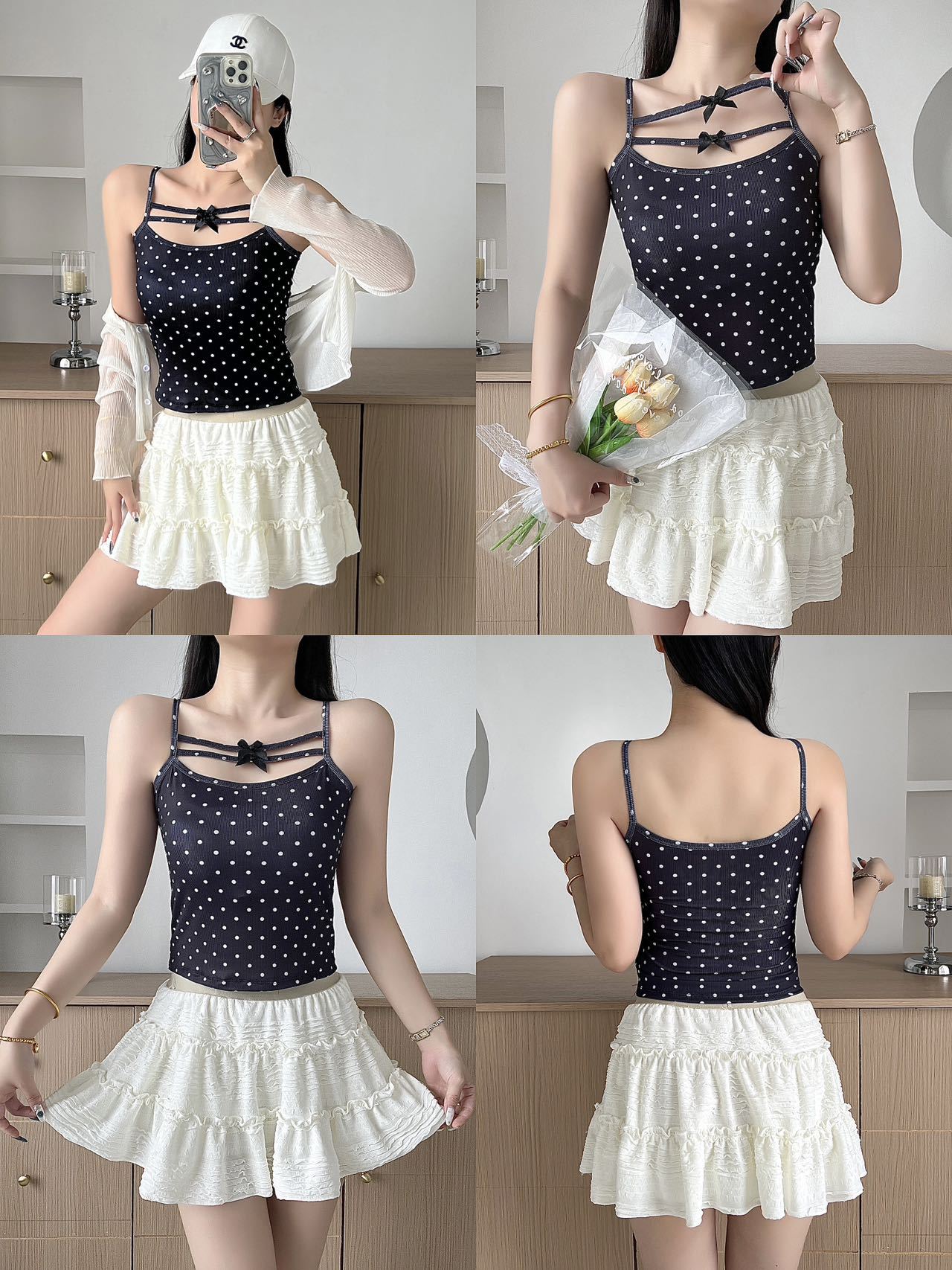Camisola de verano con lazo de encaje floral sexy de Pure Lust para mujer, top interior de aspecto adelgazante a la moda