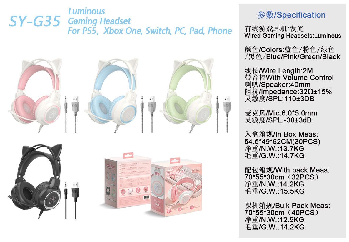 Compra Auriculares E-Sports de Orejas de Gato Transfronterizos Auriculares Dedicados para Estudiantes de Computadora Montados en la Cabeza con Micrófono Alámbricos Juego Fábrica Mayorista al por mayor en Joom.pro