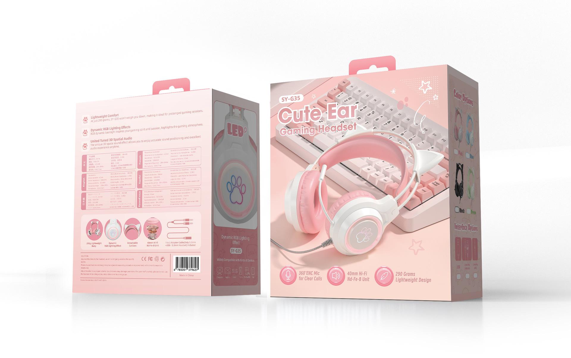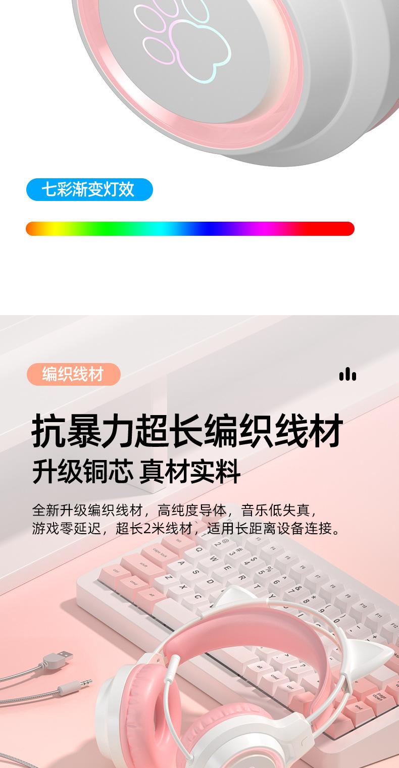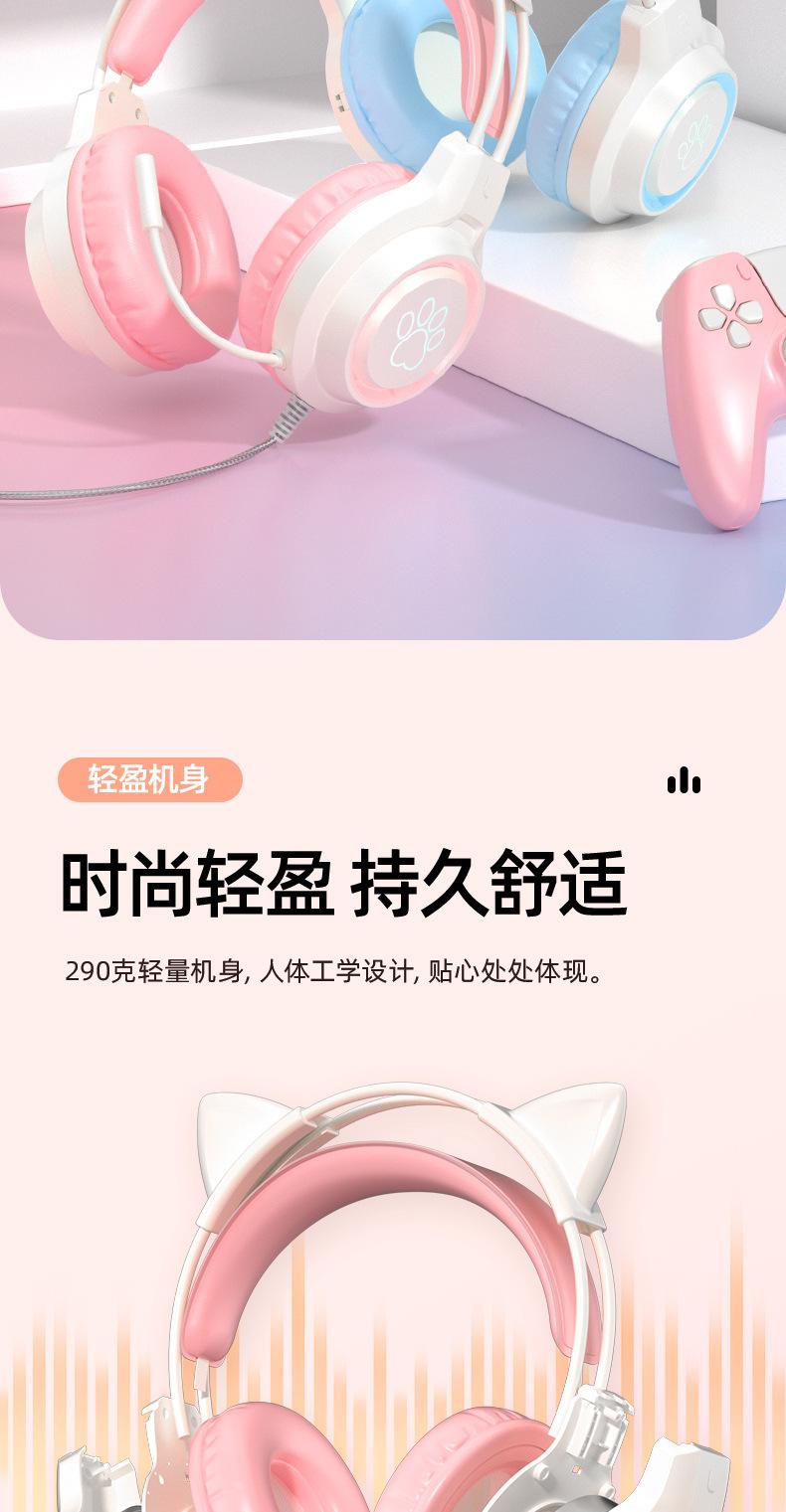 Auriculares E-Sports de Orejas de Gato Transfronterizos Auriculares Dedicados para Estudiantes de Computadora Montados en la Cabeza con Micrófono Alámbricos Juego Fábrica Mayorista