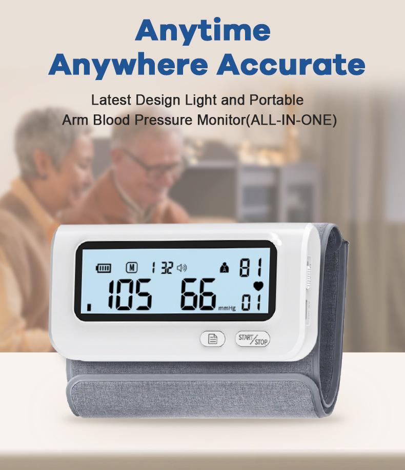 Esfigmomanómetro electrónico de brazo para el hogar, monitor inteligente de presión arterial, pulso y frecuencia cardíaca, medidor de presión arterial integrado en el brazo.