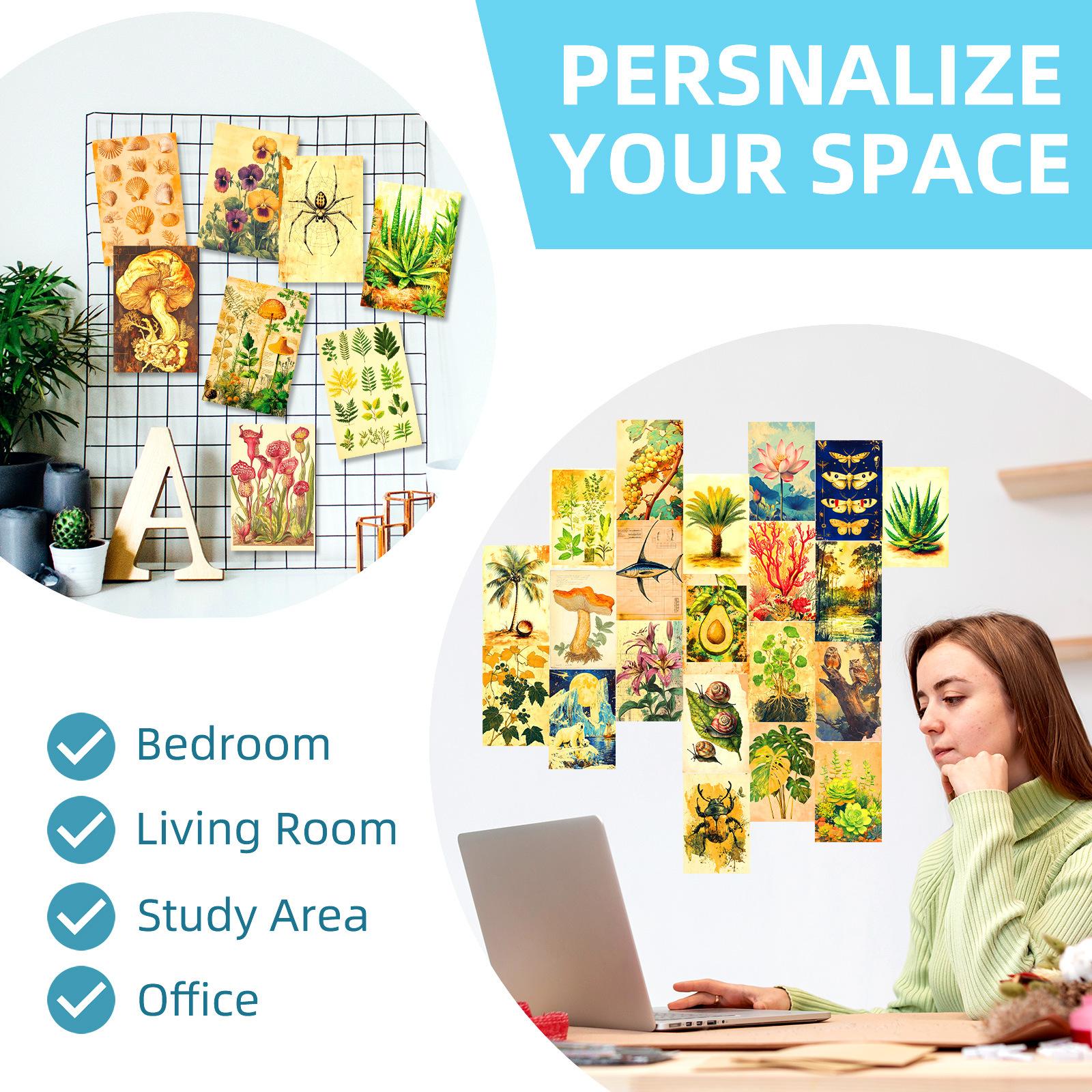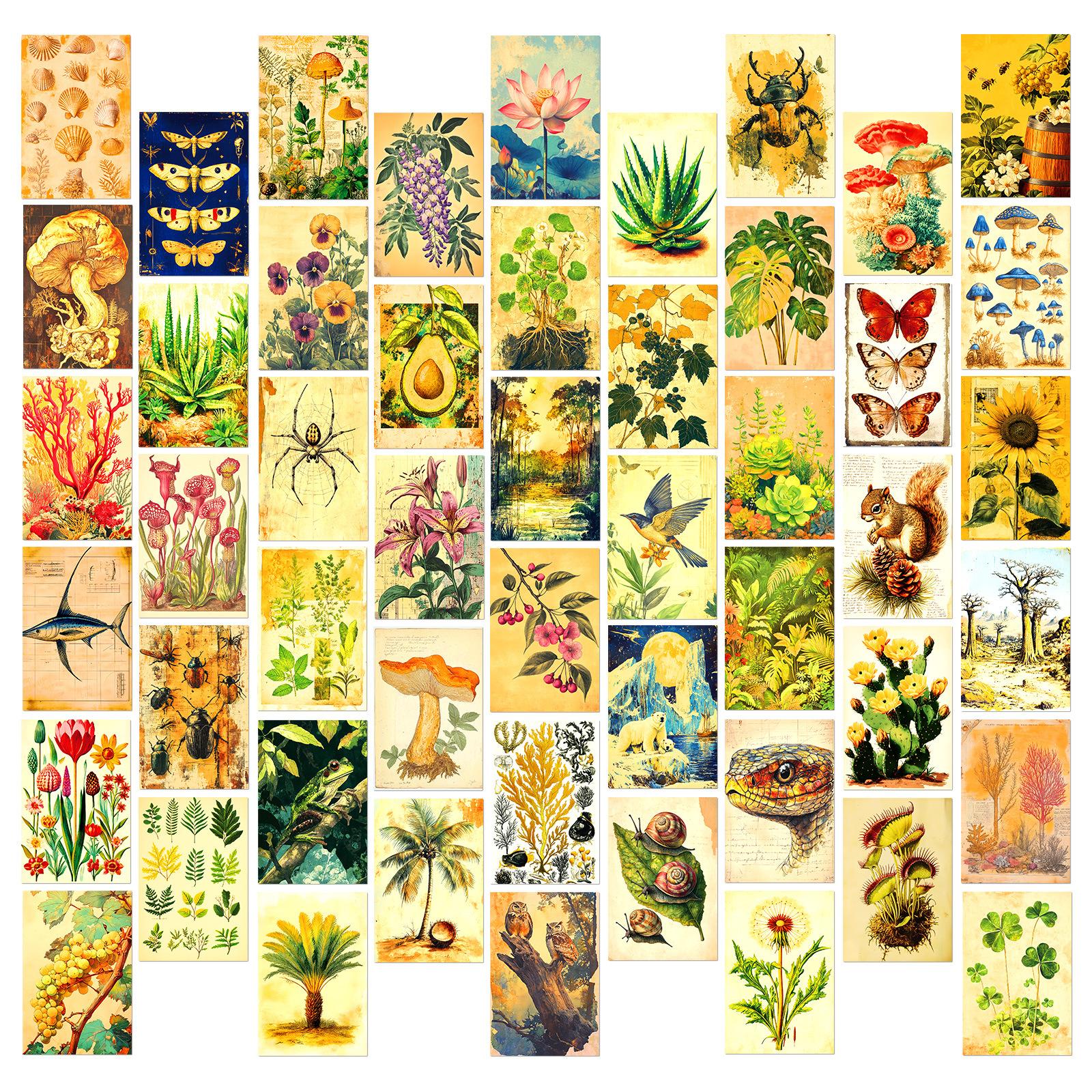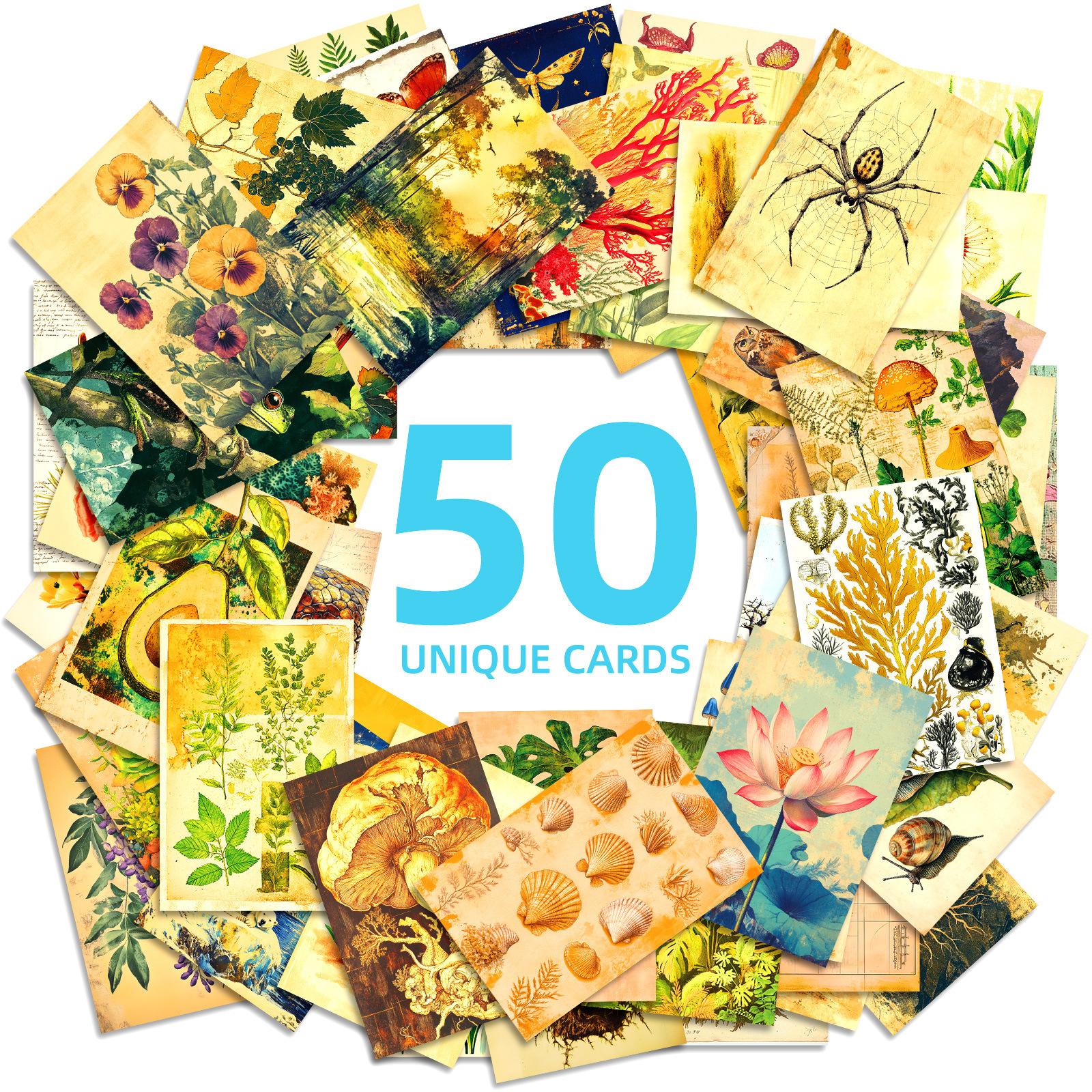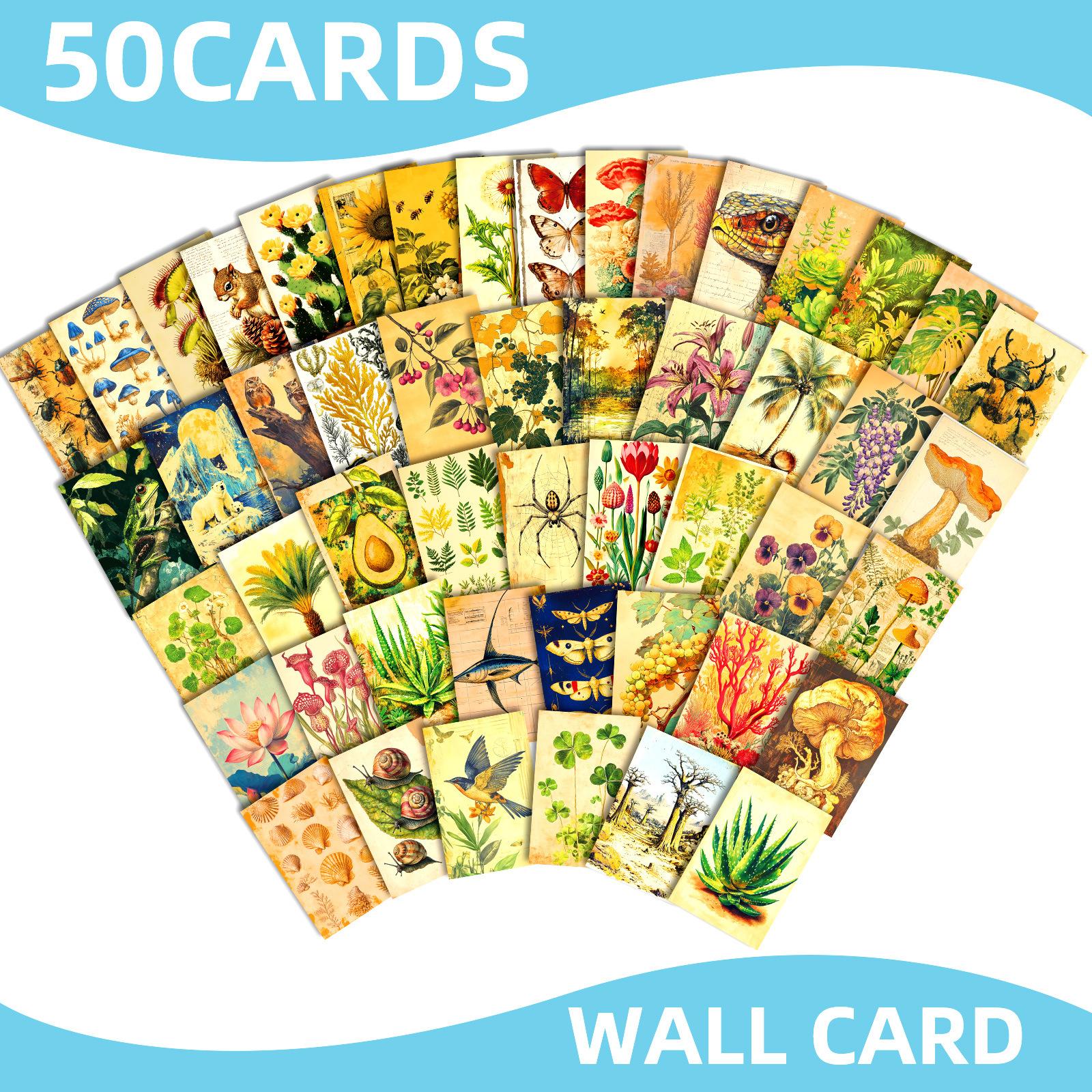 Nuevas 50 lindas tarjetas decorativas de pared con dibujos de acuarela pintadas a mano, las más vendidas en Amazon, con diseño de plantas.