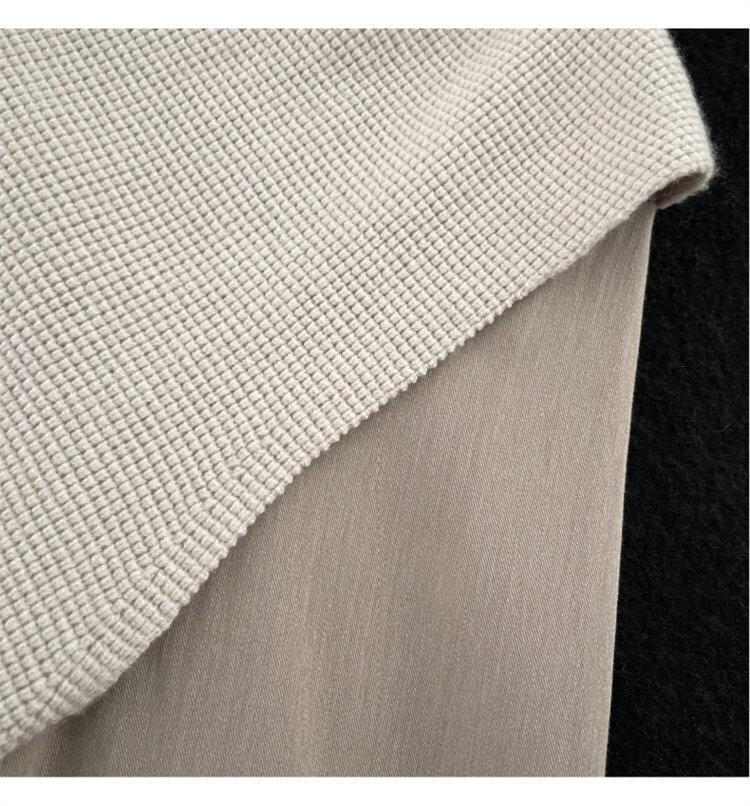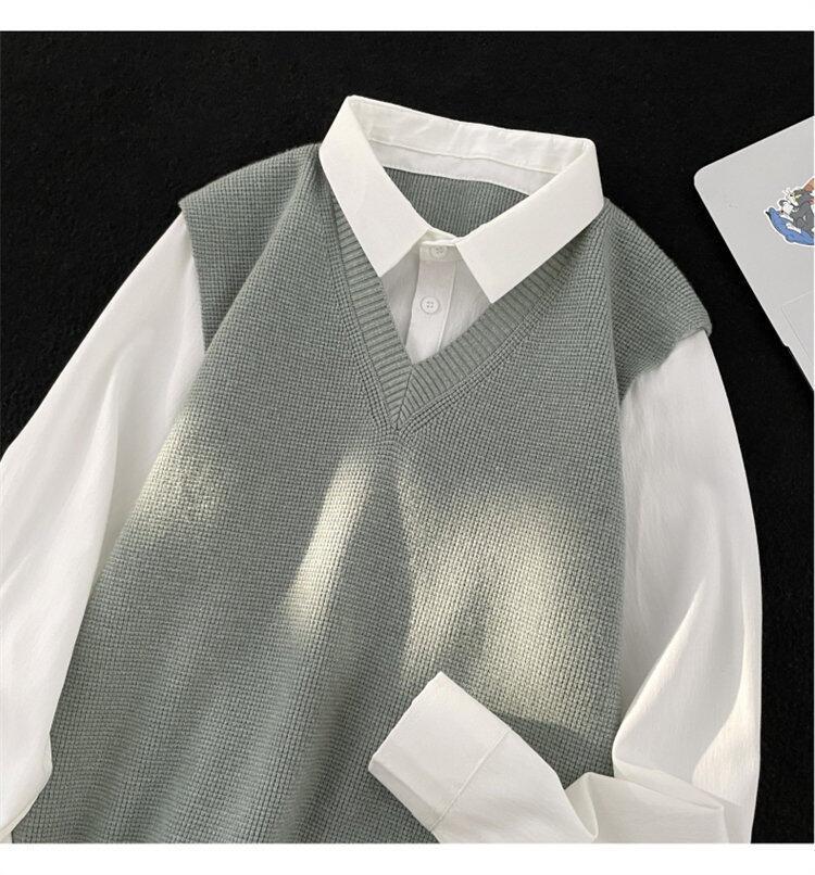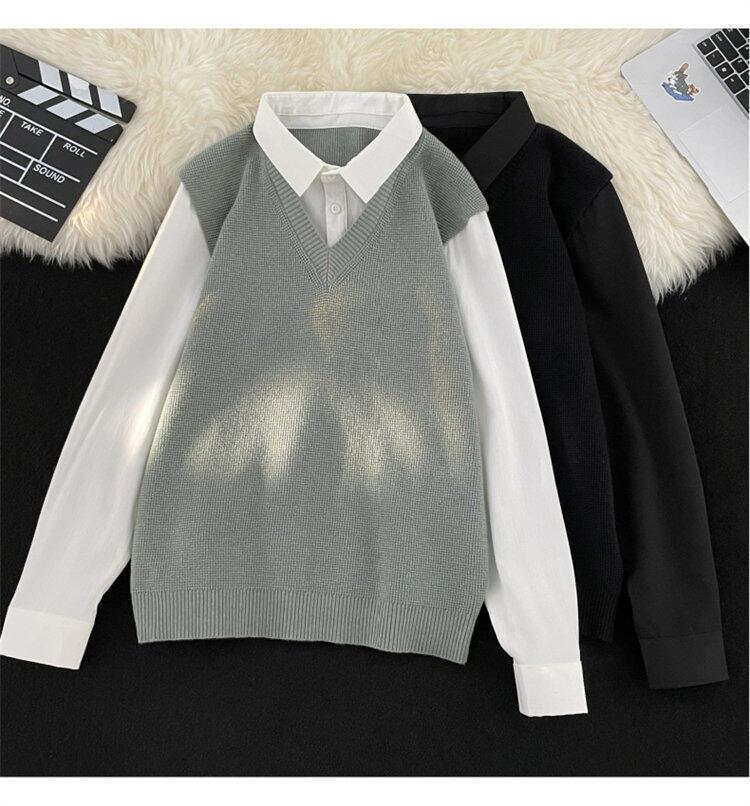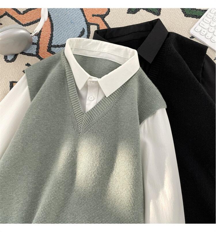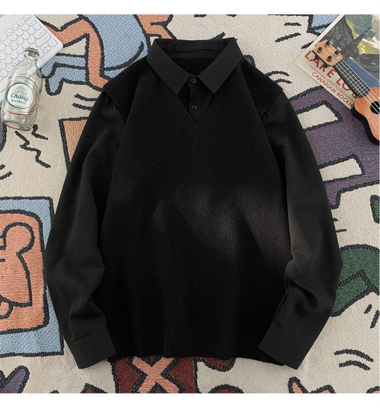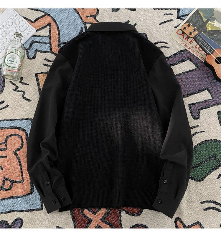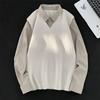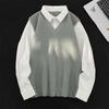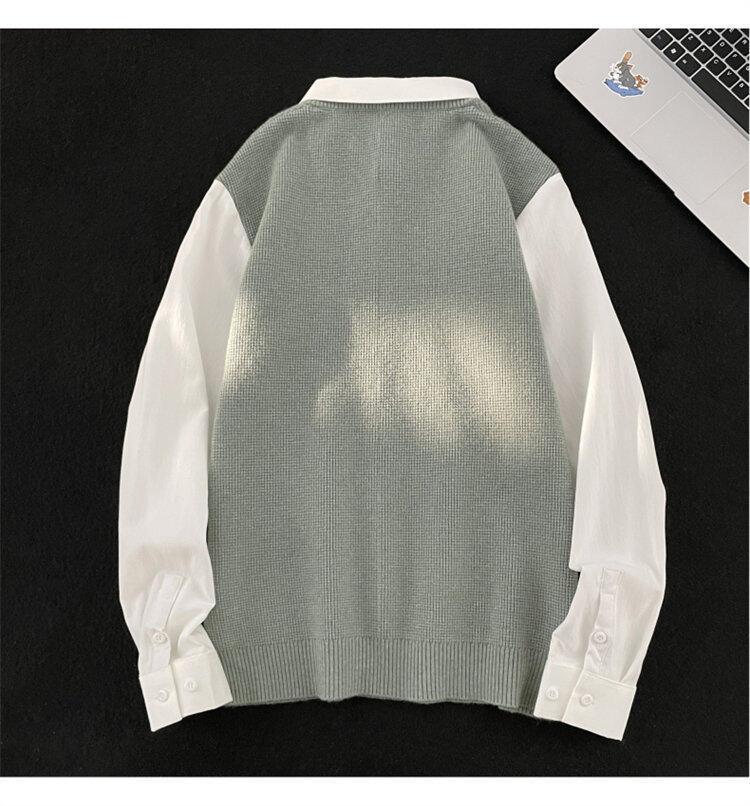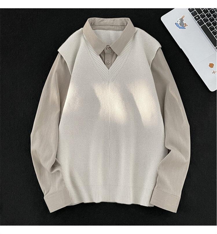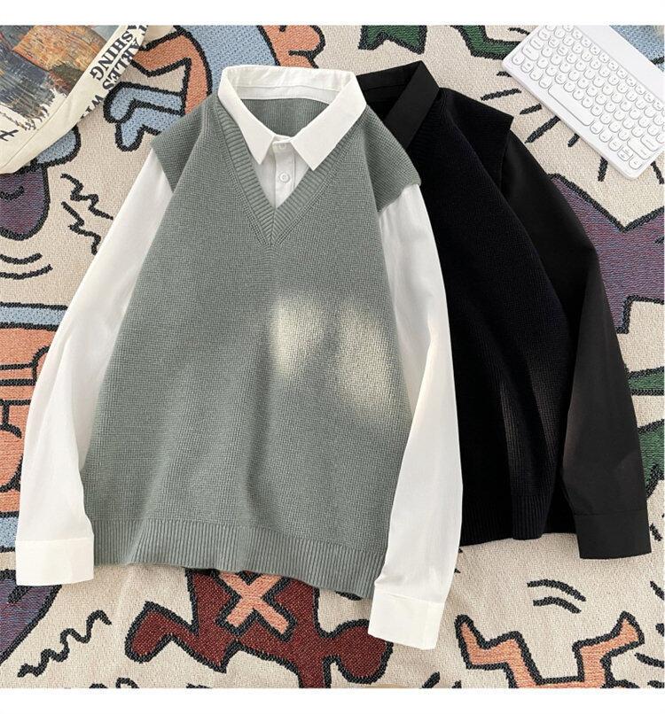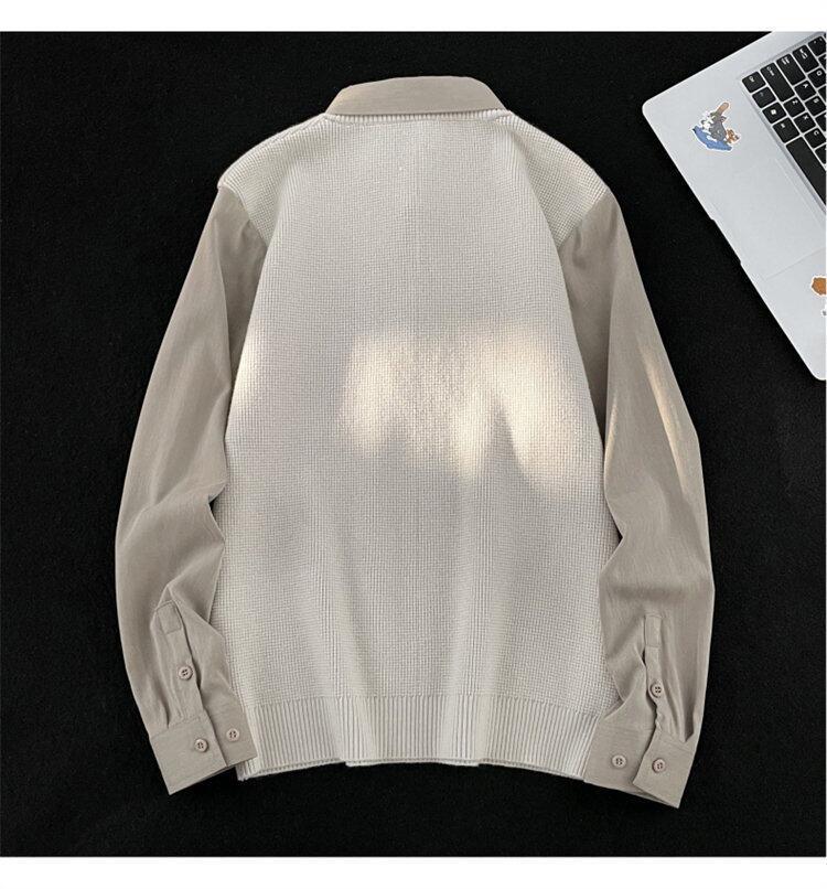 Suéter de camisa de manga larga de dos piezas falso para hombre, otoño e invierno, nuevo estilo perezoso, suéter de punto de moda que combina con todo.