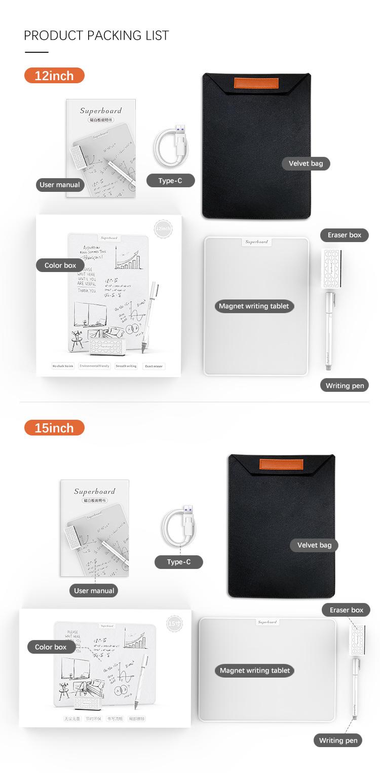 12-inch (mechanical eraser), 12-inch (electric version wipe), 15-inch (mechanical eraser), 15-inch (electric version wipe)