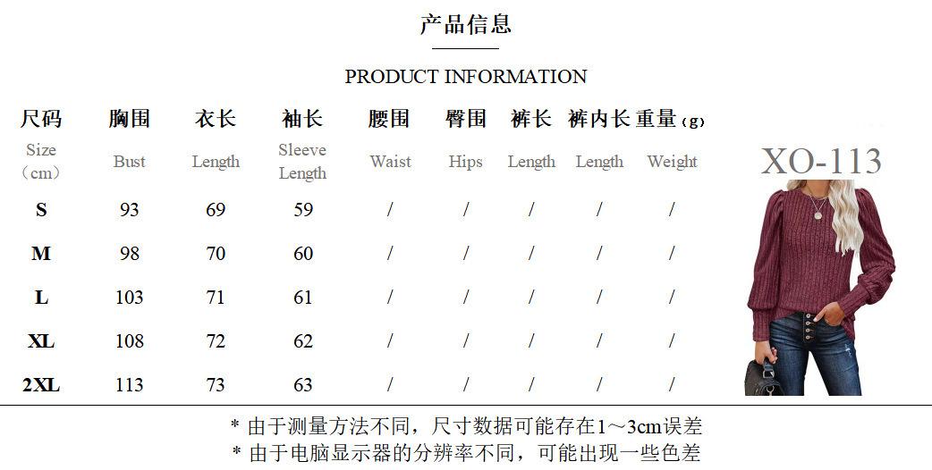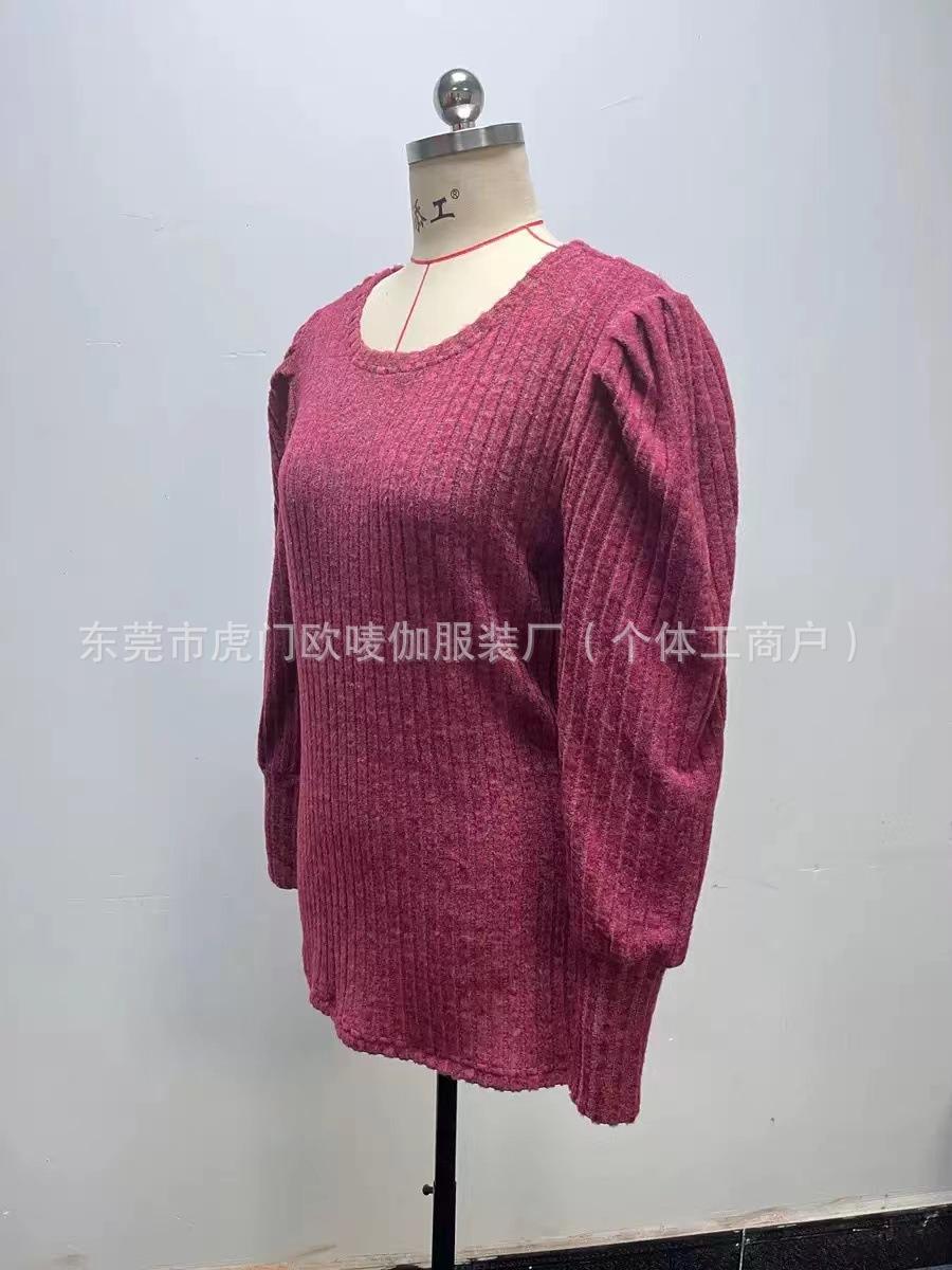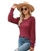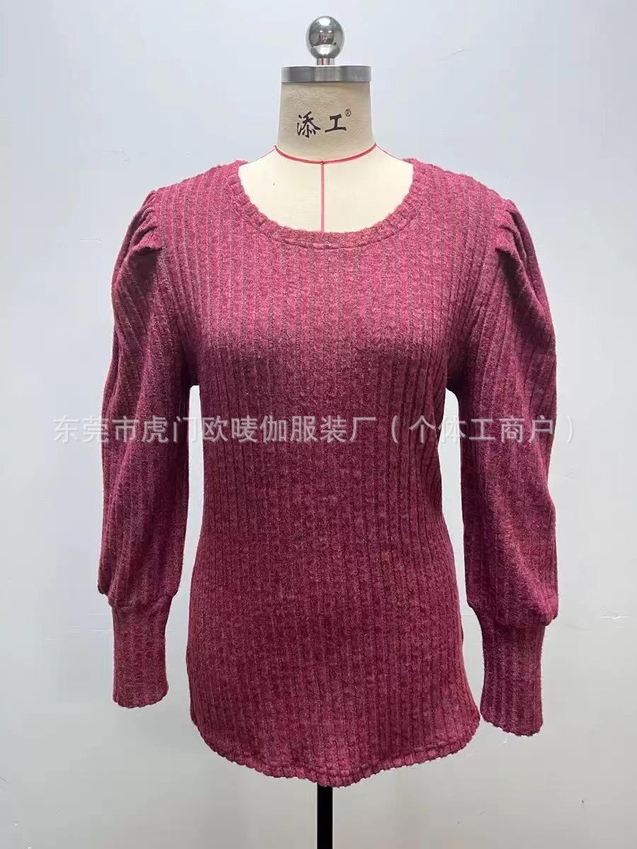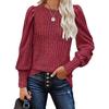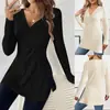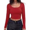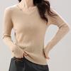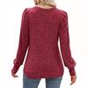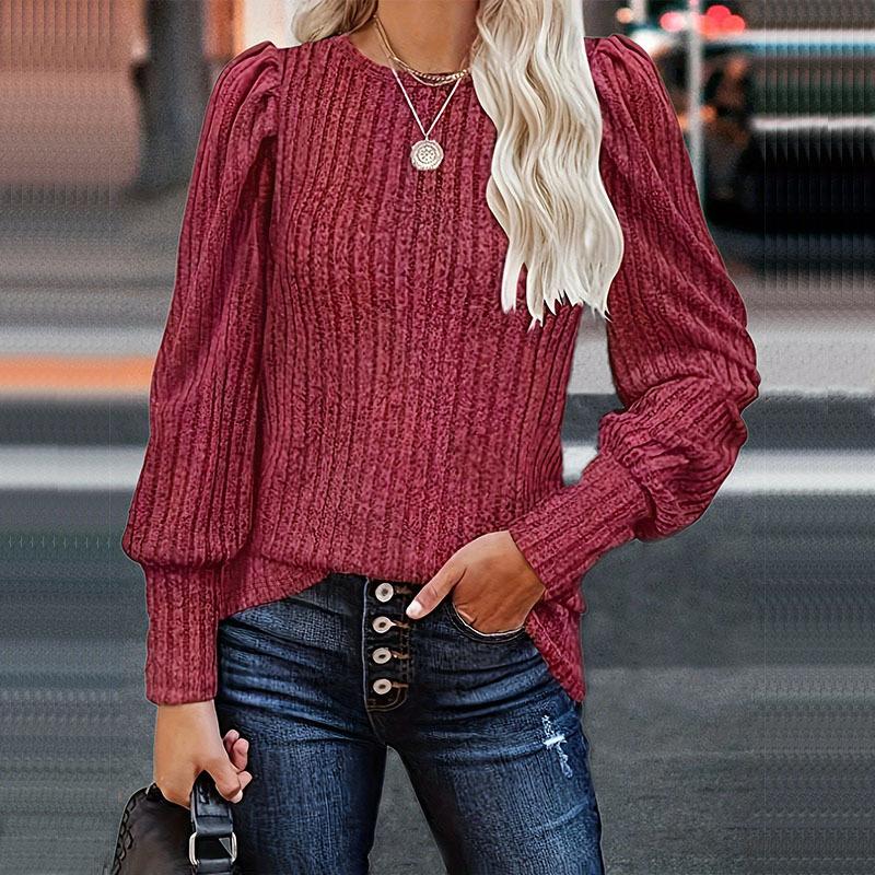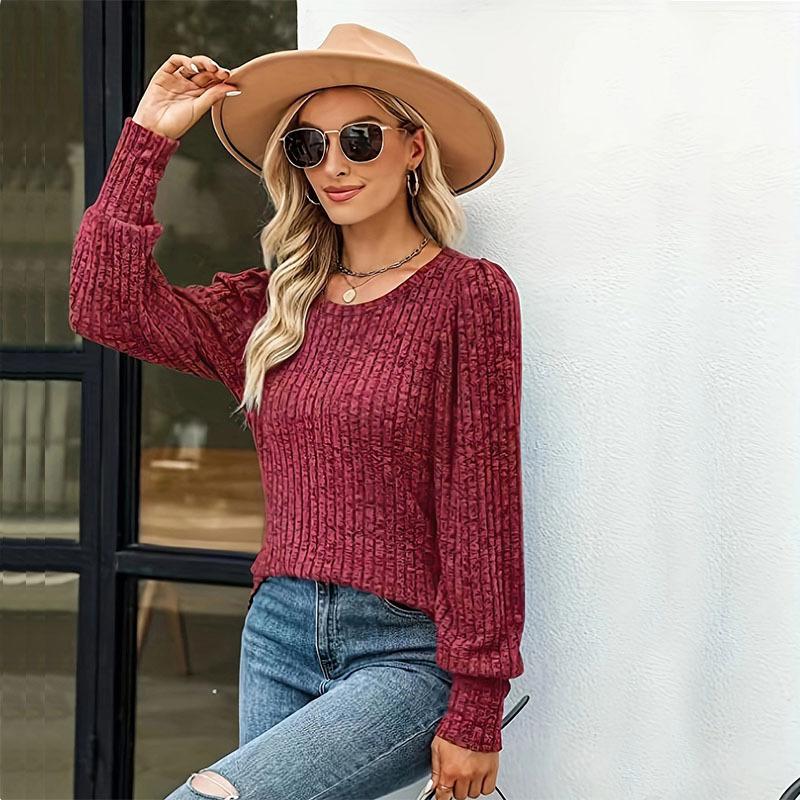 Camiseta de Manga Larga de Punto Acanalado Cepillado de Color Sólido con Cuello Redondo para Mujer, Elegante y Adecuada para Ir al Trabajo