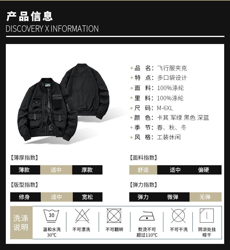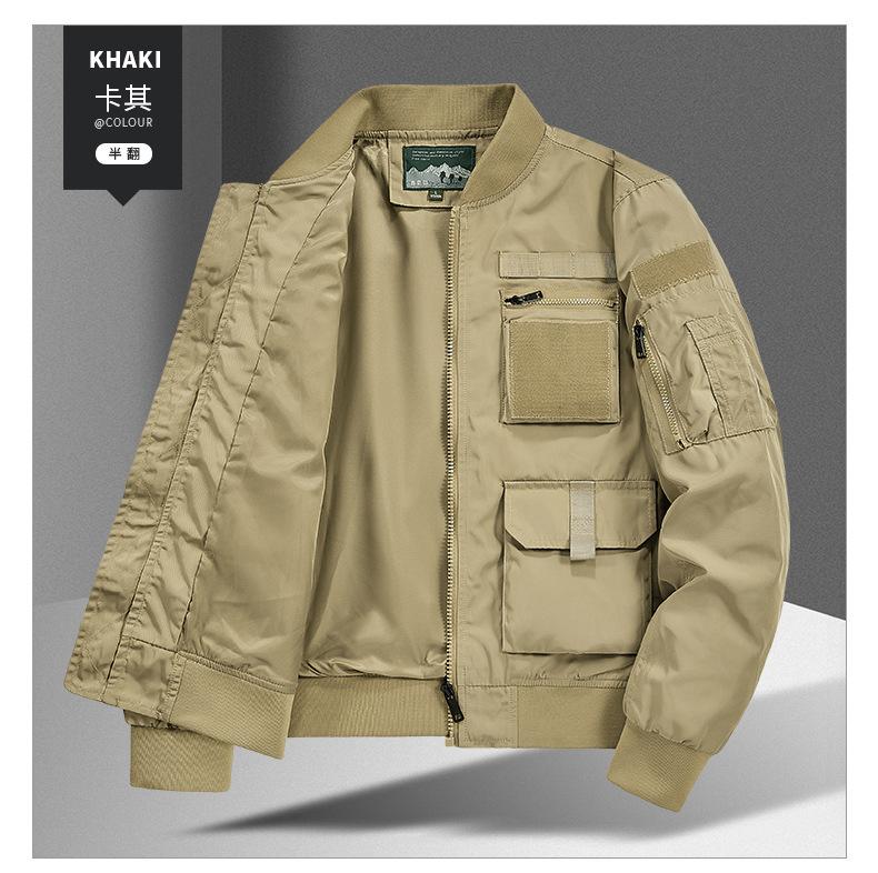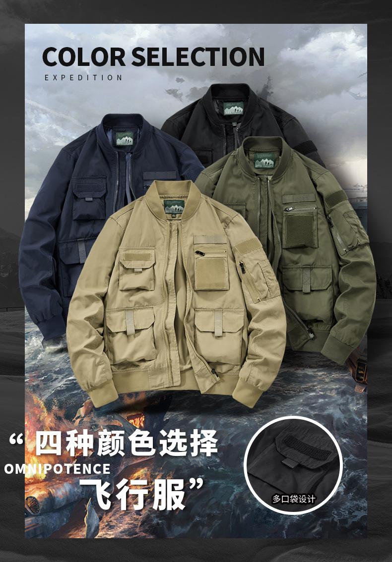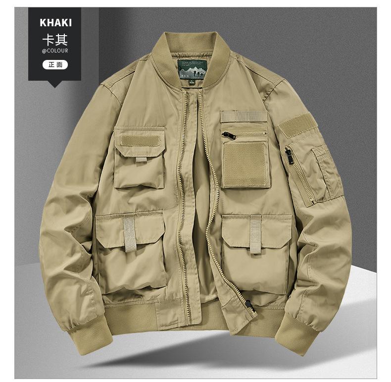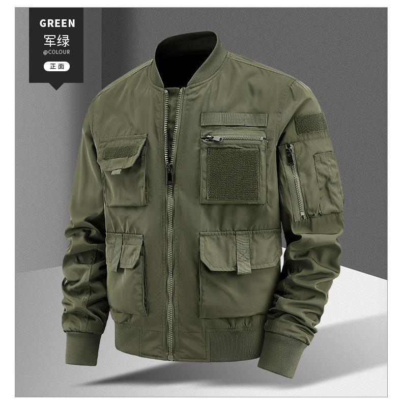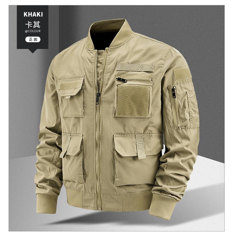 Chaqueta Bomber para Hombre Joven Traje de Béisbol para Hombre Chaqueta Funcional Multibolsillos Chaqueta Europea y Americana a Prueba de Tres Ropa de Trabajo 8810