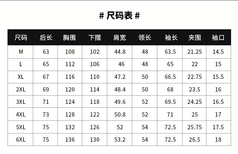 M, L, XL, 2XL, 3XL, 4XL, 5XL, 6XL