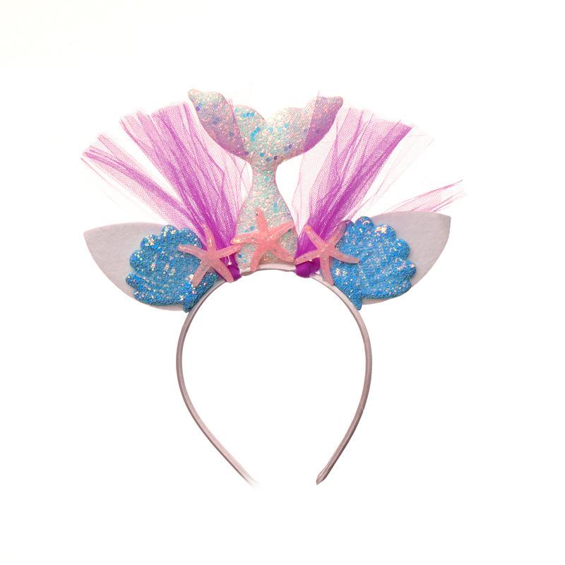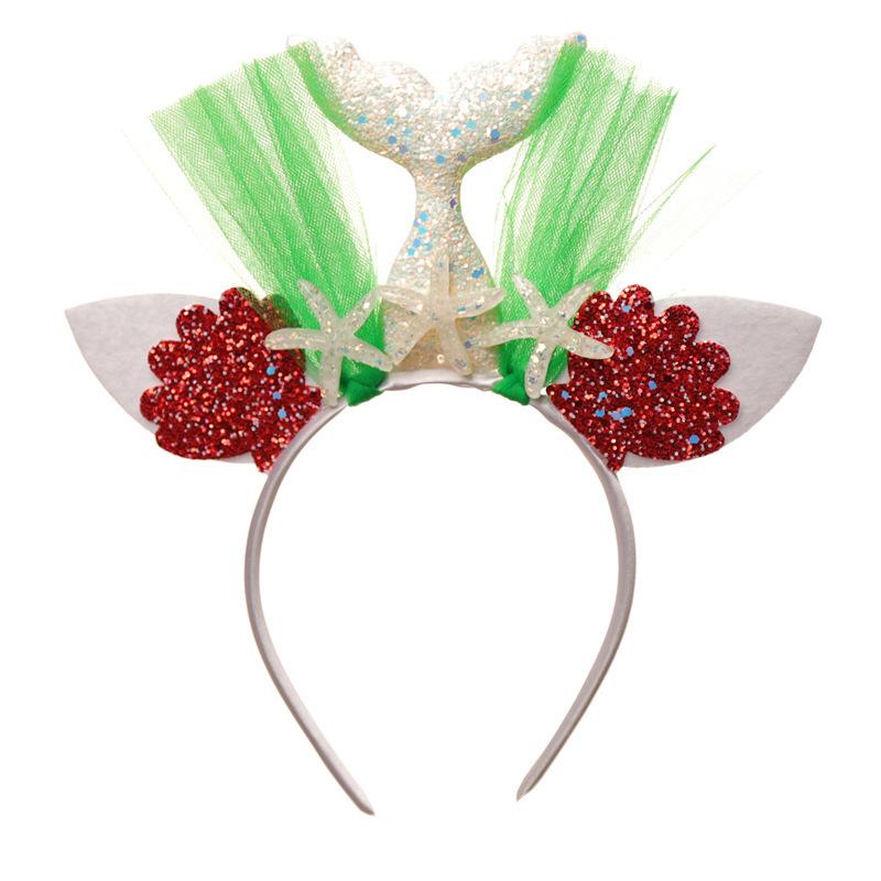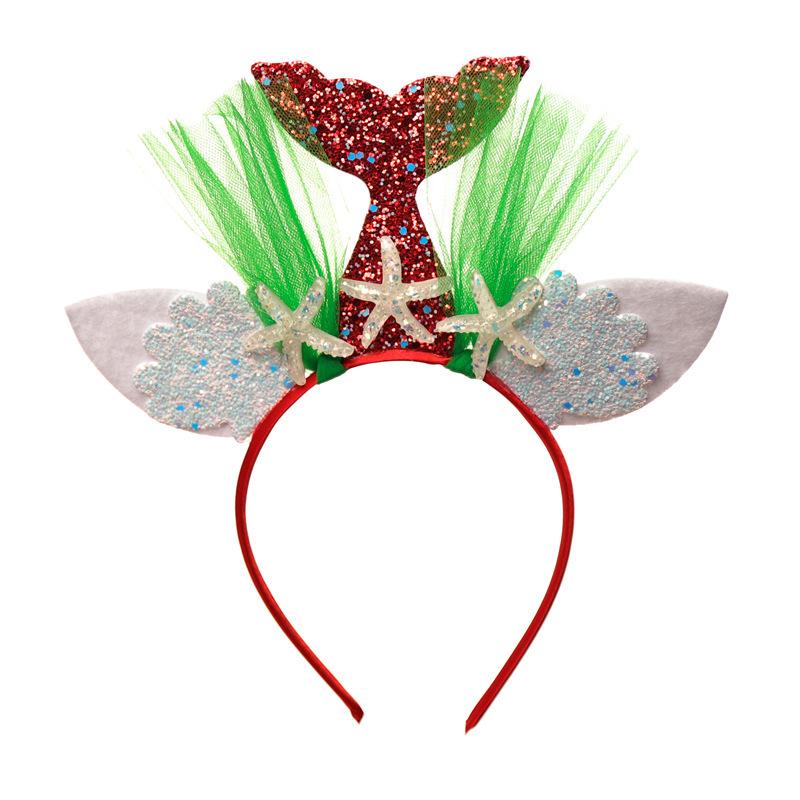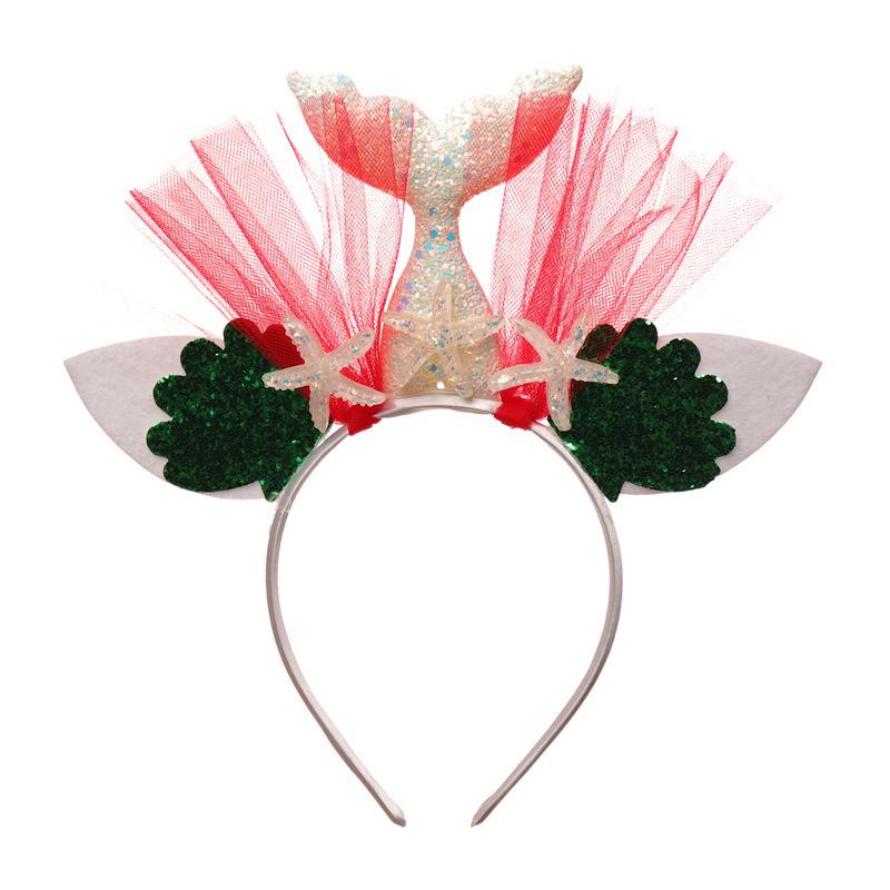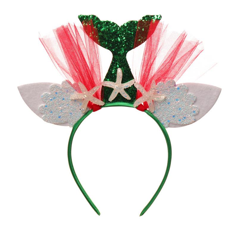 Diadema de malla con cola de sirena colorida para niños, tocado para fiestas navideñas, tocado de sirena con estrella de mar, horquilla de princesa