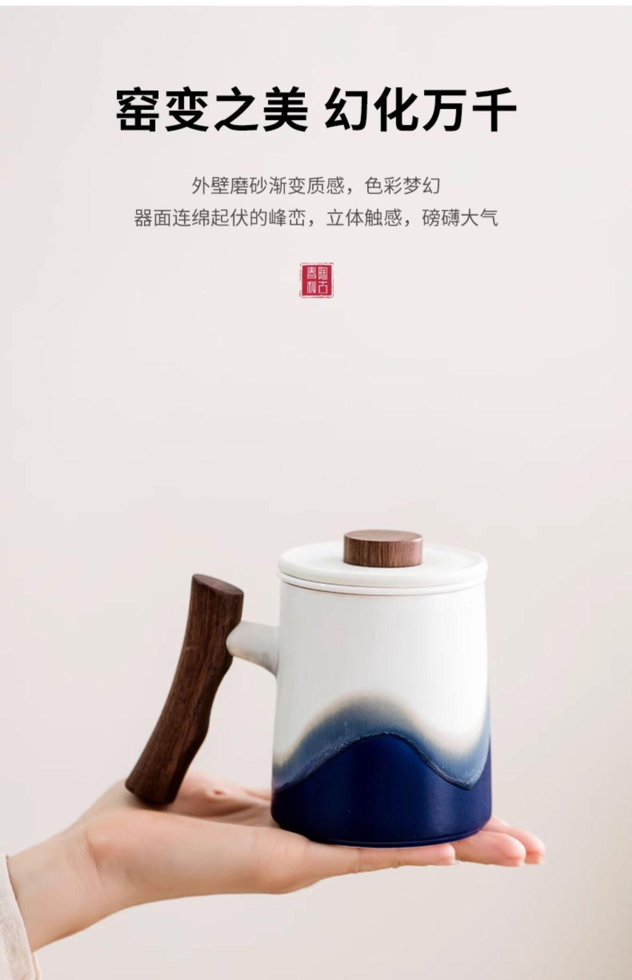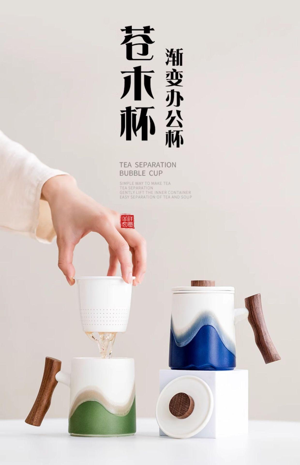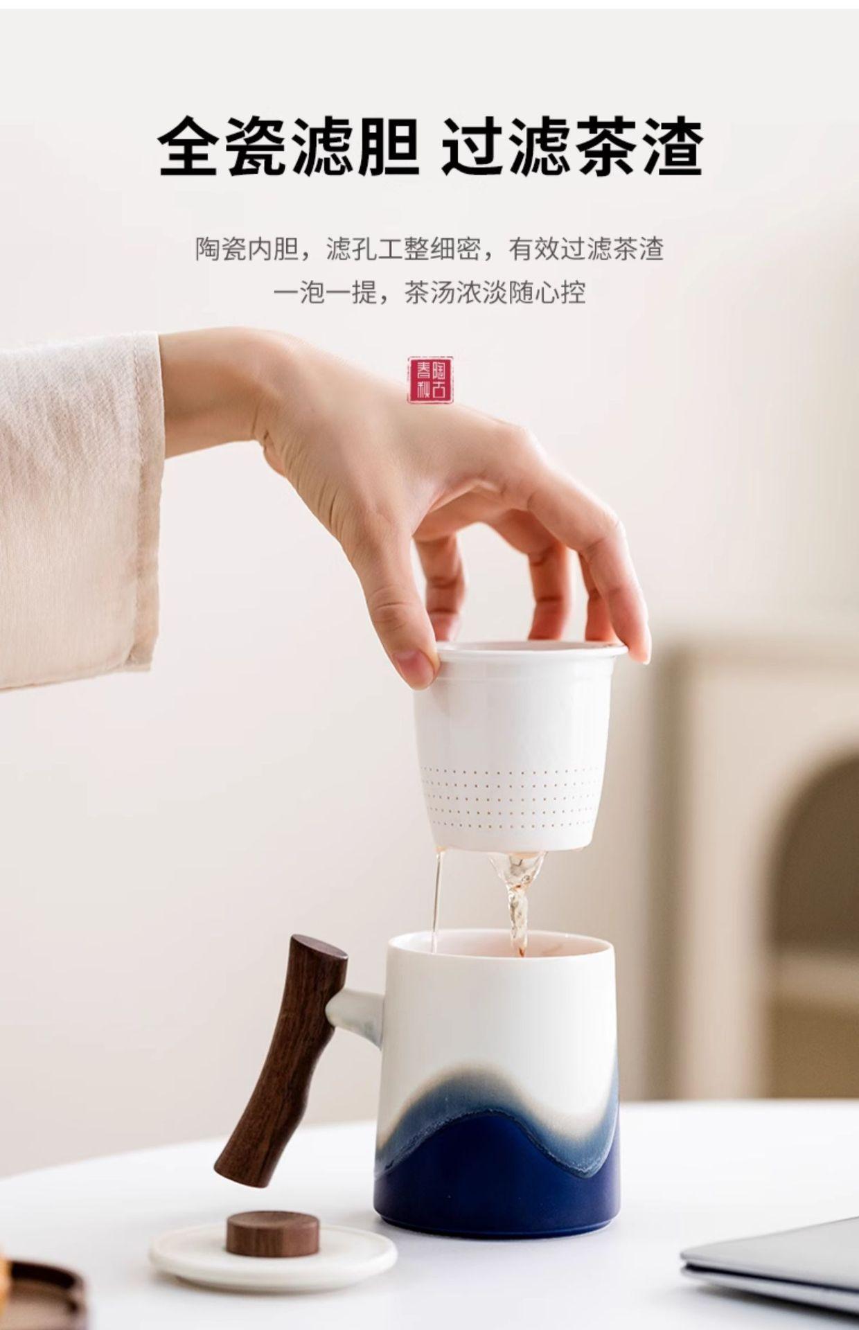 Taza de té de cerámica, taza de separación de té, taza de oficina con gradiente personal y filtro de tapa, taza de impresión