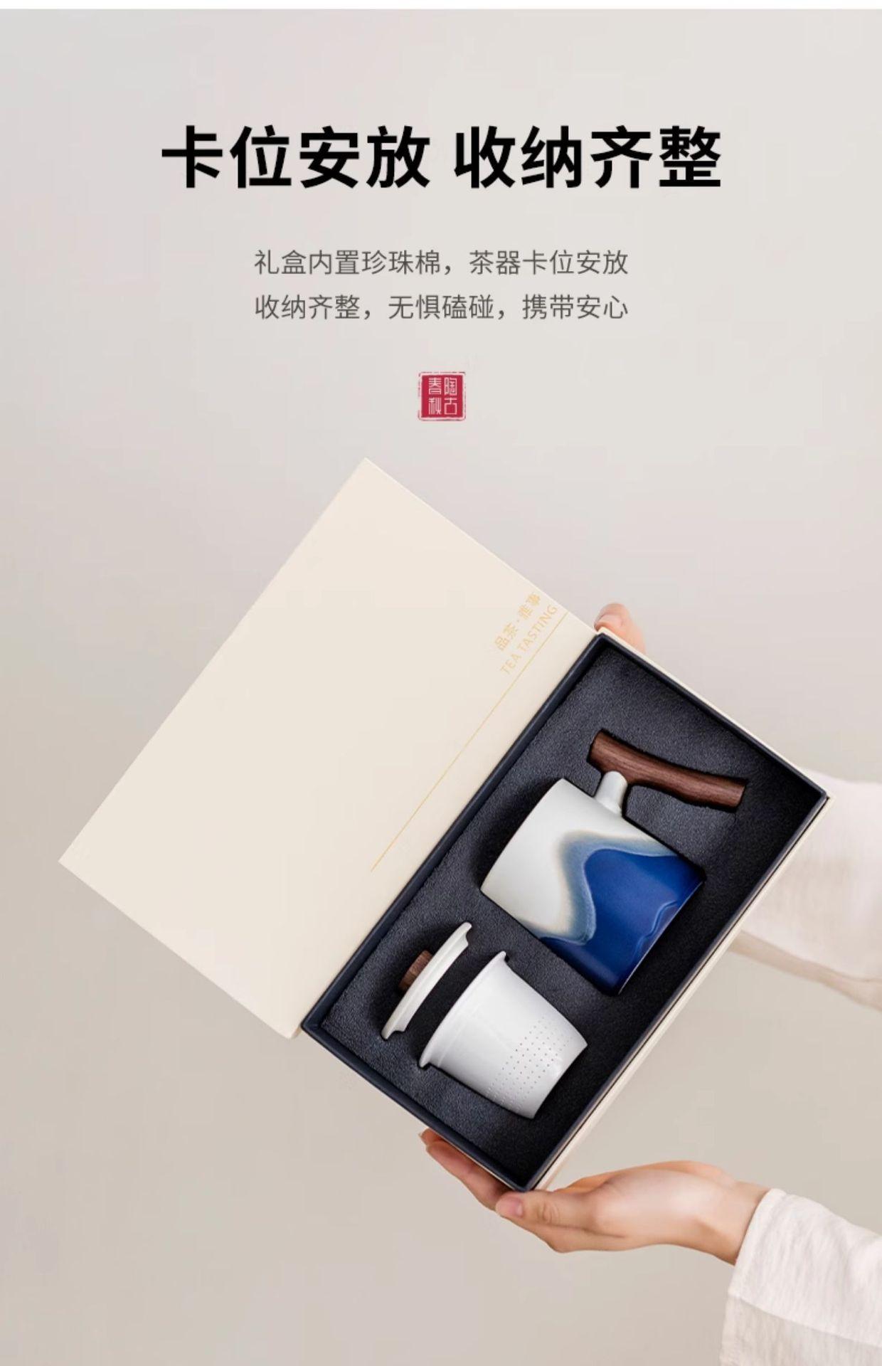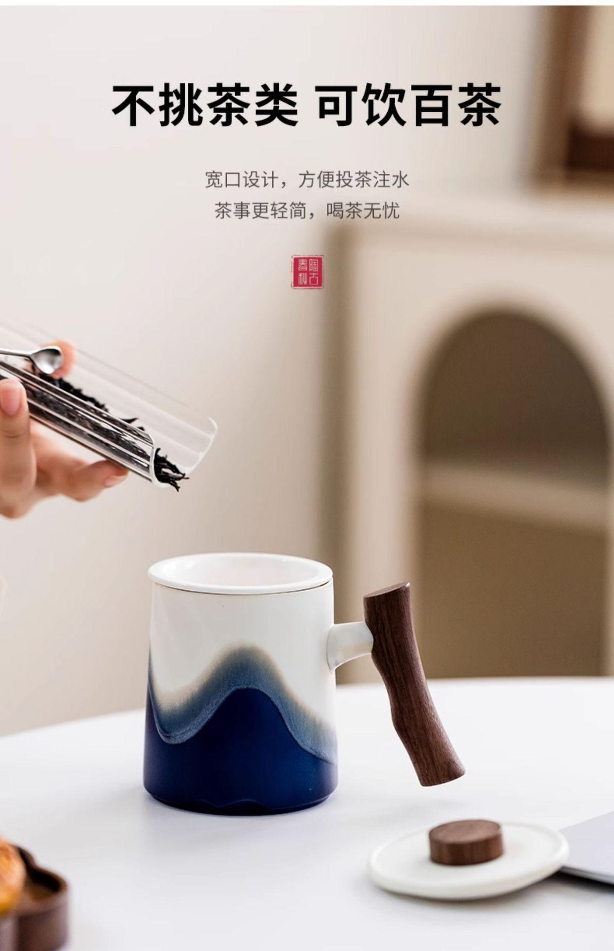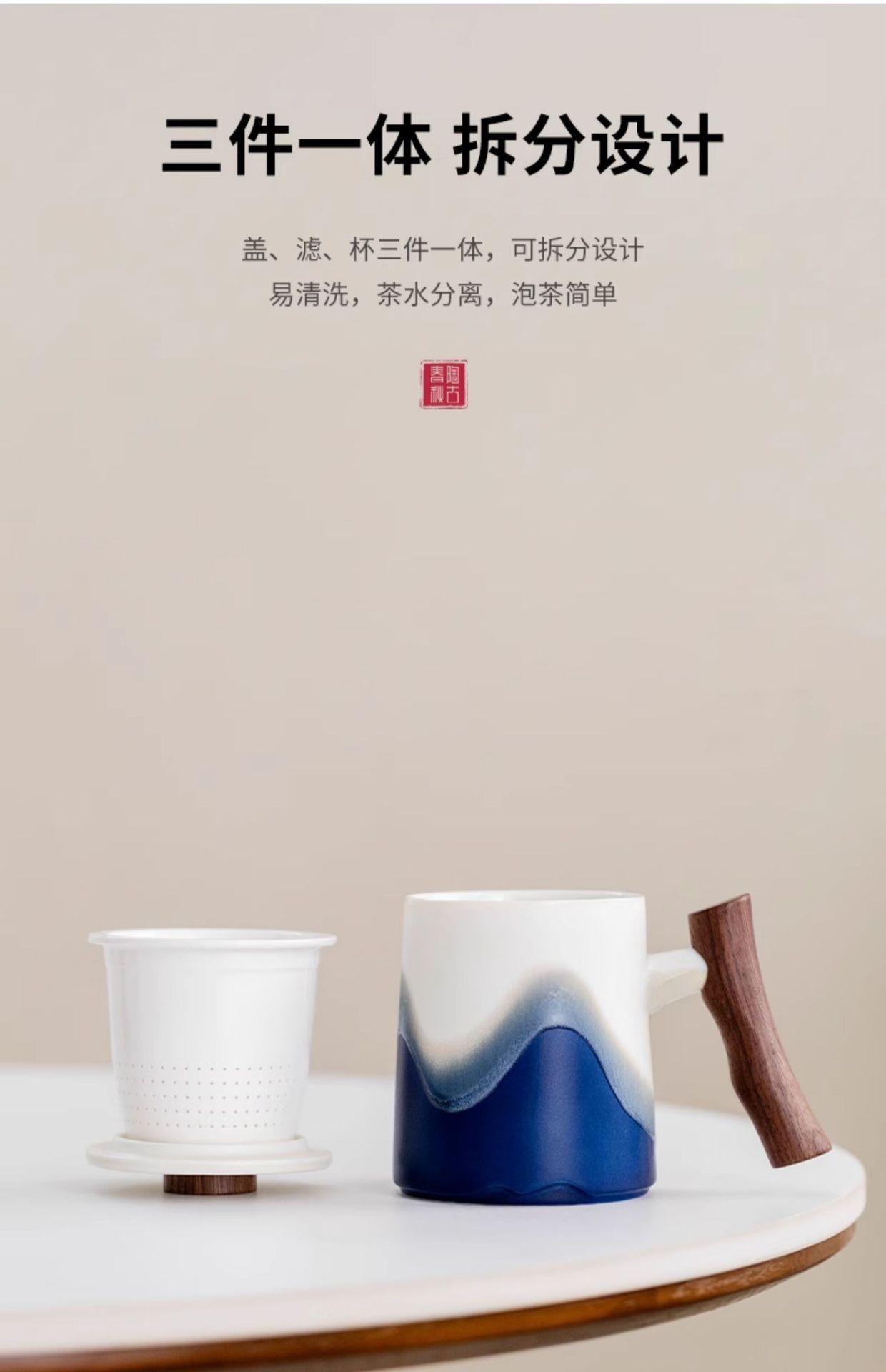 Taza de té de cerámica, taza de separación de té, taza de oficina con gradiente personal y filtro de tapa, taza de impresión