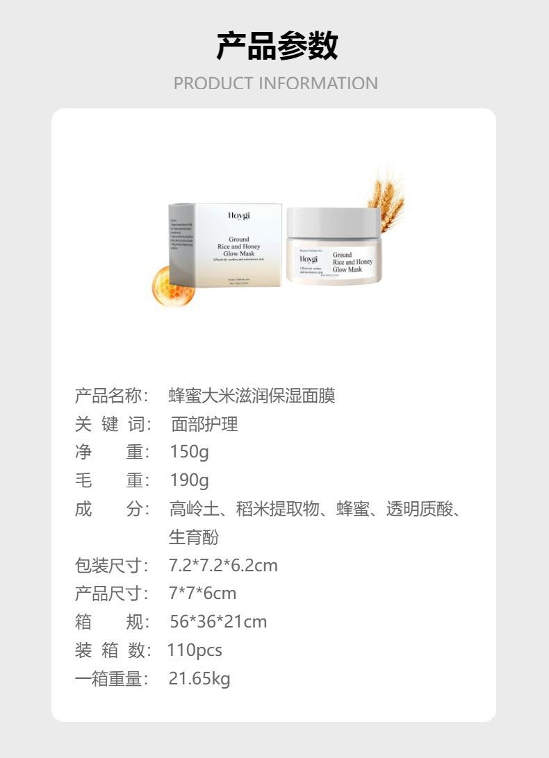 Mascarilla hidratante de arroz y miel Hoygi, mascarilla de barro limpiadora facial, mascarilla hidratante suave para la piel.