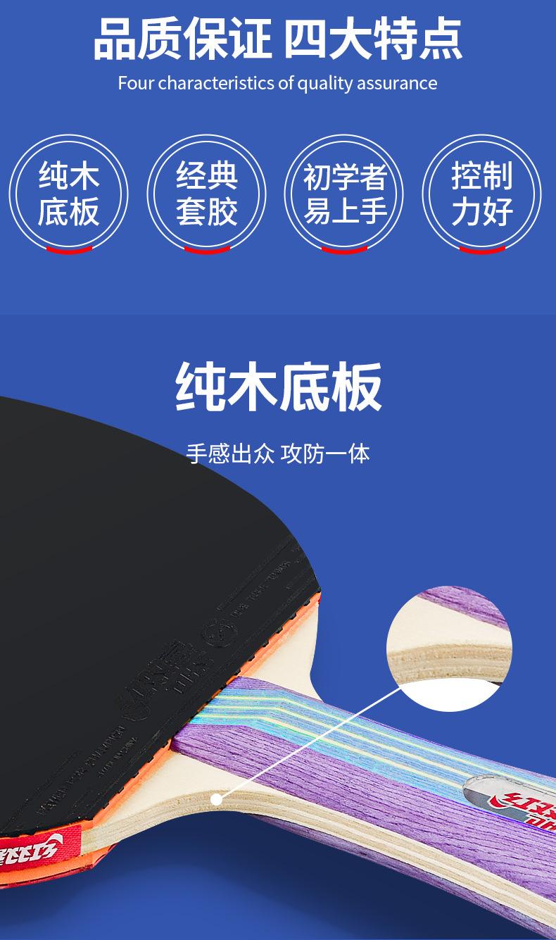 2 horizontal rackets in one star, free 6 red double happiness balls and 1 racket set